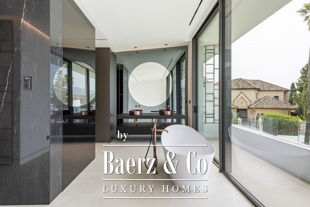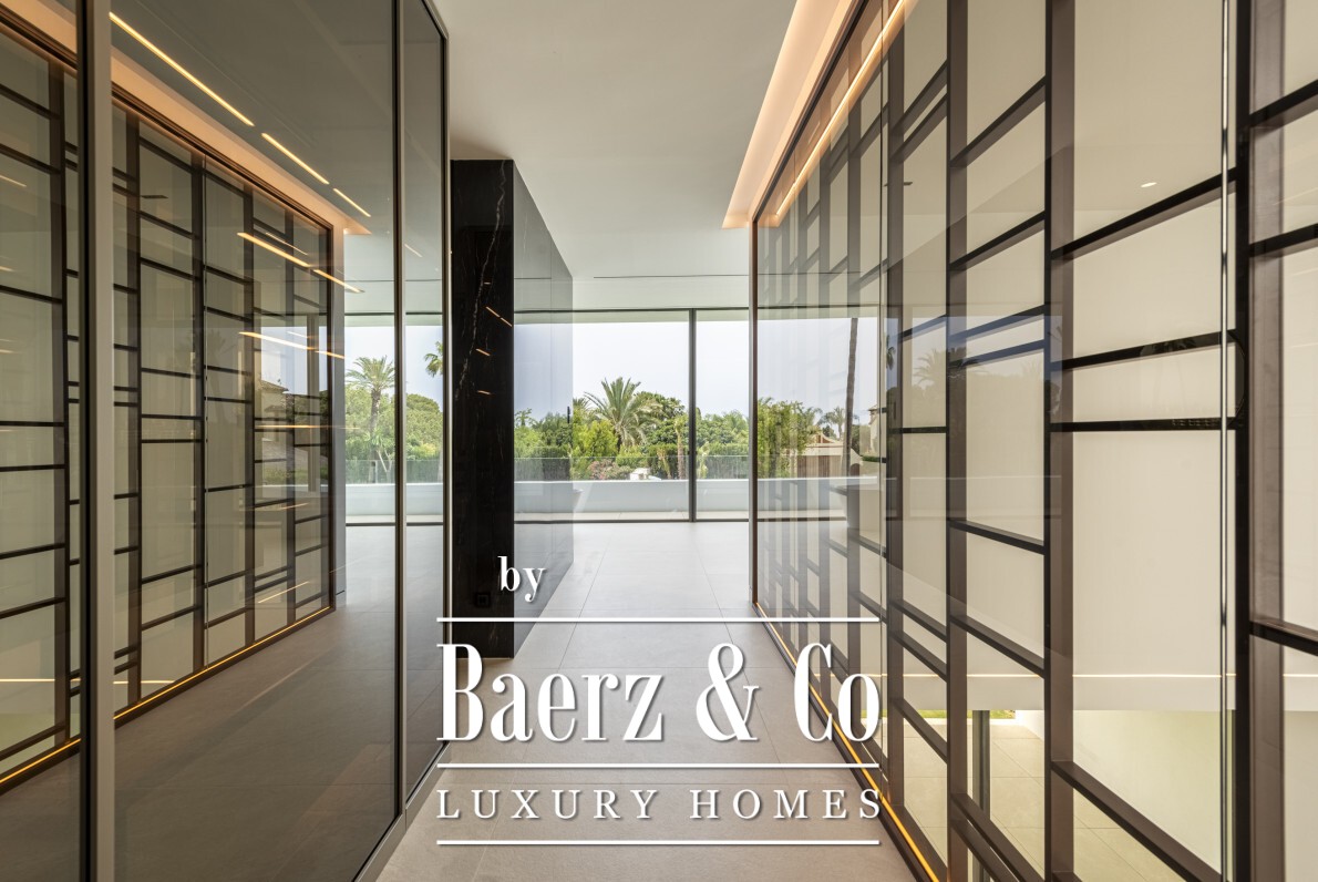This semi-detached villa Marbella is situated in the heart of Nueva Andalucía, enveloped by the region’s most coveted golf courses and within moments of Michelin-starred restaurants, pristine beaches, and the vibrant energy of Puerto Banús. Completed in December 2023, the villa expresses a restrained contemporary vision, with approximately 423 m² of interior space, 246 m² of surrounding terraces, and a private garden measuring 91 m².