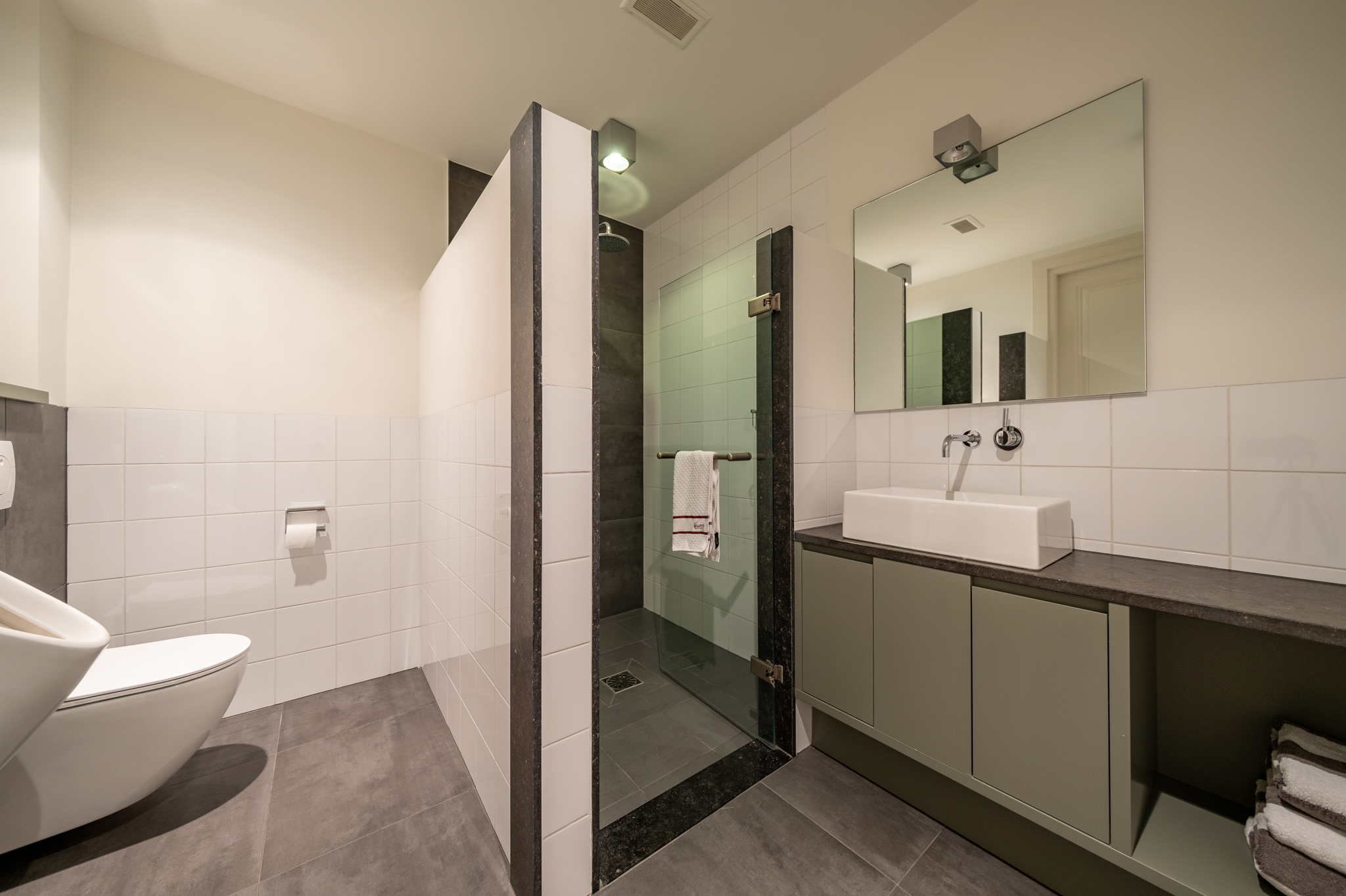 The first floor has been designed with perfect symmetry, radiating calm and balance. The master suite features a walk-in closet, private balcony, and even two en-suite bathrooms. The second and third bedrooms also each enjoy their own bathroom. On the second floor, you’ll find two more spacious bedrooms with private bathrooms, a dedicated fitness room, and a storage room. The skylight above the staircase bathes the upper floors in natural light.