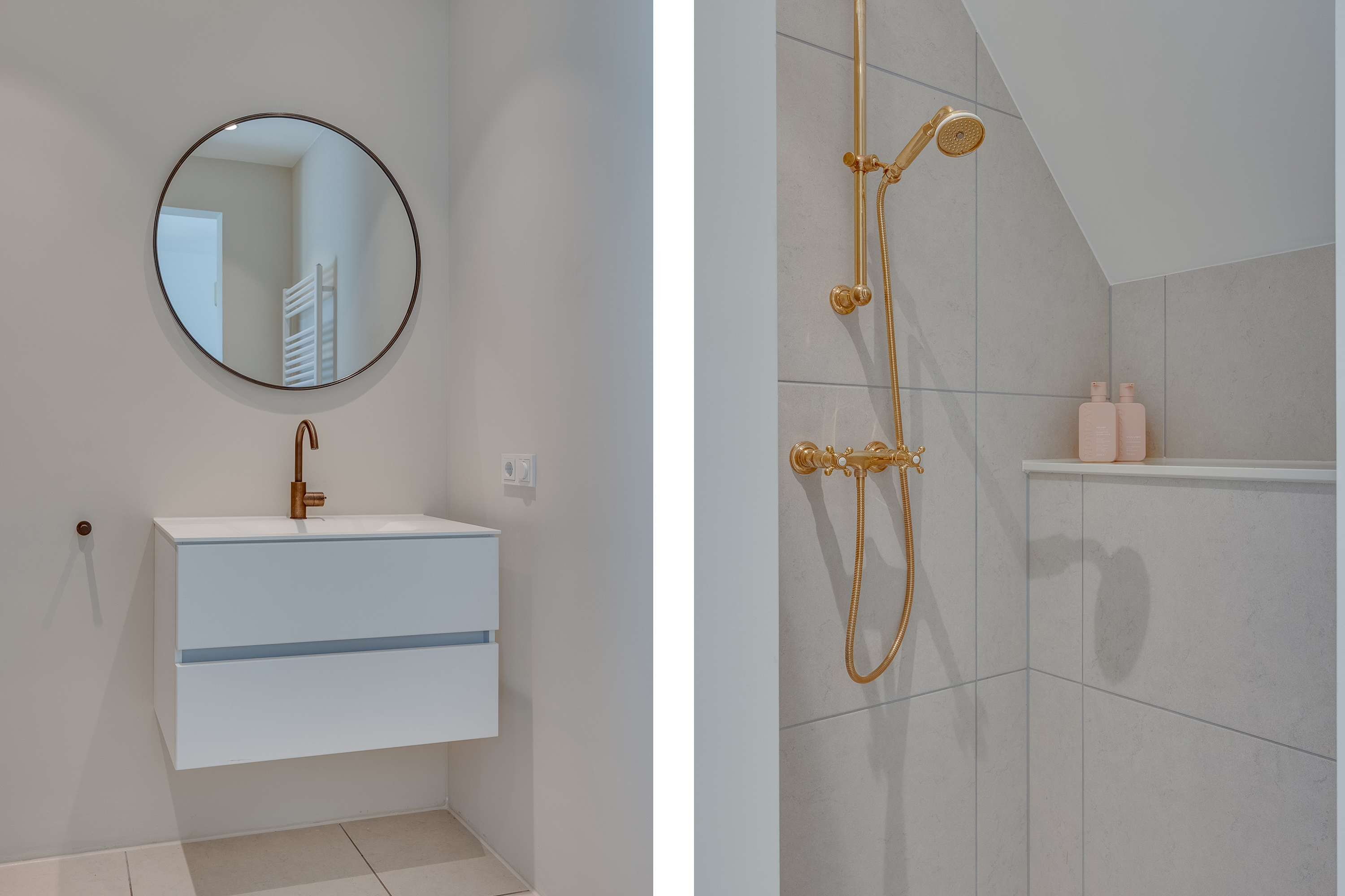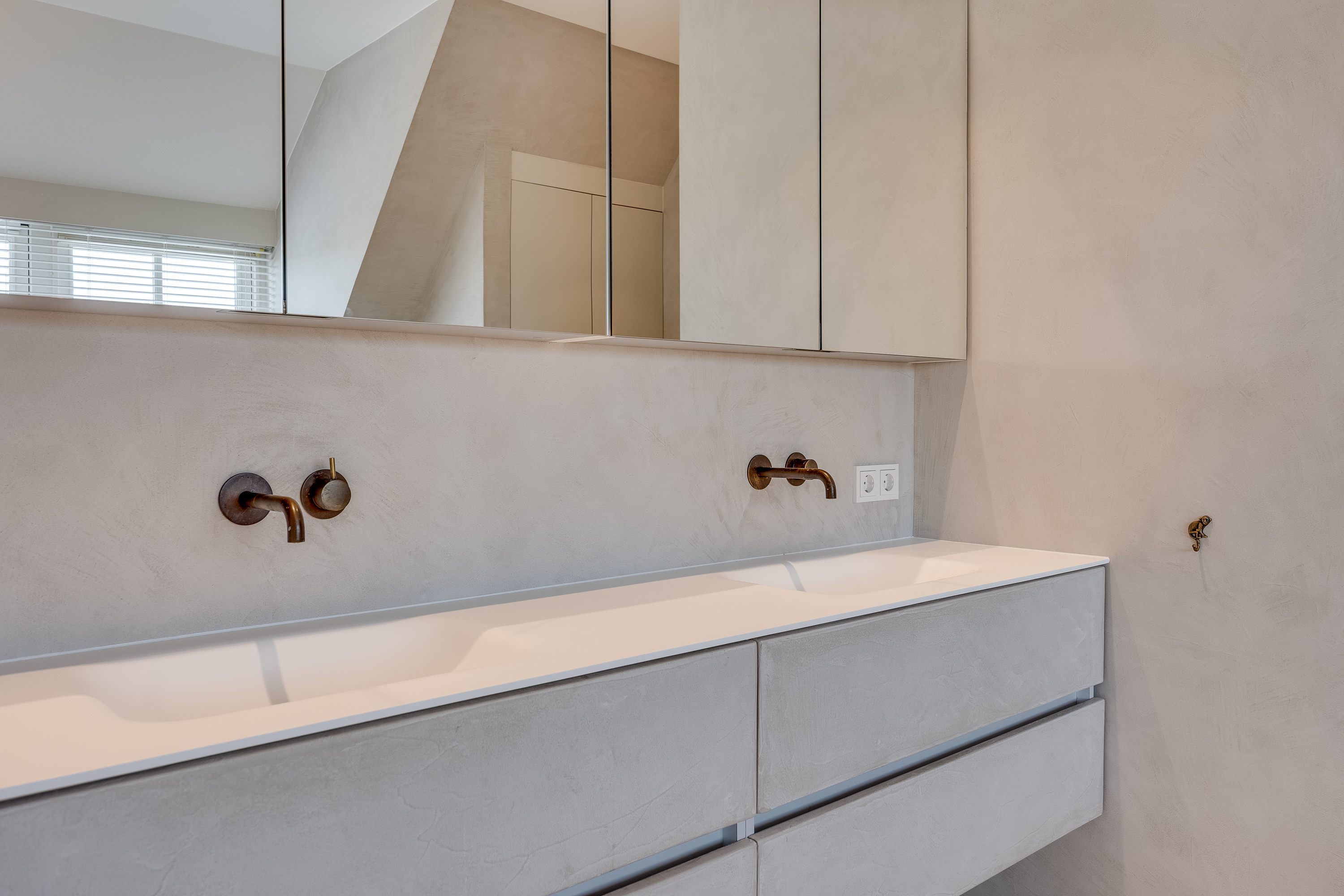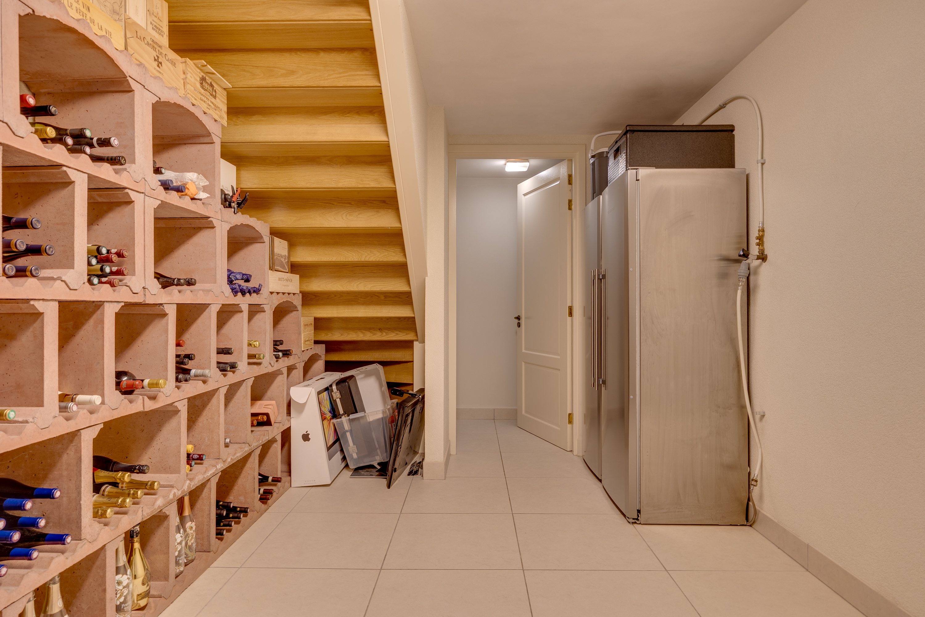 The delightful, spacious study where work and relaxation go hand in hand. Here you can concentrate on your work, and then just as easily do a few squats in the adjacent gym. The study is equipped with custom-made cupboards and, above all, lots of light. Thanks to the large double French doors, you can even park your car inside as a work of art! If you wish to live here for the rest of your life, the study can easily be converted into an extra bedroom with en-suite bathroom with a few adjustments.