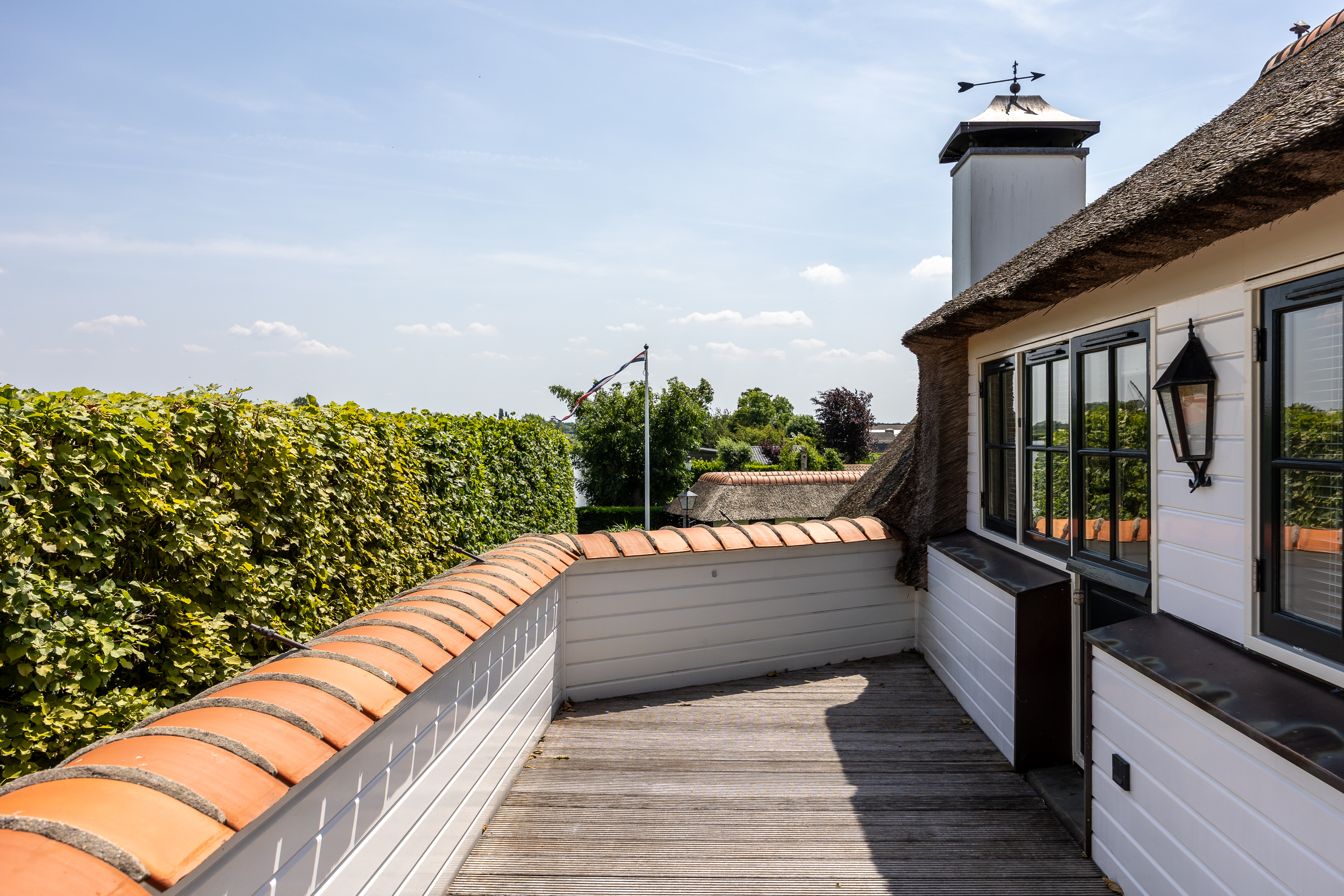 The ground floor features a spacious living room with an adjoining conservatory, two open fireplaces, a luxurious and comfortable kitchen/dining room, a very spacious study (which can easily be converted into a bedroom with an en-suite bathroom, see artist's impression/floor plan), a gym (fitness room), and a large basement. On the first floor, there are now two bedrooms, each with its own bathroom. The thatched roof, the rod-divided windows, and doors exude character, while modern technology invisibly ensures ultimate comfort. Classic charm meets high-tech convenience, exactly as it should be.