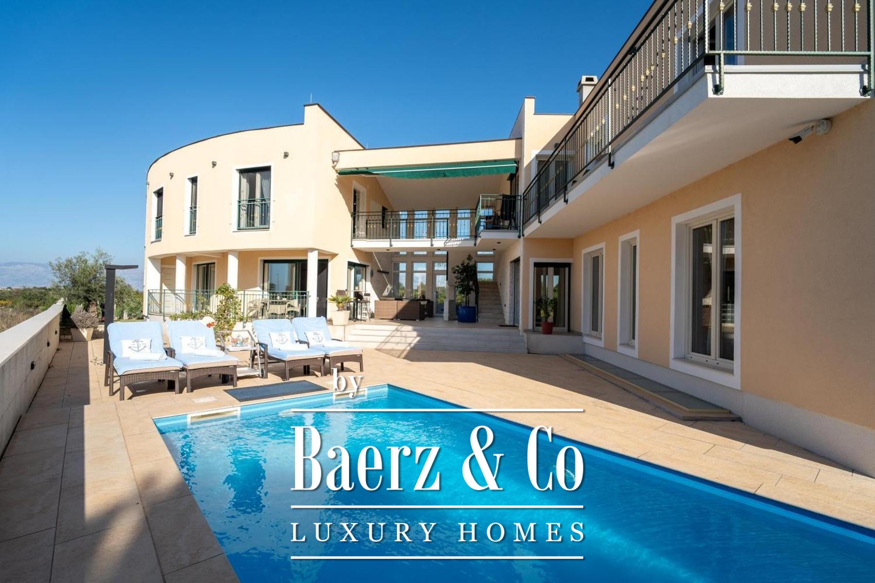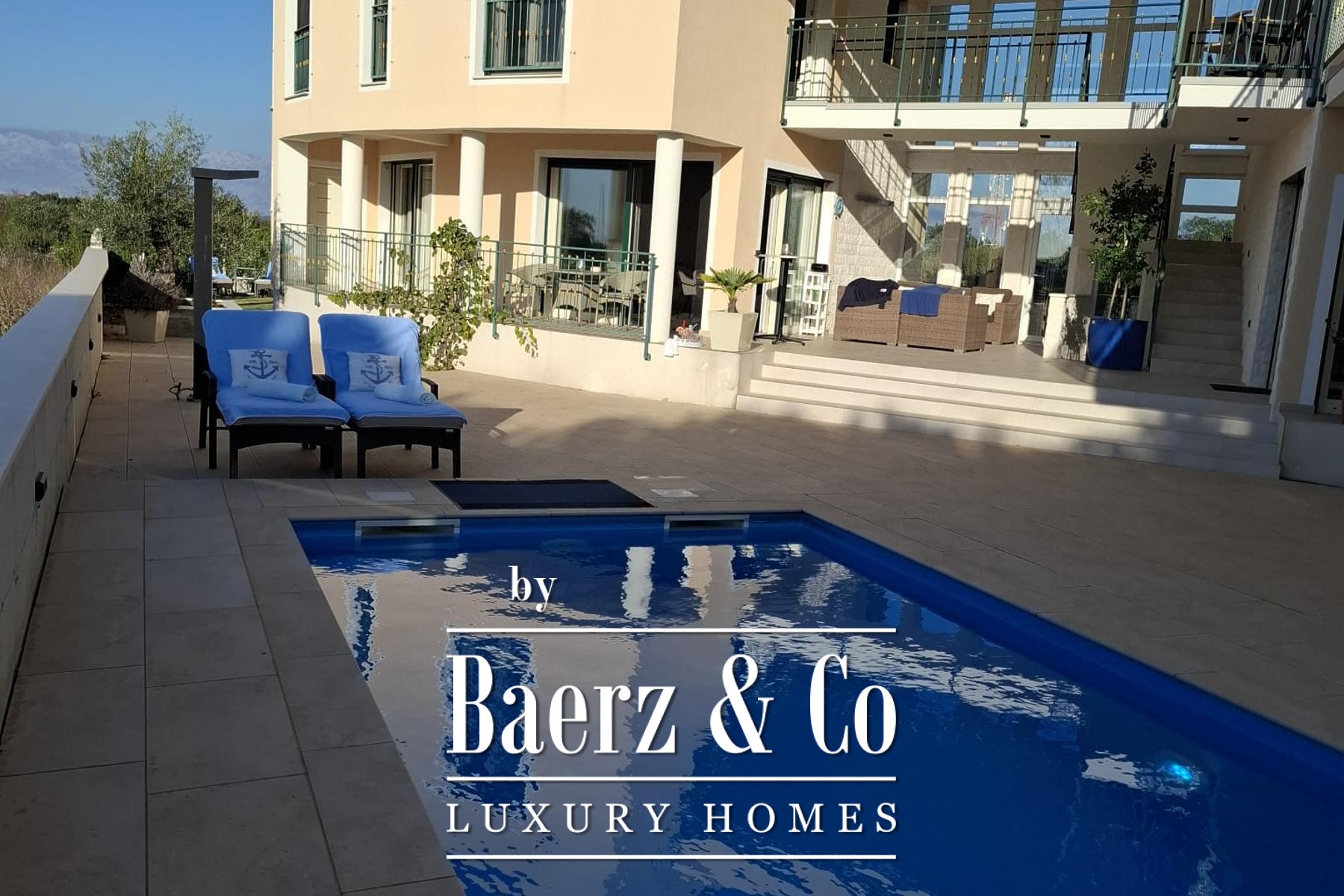 Outdoors, a pool and sunbathing lounge merge into meticulously landscaped gardens, offering serene settings for privacy or quiet gatherings. A detached garage and ample parking provide further ease, making this luxury villa for sale in Zadar Nin a synthesis of aesthetics and utility, tailored for those drawn to the lasting pleasures of design and discretion.
