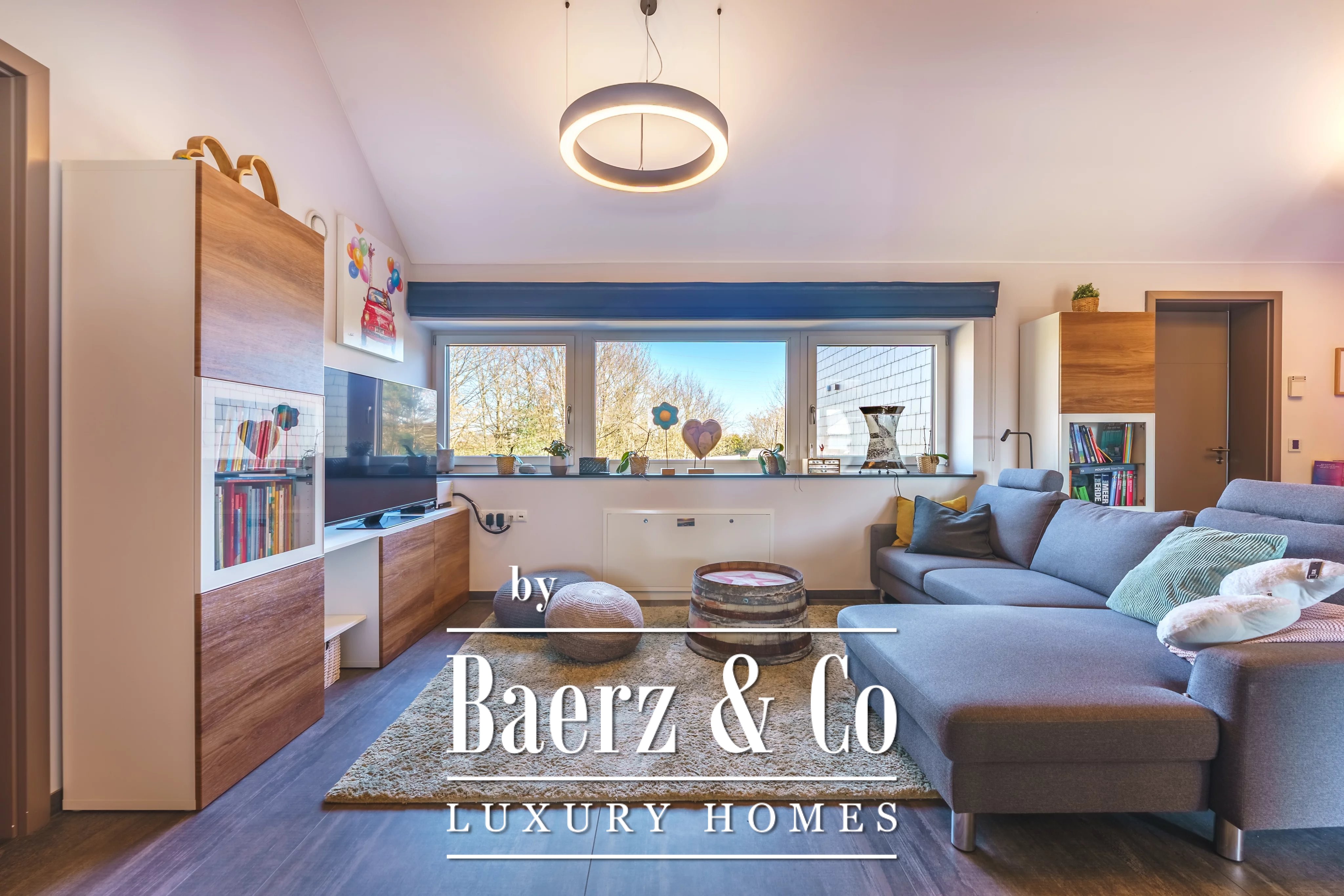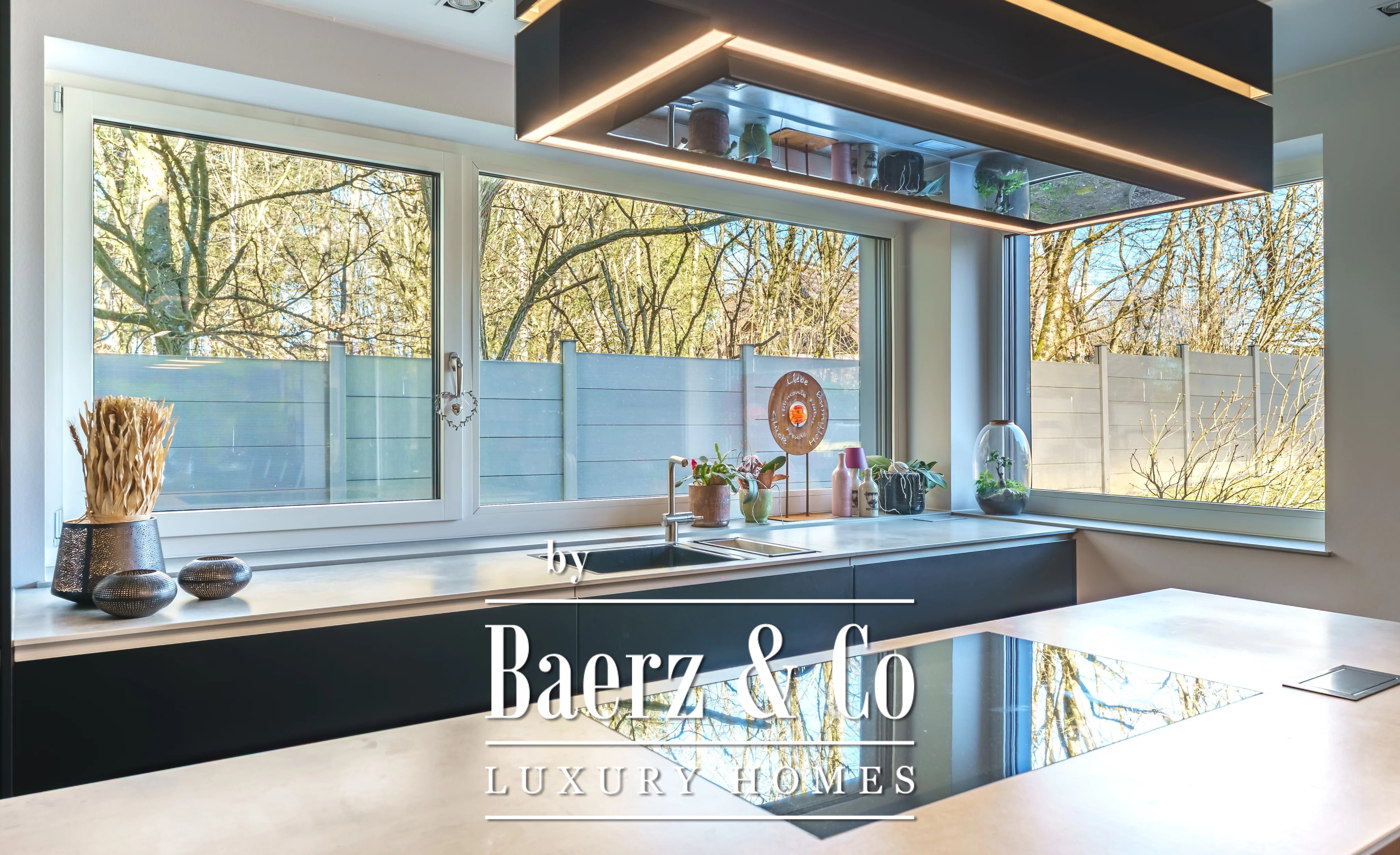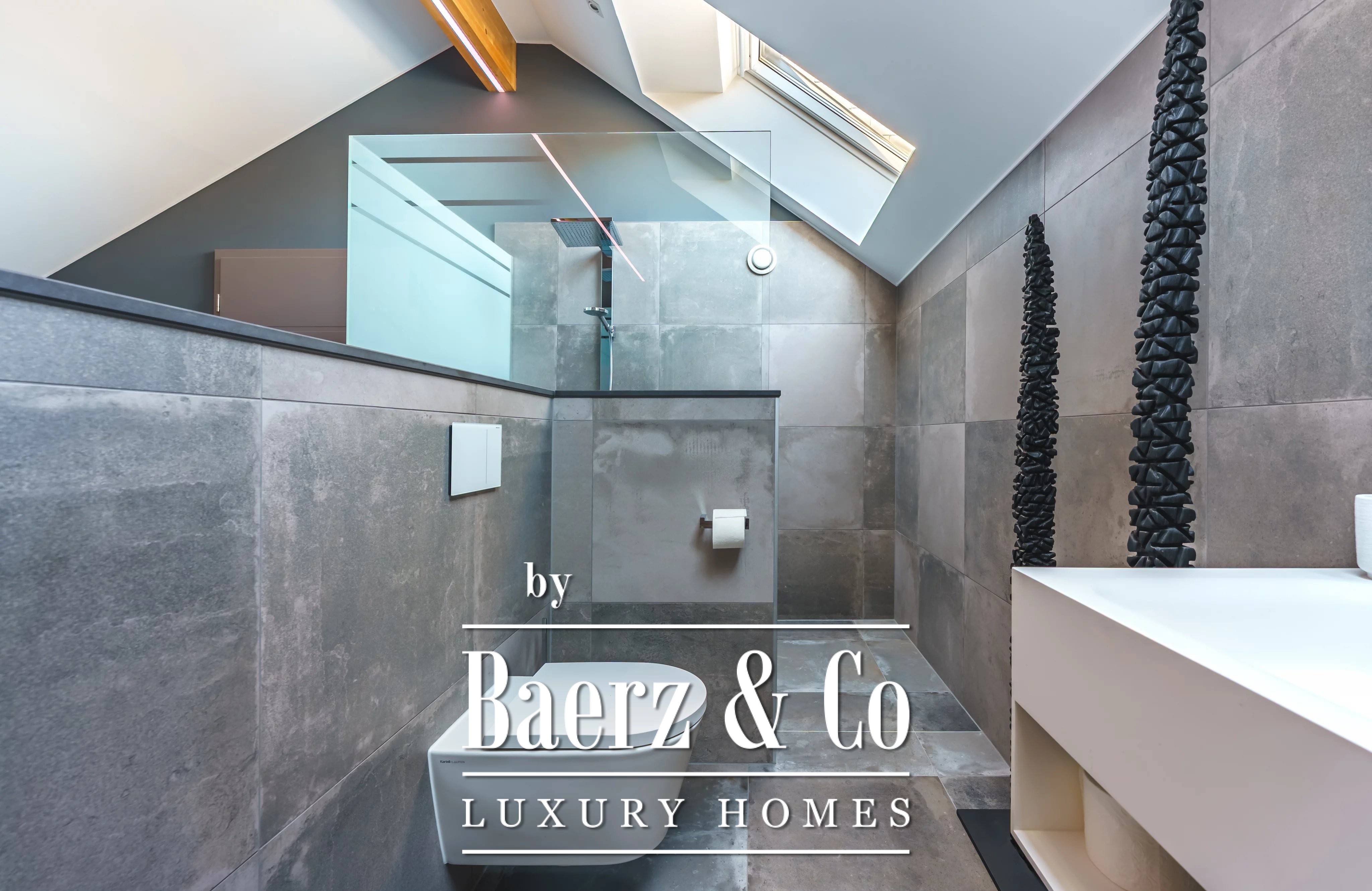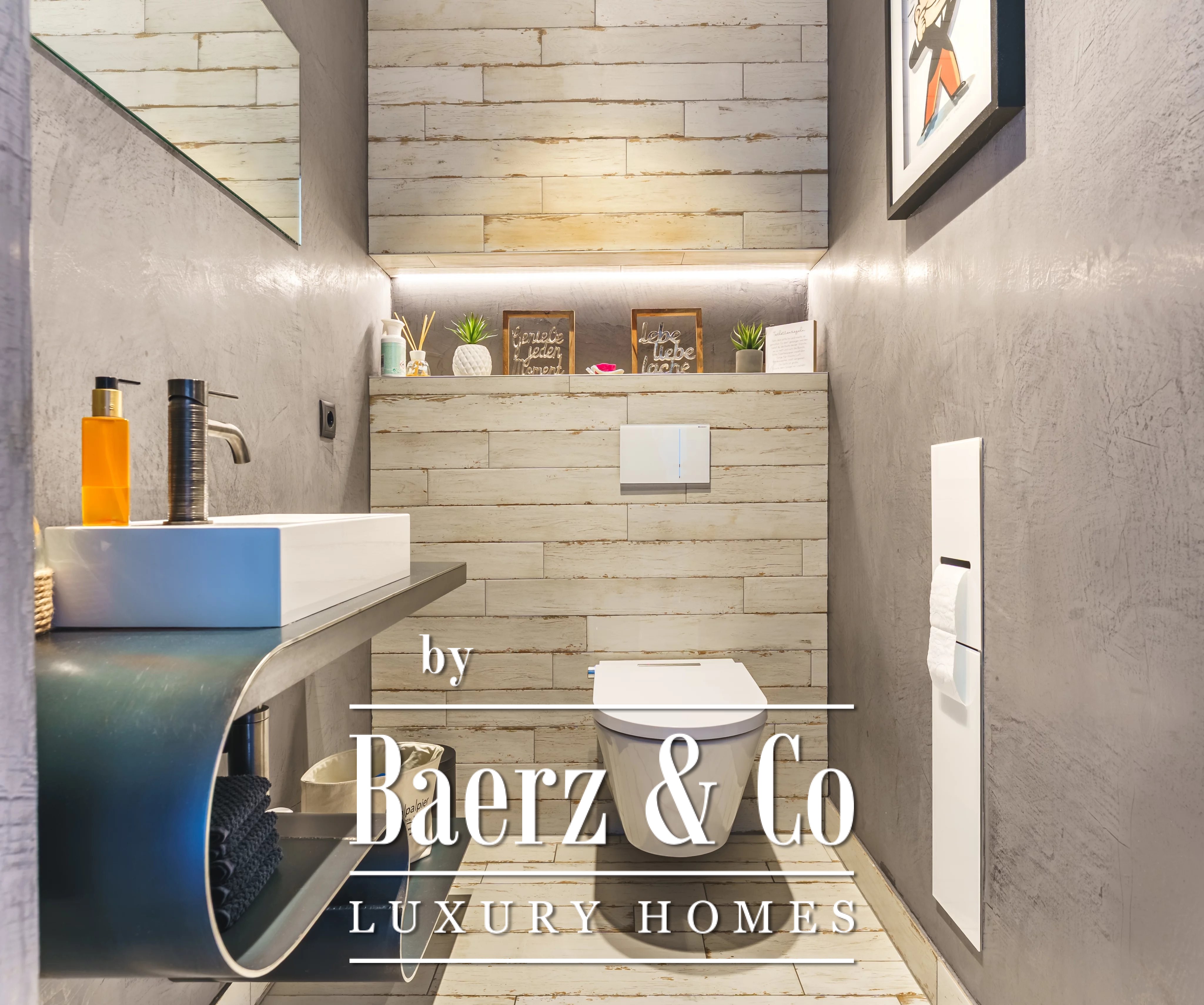 Upstairs, an additional living room creates a private retreat for family gatherings. There are five bedrooms and four bathrooms, including a master suite with a dressing room, private shower room, and a guest bedroom with en-suite. The laundry room is discreet and efficient, supporting daily comfort.