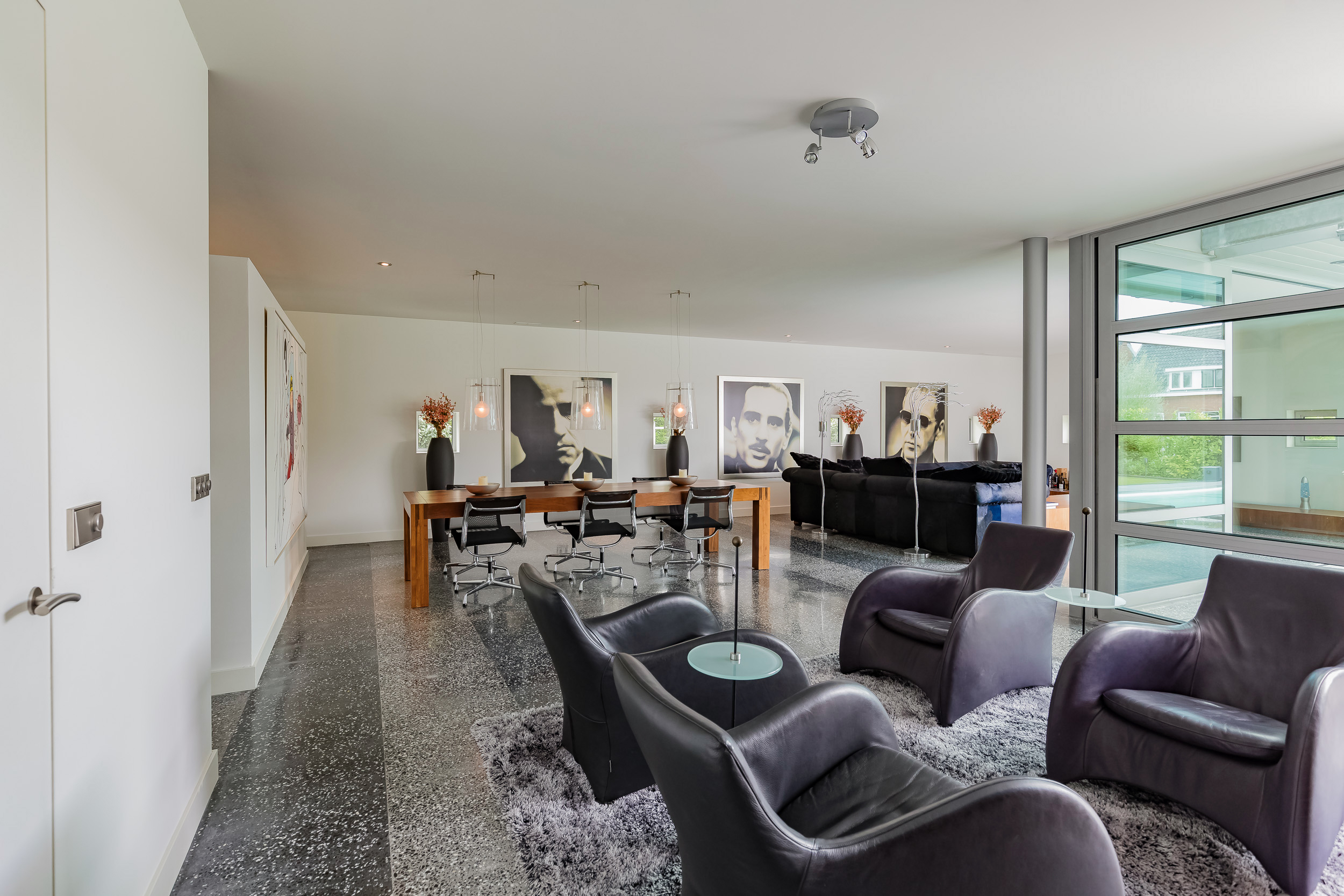 The large living room has a span of up to 18 meters. Enough space for a generous sitting area and a large dining table for cozy dinners.
