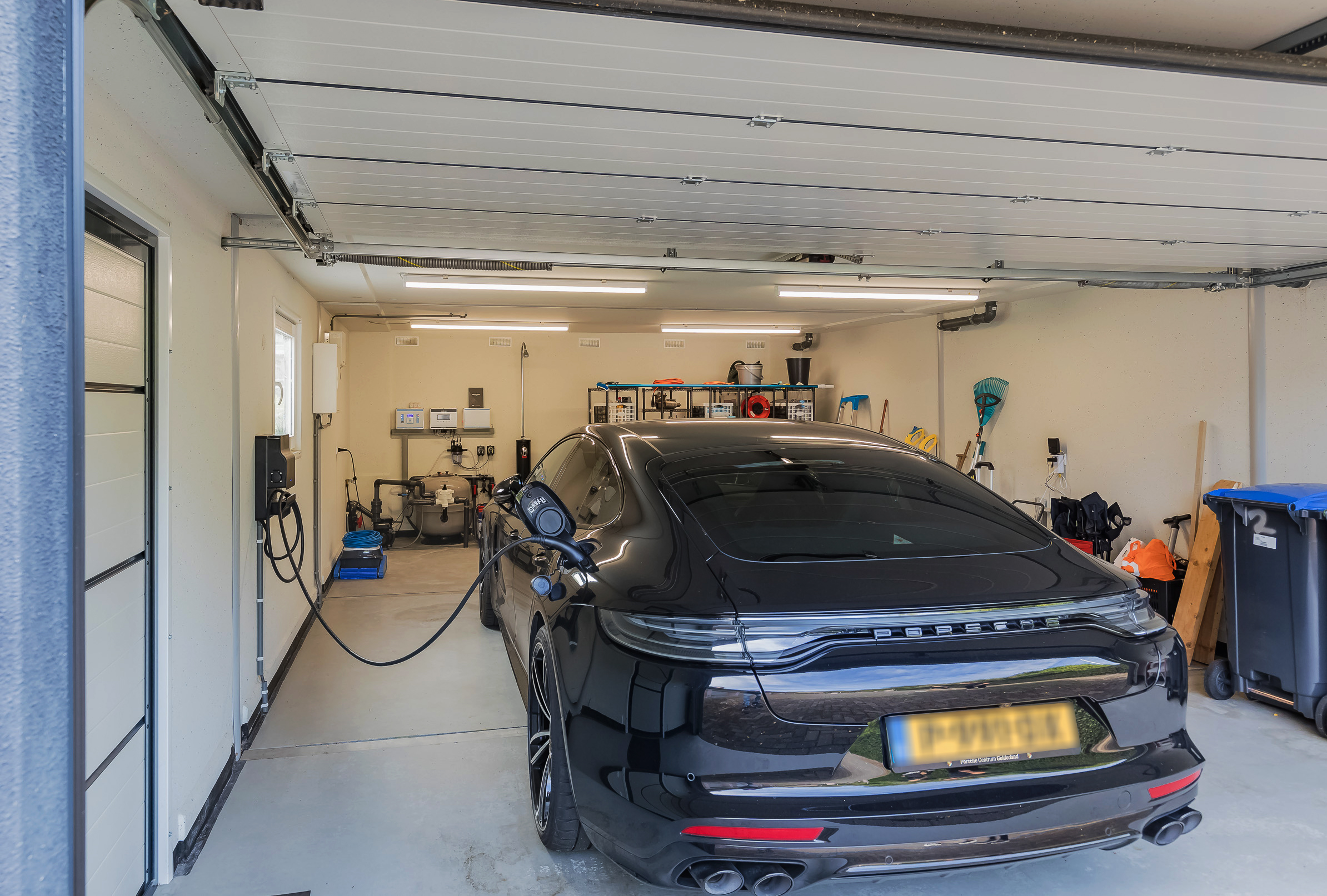 The indoor garage of 76 m2 is fully insulated and also here the terrazzo floor has floor heating. The glass inner wall is easily removed so that the entire first floor becomes one space. The living area thus comes to 356m2 (€ 7.008,43 m2)