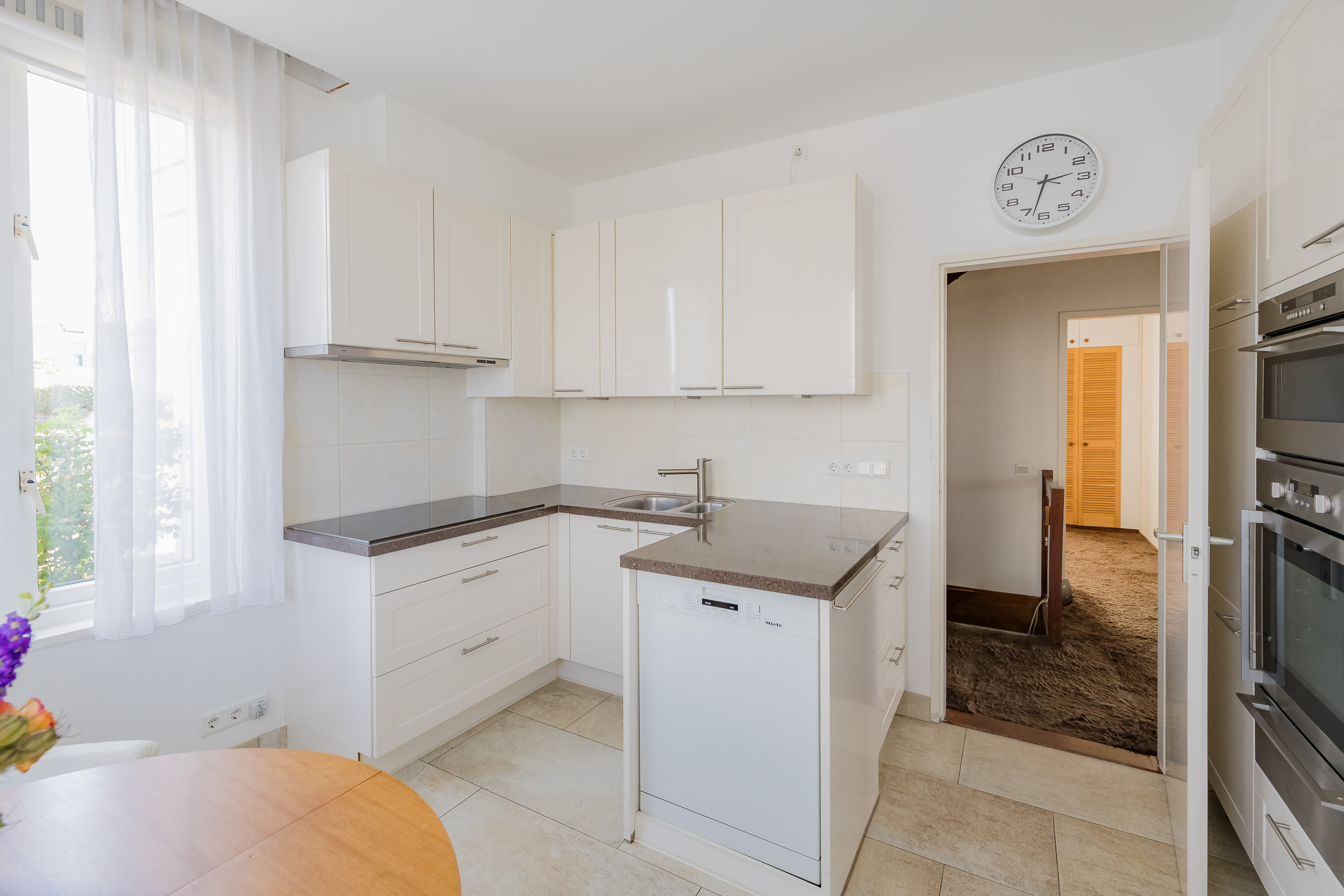 The villa also has a double garage with one electric door, a storage loft, and a door to the garden. There is parking space for three cars in front of the garage.