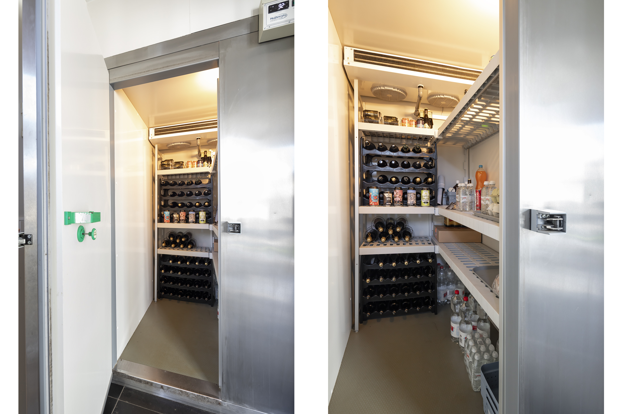Yes, this house doesn't just have a regular refrigerator, but a real, professional cold room. Like the kind you find at the greengrocer's. A space that can cool down to 30 degrees Celsius. Here you can easily cool your meat, chicken, vegetables, dairy, beer, and wine for an entire orphanage.
