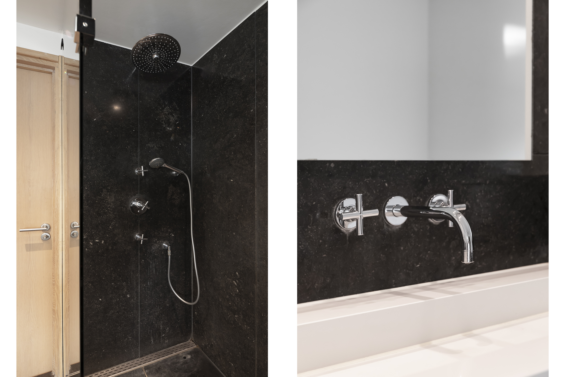 The modern Bulthaup kitchen is equipped with a range of high-quality built-in appliances. There is a Quooker, a dishwasher, a 5-burner induction hob, an extractor hood, an oven, a combination microwave/convection oven and a built-in refrigerator with freezer drawers.