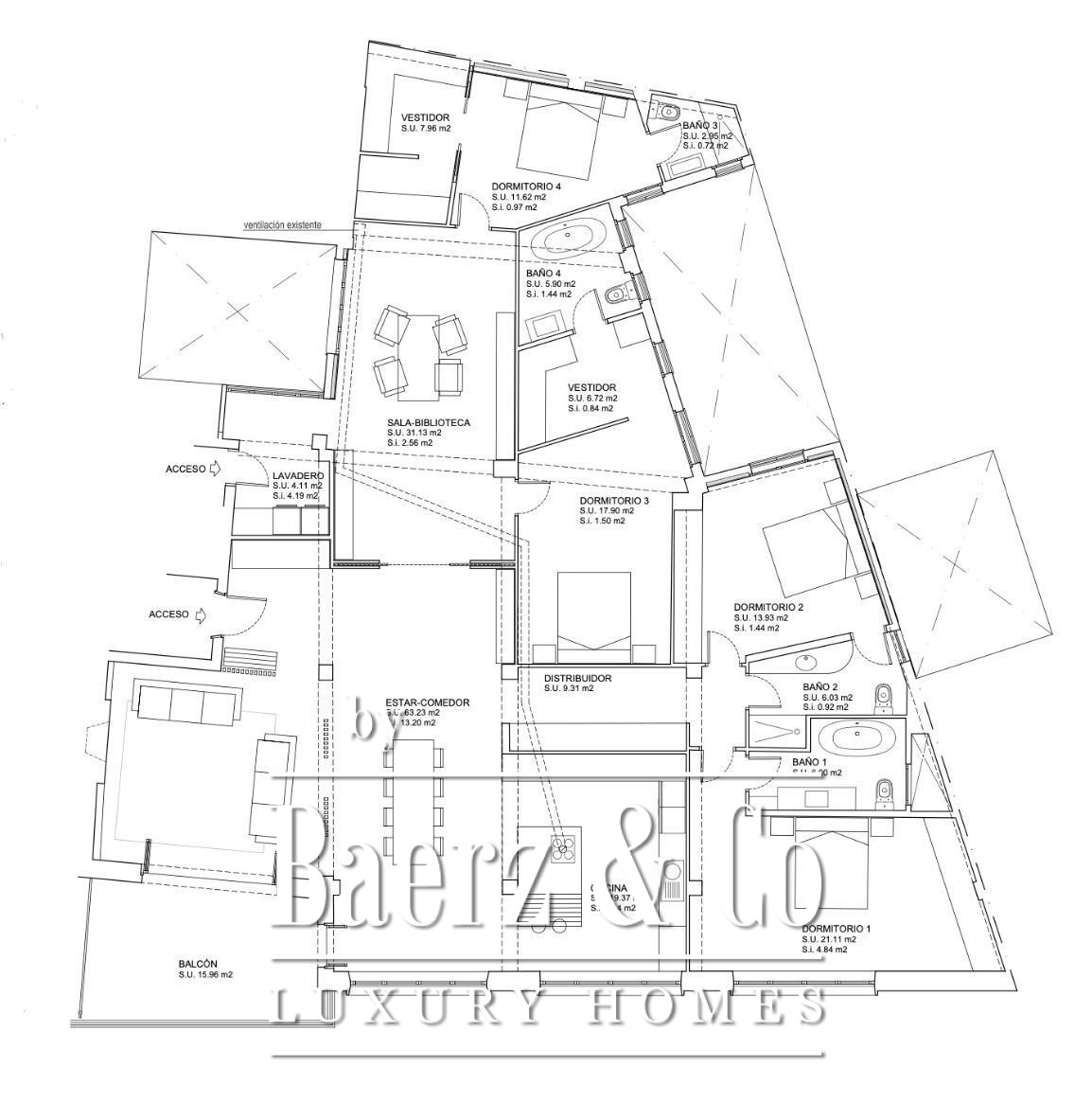 Welcome to this exquisite 3rd floor apartment, situated in the heart of Palma's Old Town, along one of its most exclusive streets. Originally constructed in 1960, the apartment has been completely refurbished to superior standards. Spanning an impressive approximate usable area of 260 sqm, it features an open-plan living and dining area seamlessly integrated with a state-of-the-art modern kitchen, complete with a central island counter. A secondary living room functions as a serene library, offering additional space for relaxation or productivity. This exclusive apartment includes 4 bedrooms, each with its own en-suite bathroom. The elegant parquet flooring adds a touch of warmth to the home, complementing