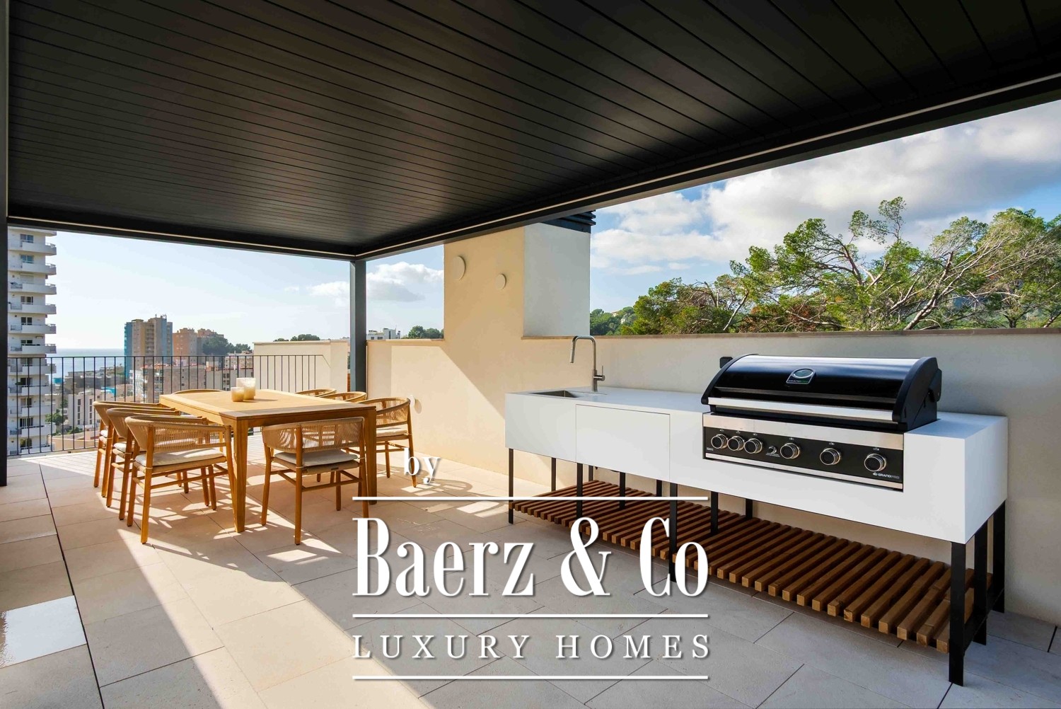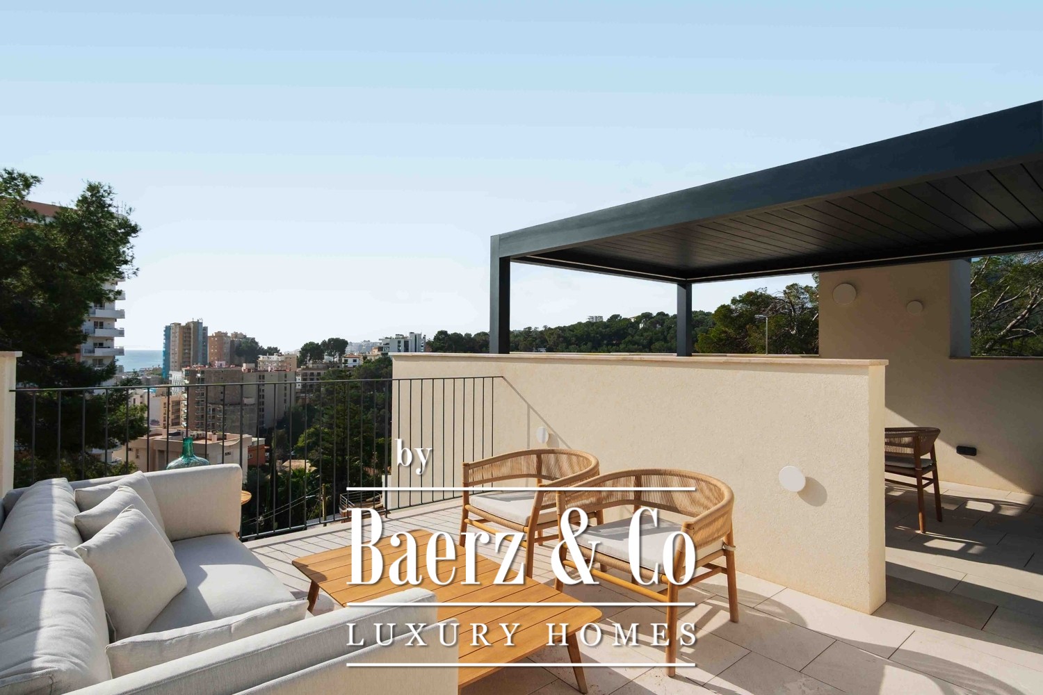At the core, the private rooftop terrace features a pool overlooking Mallorca’s coastline and mountains—a space designed for quiet contemplation or gathering with guests. Additional features include a dedicated laundry and storage area, a private garage with electric vehicle charging, and beautifully integrated indoor-outdoor spaces. The penthouse sits minutes from Palma and within walking distance of the sea, embodying an elevated coastal lifestyle. This luxury penthouse for sale in Palma De Mallorca defines discretion and Mediterranean sophistication.