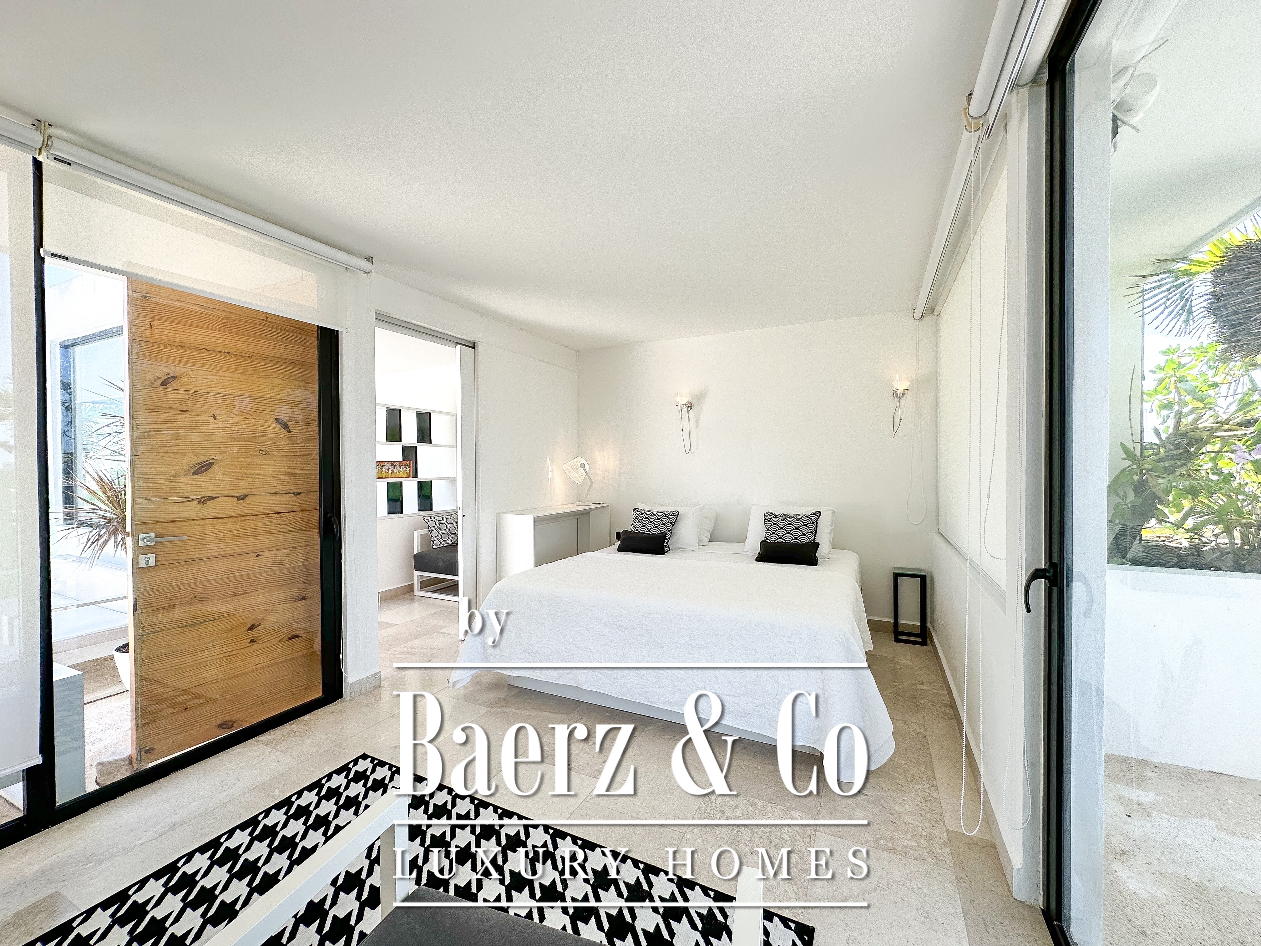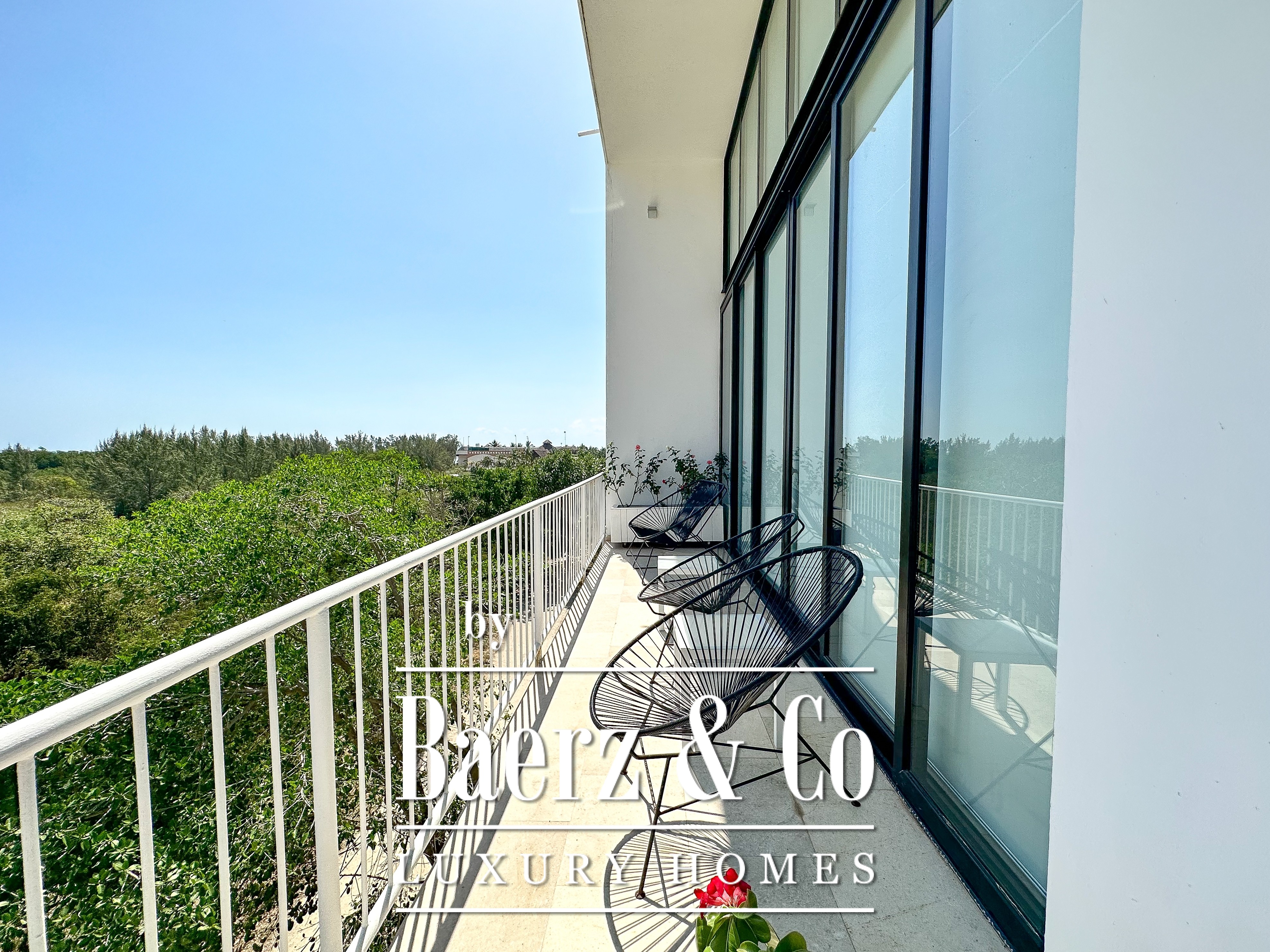 The central living area is open yet composed, with spaciousness that encourages relaxation. Two terraces and a private balcony invite seamless transitions from interior to exterior, allowing the rhythm of ocean breezes and subtle evening light to permeate daily life. Atop the residence, a secluded rooftop terrace with private pool commands panoramic sea and mangrove vistas, perfectly positioned for tranquil evenings or gatherings.