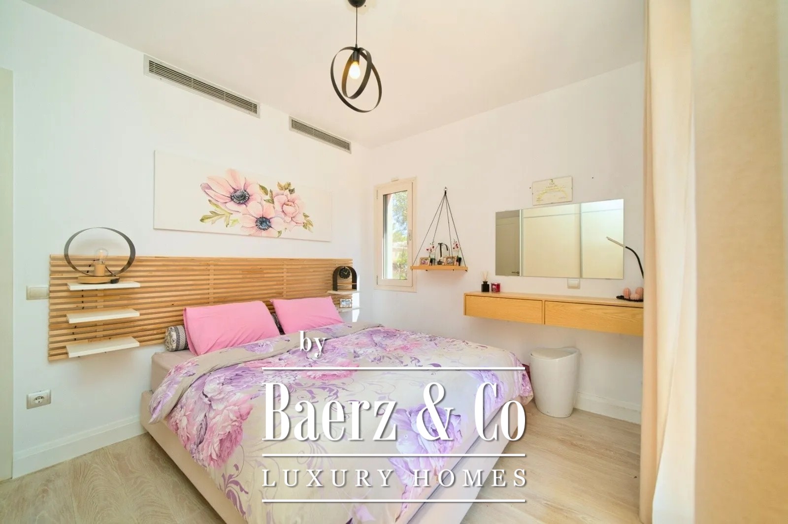 The ground floor frames daily life and gatherings with its open spatial flow. A spacious living area melds into an expansive kitchen equipped with high-spec appliances, all oriented toward the terrace and pool. Two guest bedrooms and a shared bathroom are also found here, designed for flexible living and privacy.