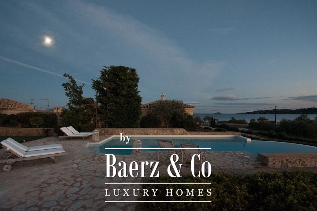 Villa Portocheli presents an accomplished balance of elegance and scale on a 2,000 m² beachfront plot, where the Aegean widens before you and Hydra punctuates the horizon. This villa in Portocheli is designed across two luminous levels, offering 300 m² of living space. The main floor unfolds with a living and dining area oriented to maximize sea views, anchored by a fireplace. A fully equipped kitchen invites culinary ease, while a master suite with a private bathroom and expansive 50 m² terrace delivers tranquility above the shoreline.