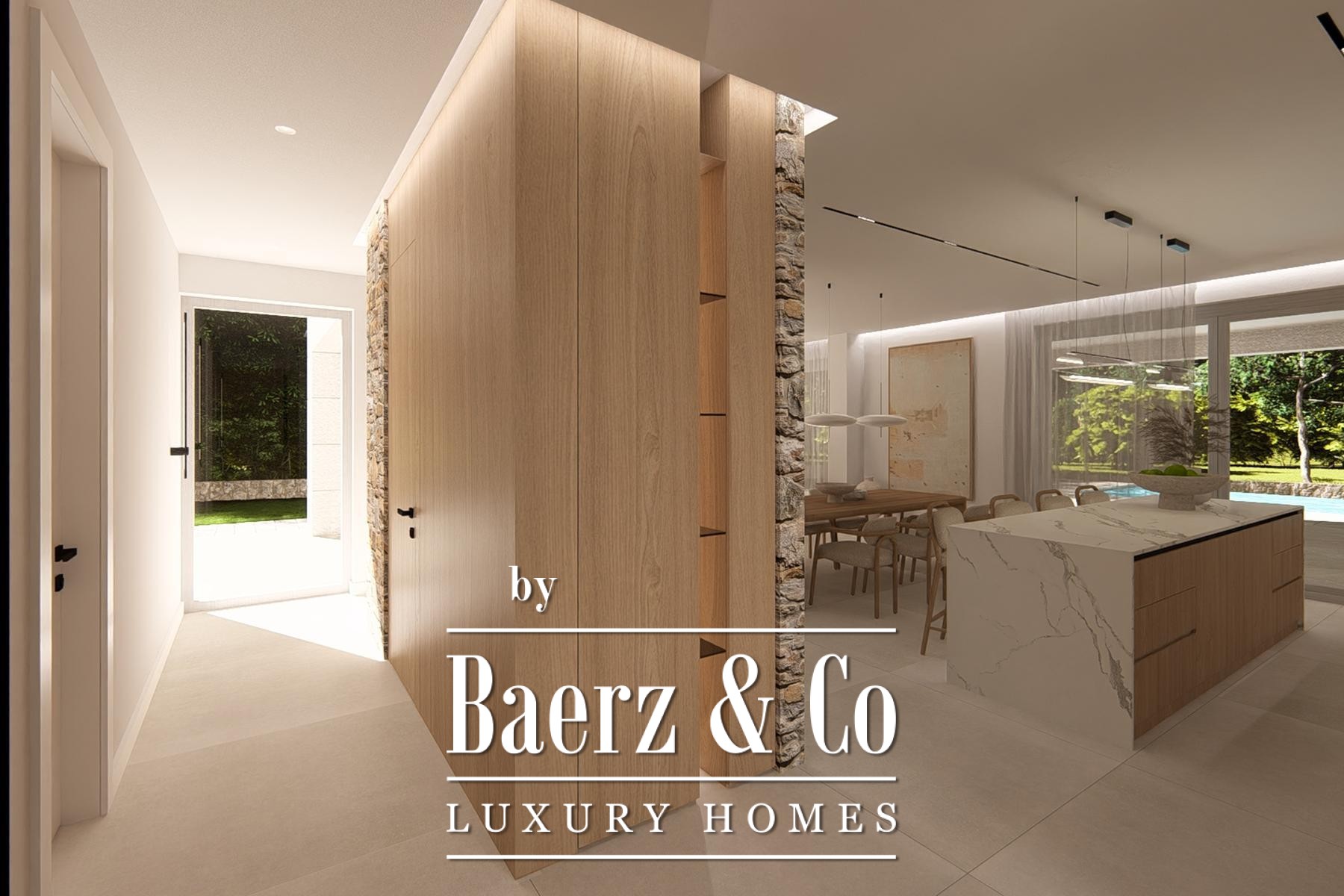 A heated pool and sauna outbuilding with its own terrace elevate the courtyard experience, complemented by a landscaped garden and sunbathing area. Photovoltaic panels, underfloor heating in key rooms, wood-aluminum window joinery, and a stone façade ensure comfort and sustainability. The entire villa is managed via a smarthome system. With three parking spaces, two of which are covered, and a peaceful setting 1,650 meters from the sea, the property blends privacy with tranquility. This modern villa Primošten is an invitation to a sophisticated Adriatic lifestyle.