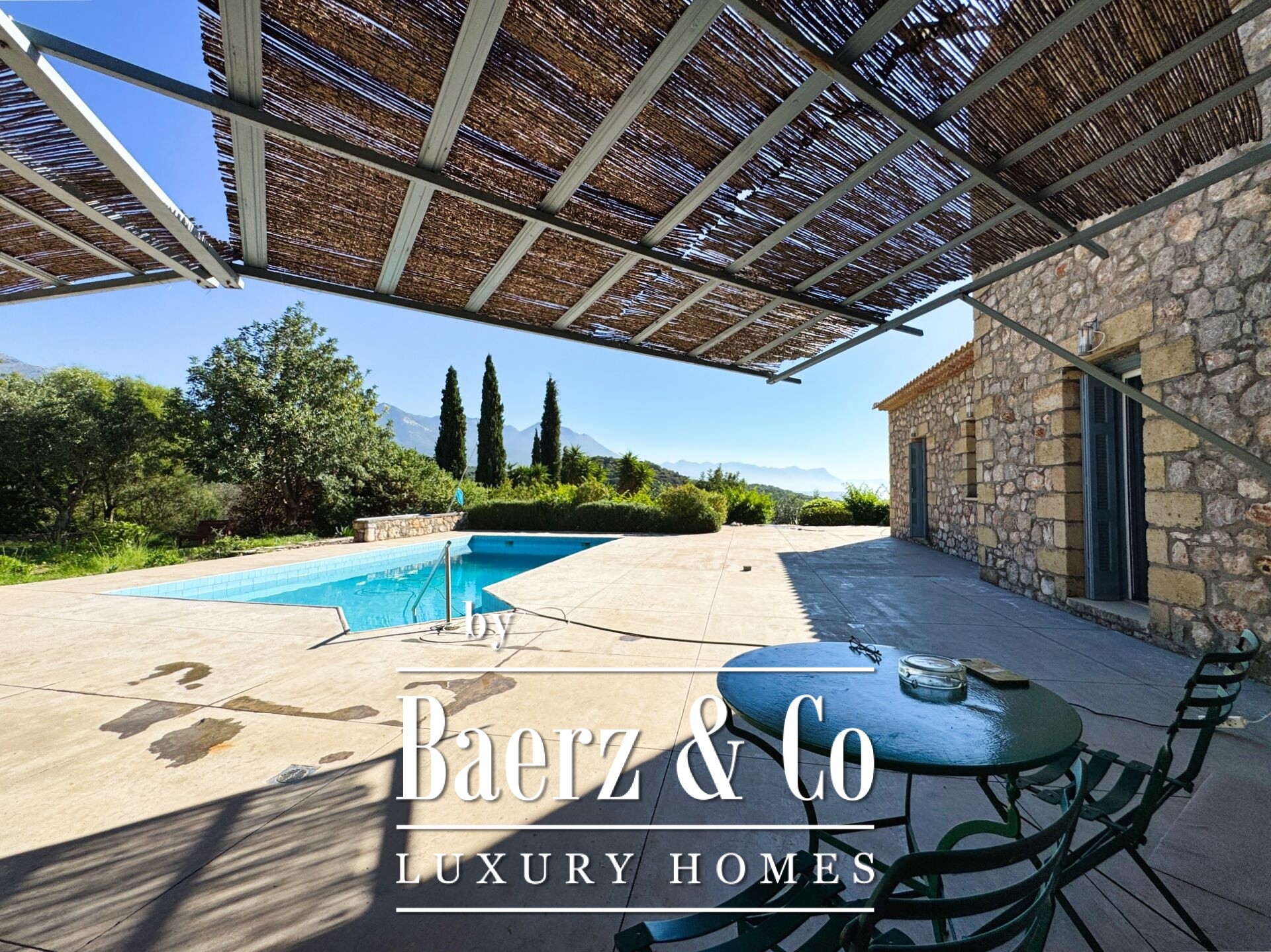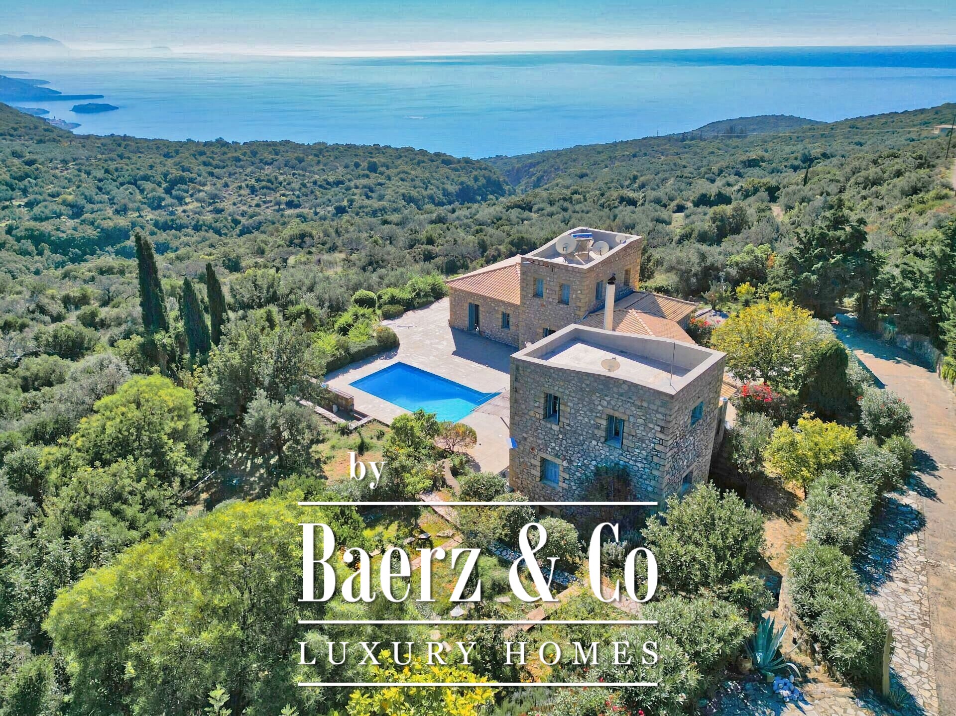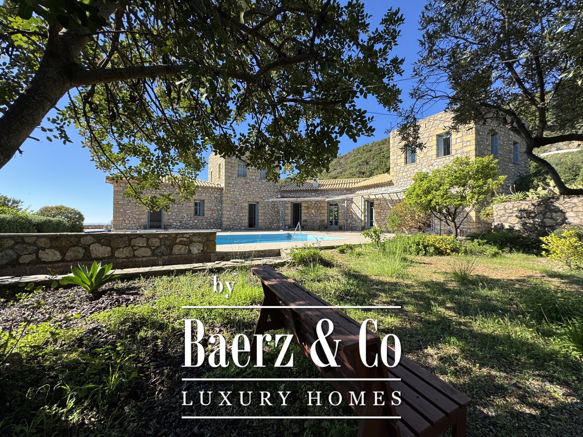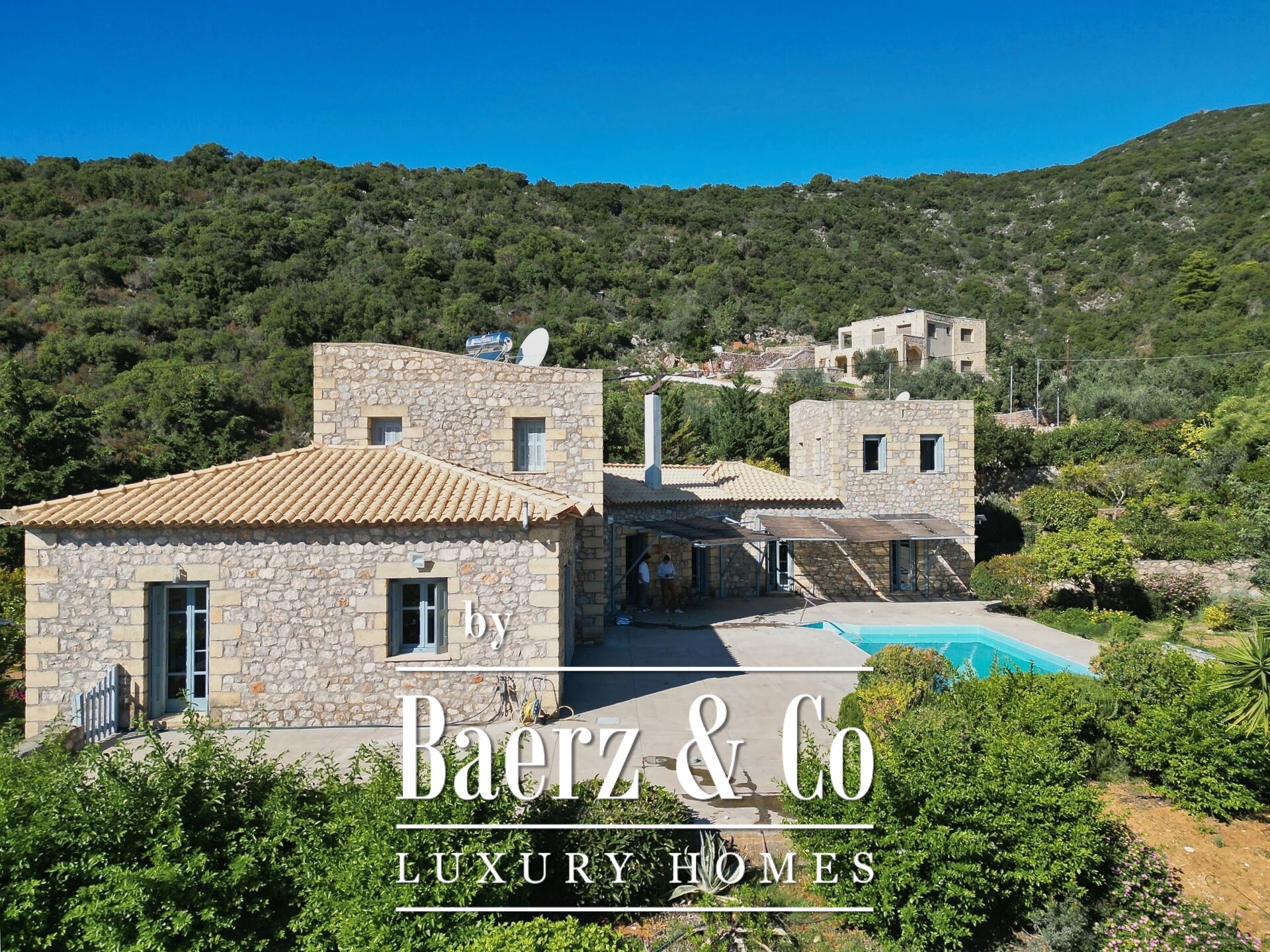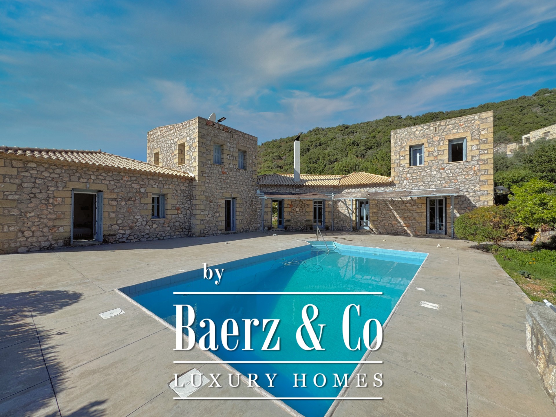 On the same level, a flexible open-plan area with its own bathroom can serve as a guest house, wellness suite, or creative atelier. Outdoors, a private swimming pool frames the mountain-to-sea panorama, inviting quiet reflection. Heating systems—central, oil, solar water, and boiler—support year-round living. This luxury villa for sale in Prosilio honors the Mani tradition, delivering a home of enduring quality, privacy, and serene connection to both land and sea.