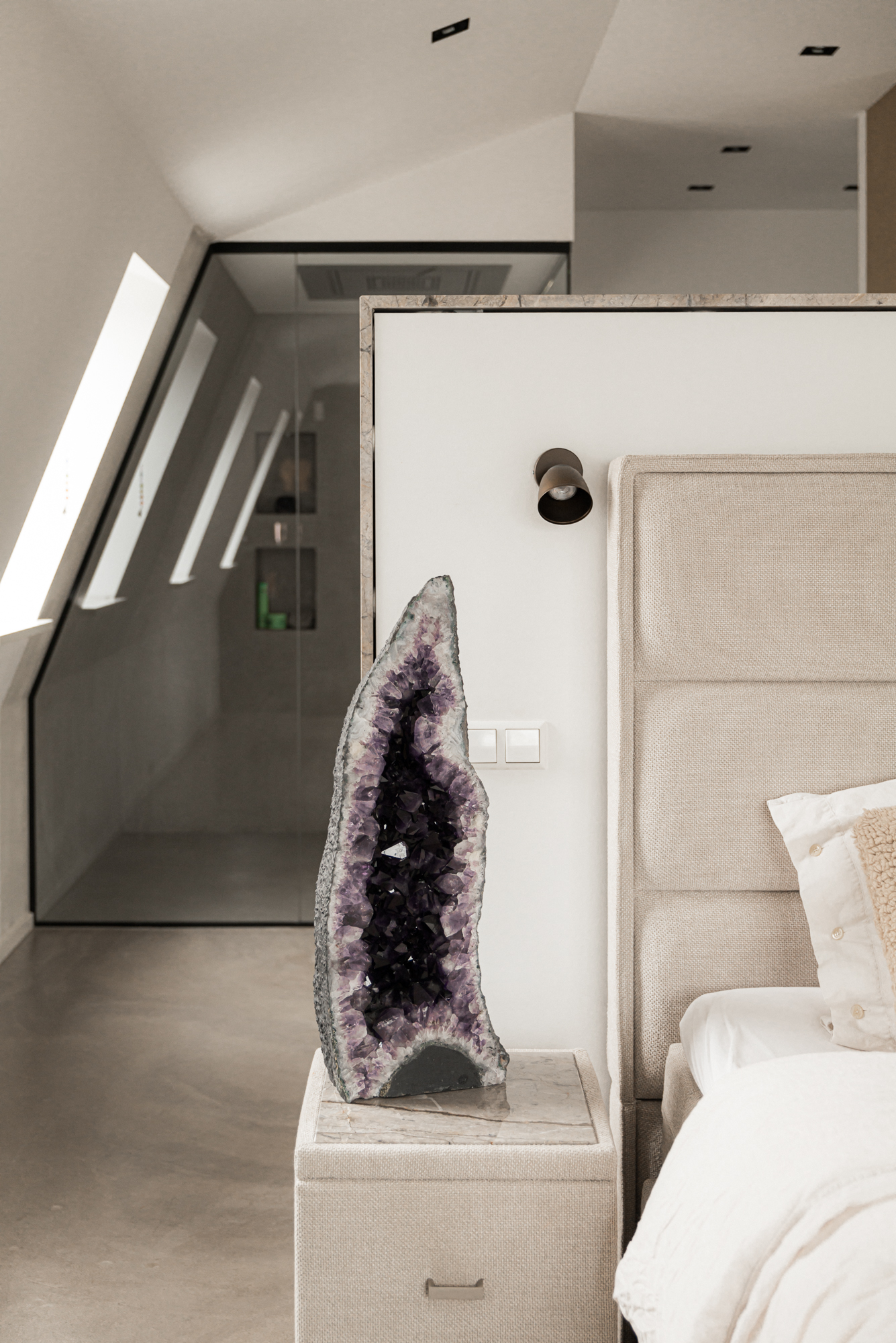 Each of the three bedrooms has its own en-suite bathroom. The master bedroom includes a walk-in closet, cleverly connecting the luxurious bathroom to the sleeping area.