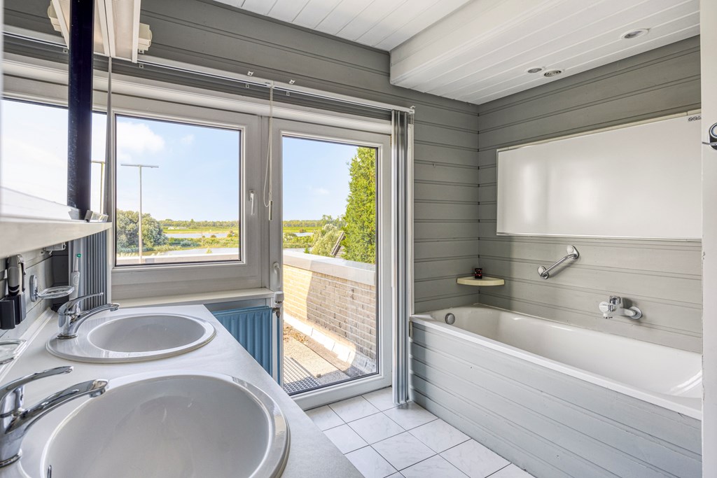 A rear garden with a sunny aspect and magnificent unobstructed views over nature and water is the highlight of this home. With a paved terrace, there is ample room for a lounge set or outdoor dining table, while the garden’s greenery provides peace and privacy.