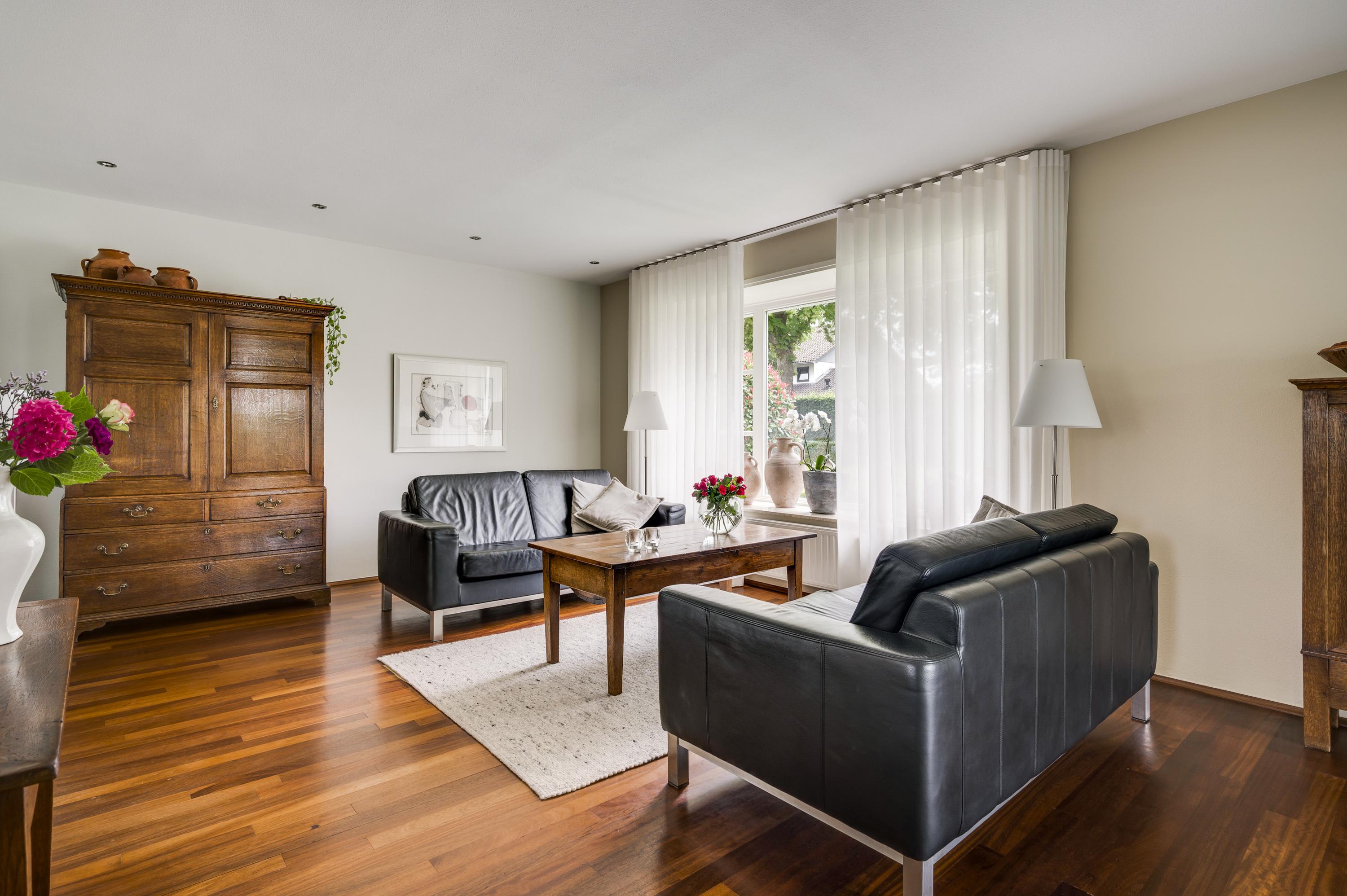 Below, the basement incorporates an indoor garage, wine cellar, and abundant storage. Energy-saving measures such as roof, wall, and floor insulation, HR++ glazing, 18 solar panels, and a modern heating system grant the home an energy class B rating, ensuring comfort is matched by responsible efficiency. The location in the serene, sought-after Roer-Zuid district allows for quiet residential living, with the center of Roermond and amenities close by. This villa for sale in Roermond represents a harmonious blend of privacy, elegance, and modern sustainability.