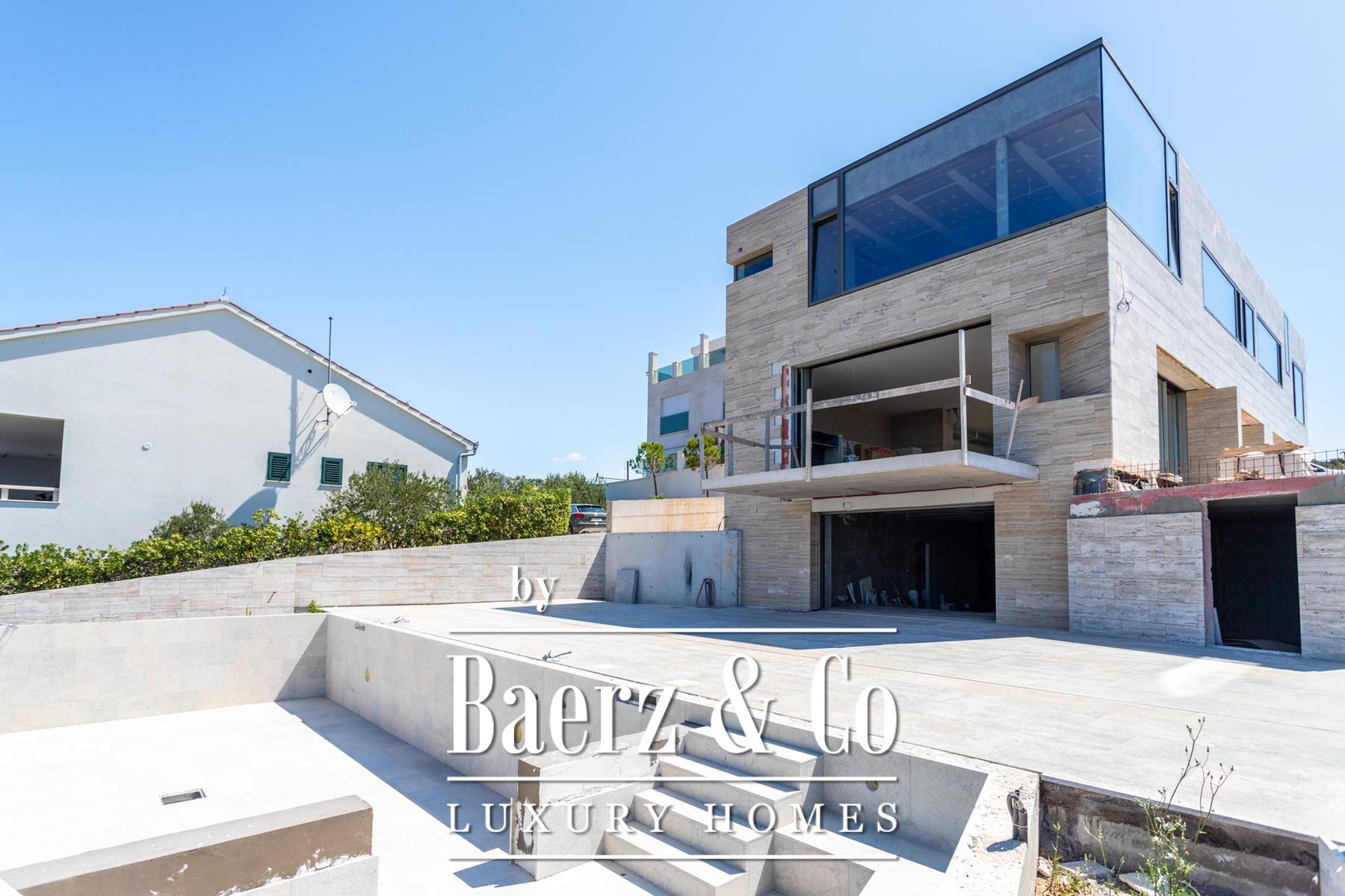 Materials specified include natural stone, tiles, and first-class American walnut parquet. High-end fixtures blend Grohe sanitary ware and a Mitsubishi multi VRF air conditioning system. Otis elevators serve each level, while modern designer furnishings echo the contemporary character and natural setting. Outdoor amenities include five parking spaces, barbecue and kitchen area, dedicated to restful gatherings by the sea. Completion is expected in December 2024, promising a villa in Croatia tailored to the discreet tastes of a global audience.