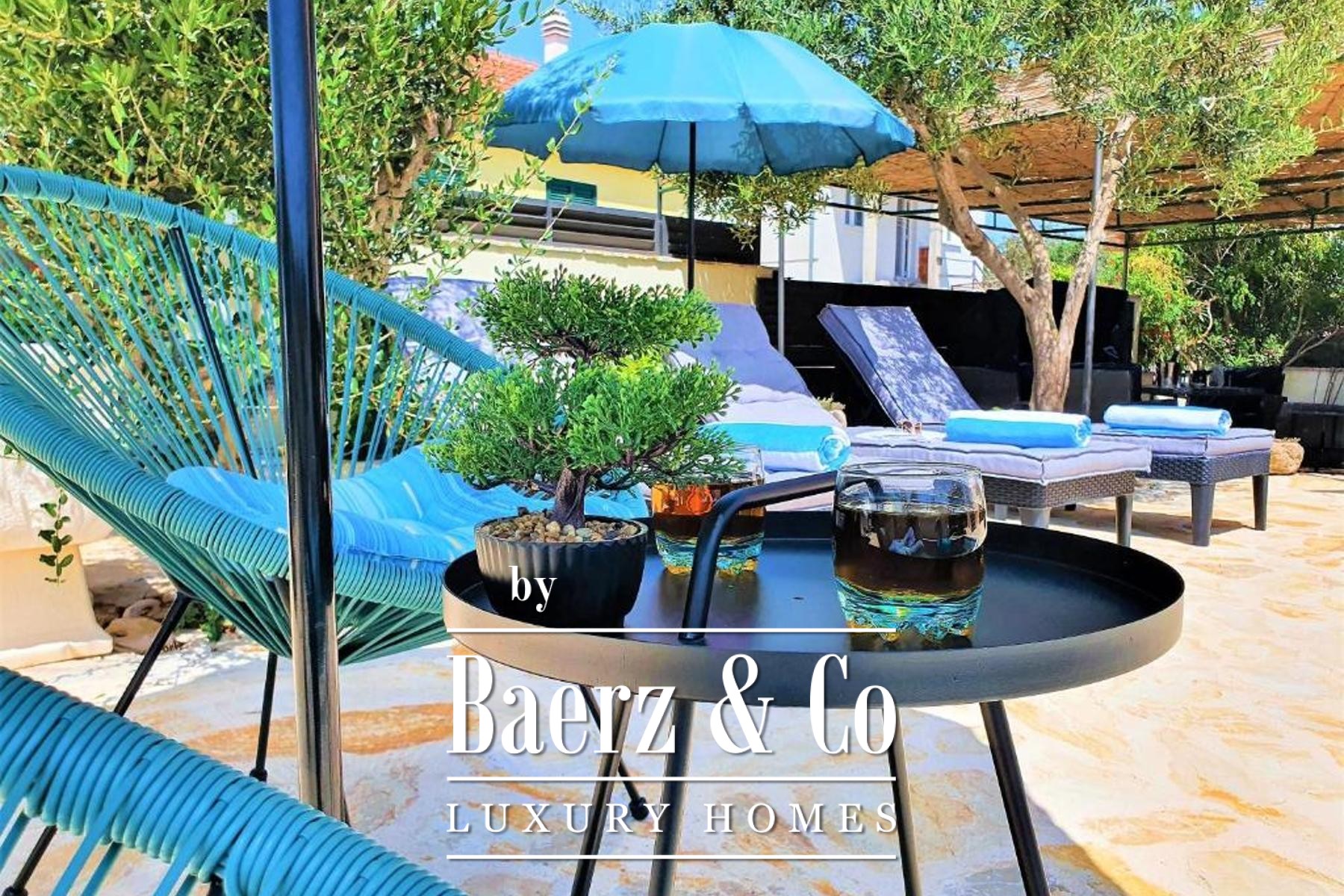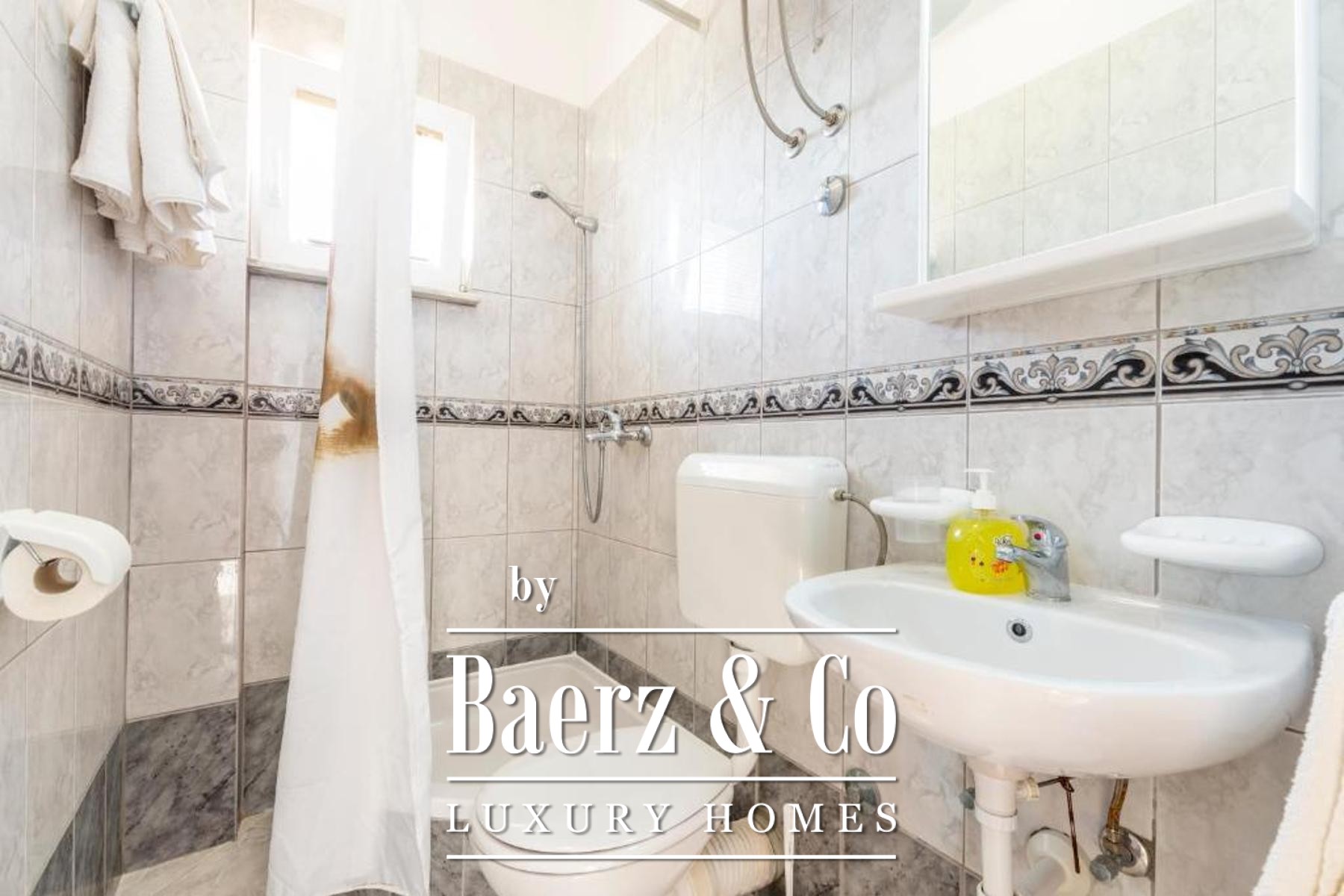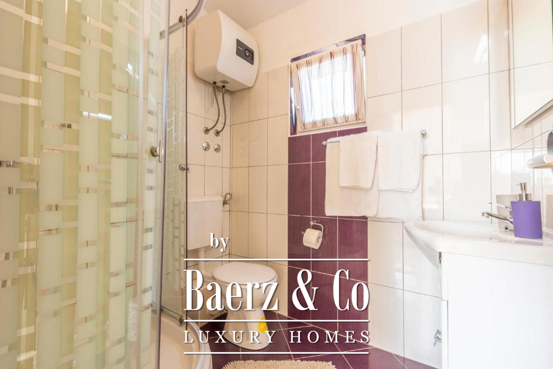 On the second floor, two studio apartments benefit from their own bathrooms, kitchenette-living areas, and private terraces opening towards the Adriatic, framing unobstructed sea views. The garden embraces a large swimming pool, sunbathing zone, and grill area, with six parking spaces available, including two covered. Located 500 meters from the coast in a quiet enclave of Rogoznica, this apartment house balances tranquil seclusion with proximity to the sea, offering an appealing prospect for both private enjoyment and discerning investment.
