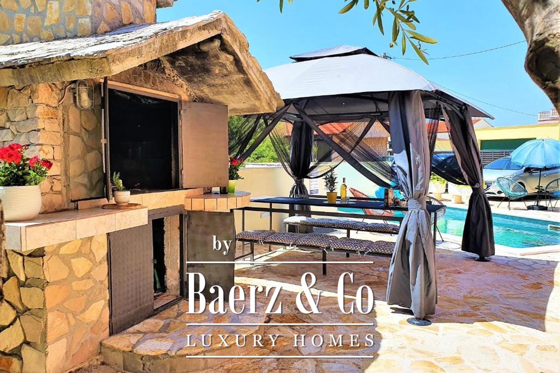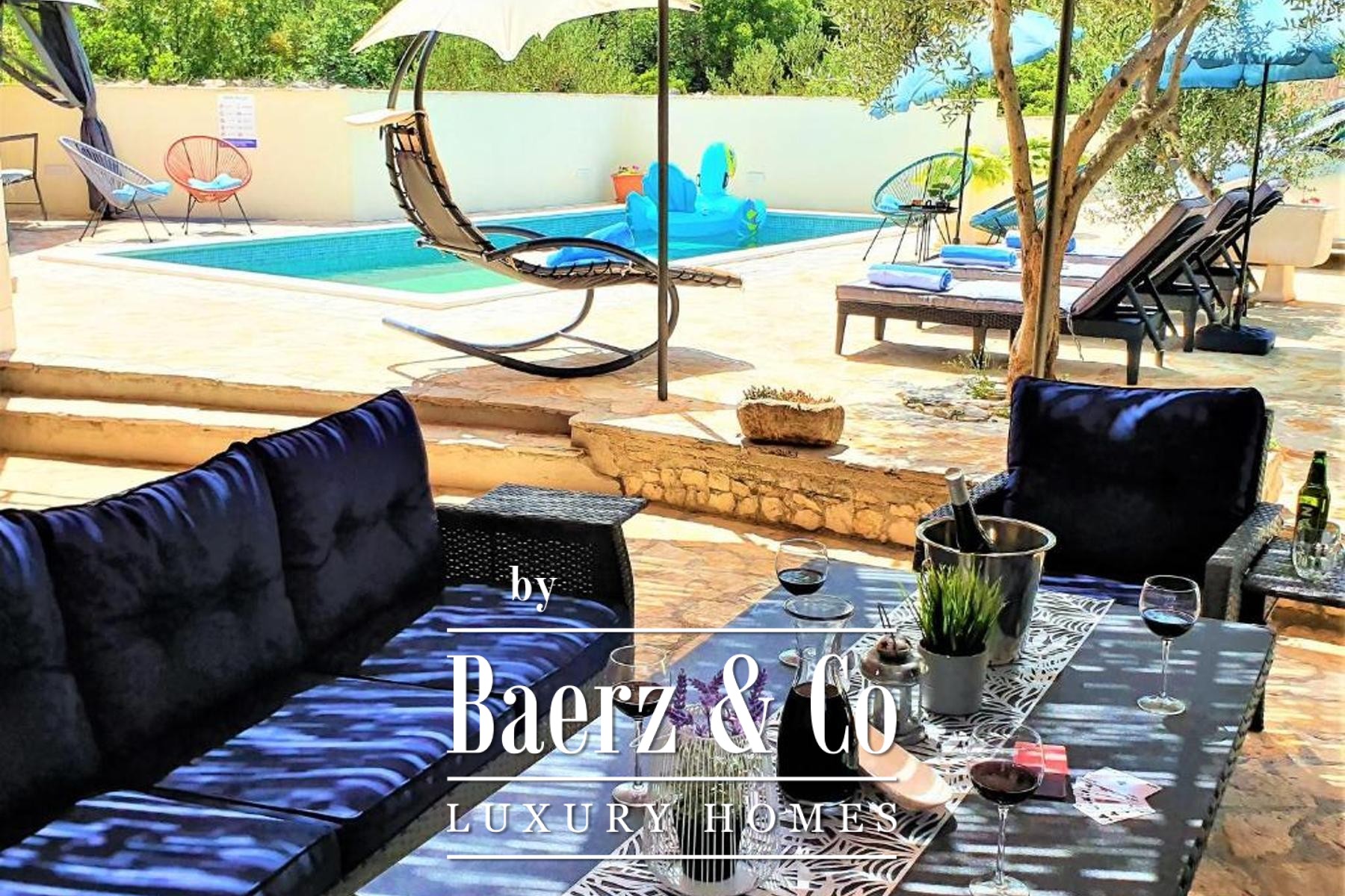 Apartment house Rogoznica with pool and sea views offers a fully furnished 236.46 m² residence on a 520 m² plot, conceived for quiet retreat or a refined holiday rental. The property stands across three levels, each reflecting a careful layout designed for privacy and comfort.