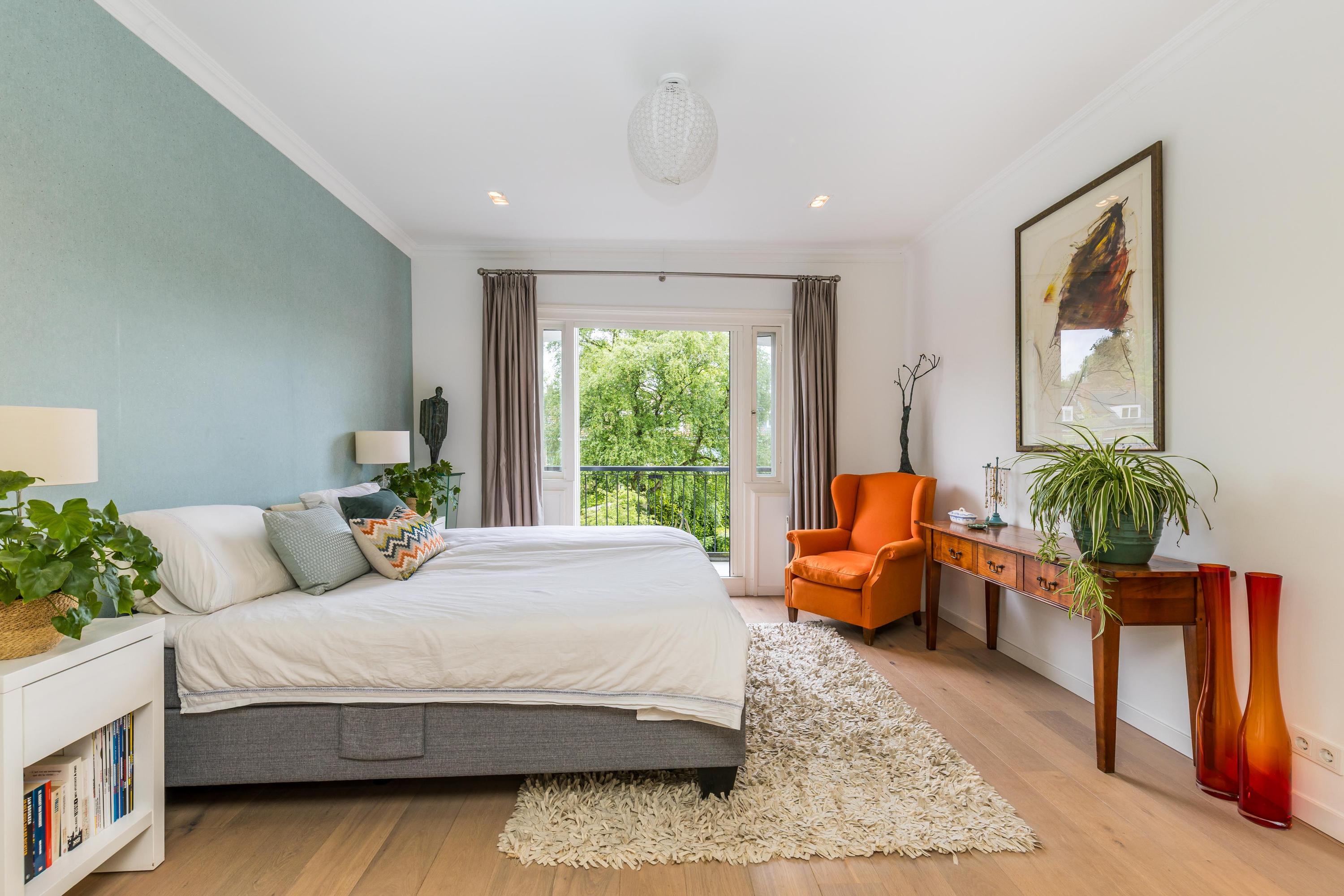 The beautiful spacious kitchen/diner with high ceiling and the nature and child-friendly backyard may be the real eye-catchers, but the house has many more strong plus points and unique selling points. For example, the combination of the preserved authentic details and the applied modern comfort is particularly attractive and atmospheric. The basement with a TV room/chill room/playroom is ideal for families. On the 2 sleeping floors there are 3 spacious bedrooms, 2 with a balcony, 1 with a stylish en suite walk-in closet and 1 with an en suite bathroom. If desired, 2 extra bedrooms can be created on the top floor relatively easily.