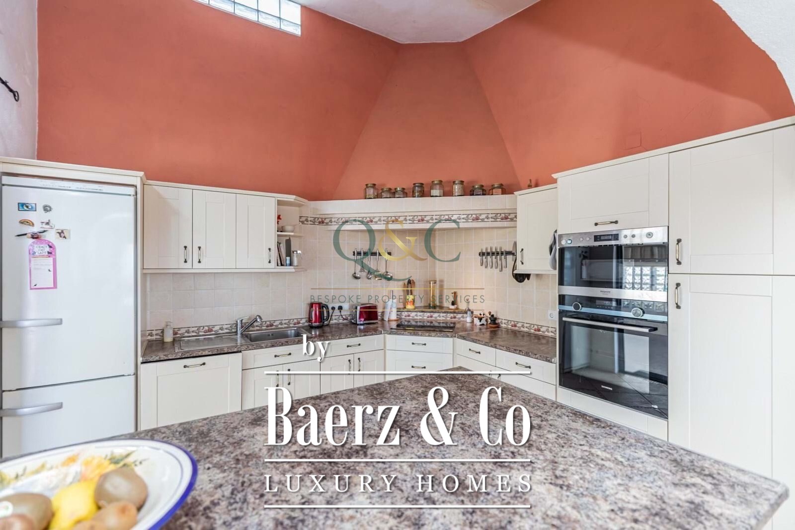 Traditional villa Santa Bárbara de Nexe harmonises classic Algarve architectural sensibility and contemporary comfort within a walled 1,820 m² plot. This property offers a main house with three bedrooms alongside a fully independent annex providing two additional bedrooms, establishing a generous 292 m² of living space designed for privacy and flexibility. From the electric wrought-iron gates and the spacious driveway to the attached garage, all arrivals are met with a sense of enclosure and peace.