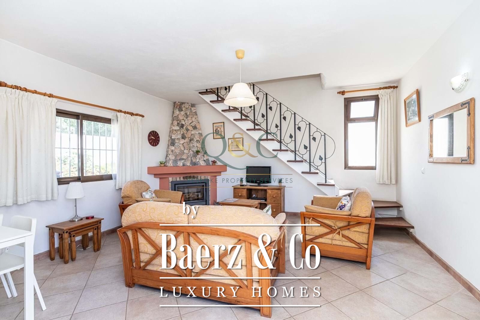 Light guides the open-plan living and dining space, where a fireplace anchors gatherings, and the fully equipped kitchen enhances daily rhythm. Glass doors open to a covered terrace and onward to the pool, blurring indoor and outdoor living. The principal house features two suites, an additional bedroom, and a guest bathroom. Upstairs, a vast rooftop terrace frames far-reaching mountain and sea views, reflecting the special pace of Algarve life.