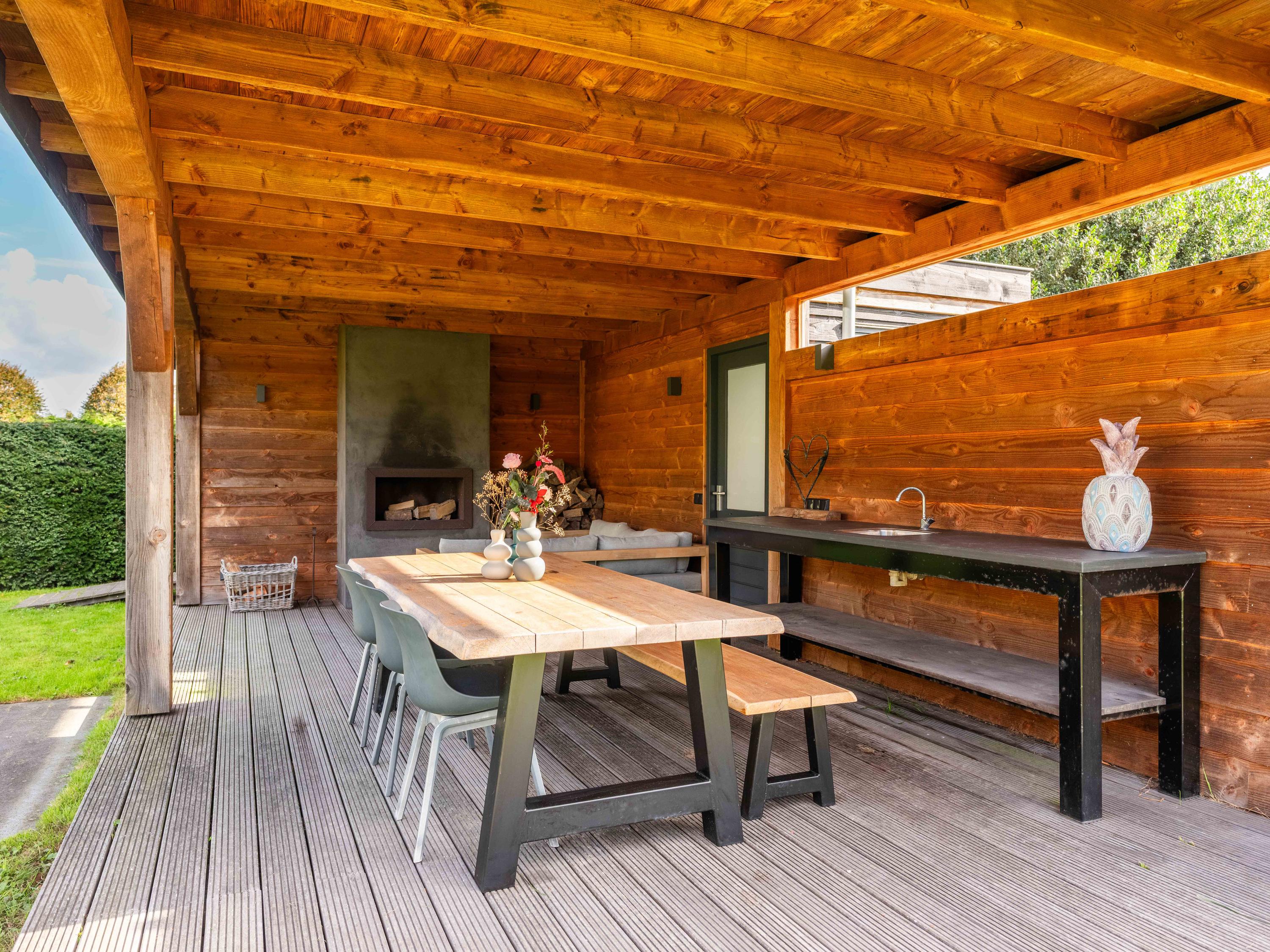 The back garden is very spacious and well landscaped. There is a lovely veranda with a wood-burning stove, seating area, storage space, electricity, lighting and (cold) water. There is also a spacious chicken coop in the garden, which will remain.