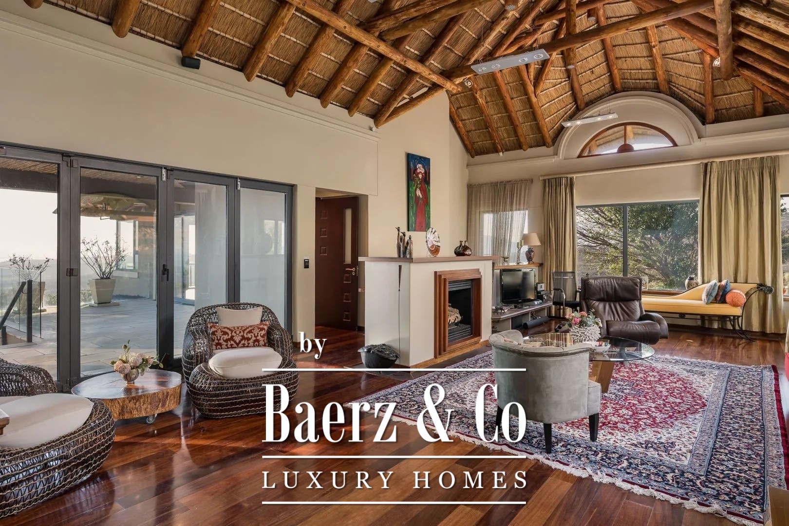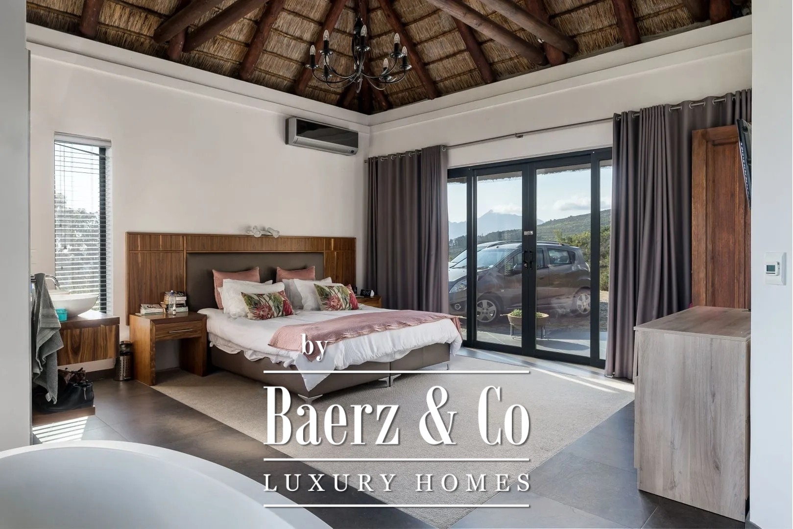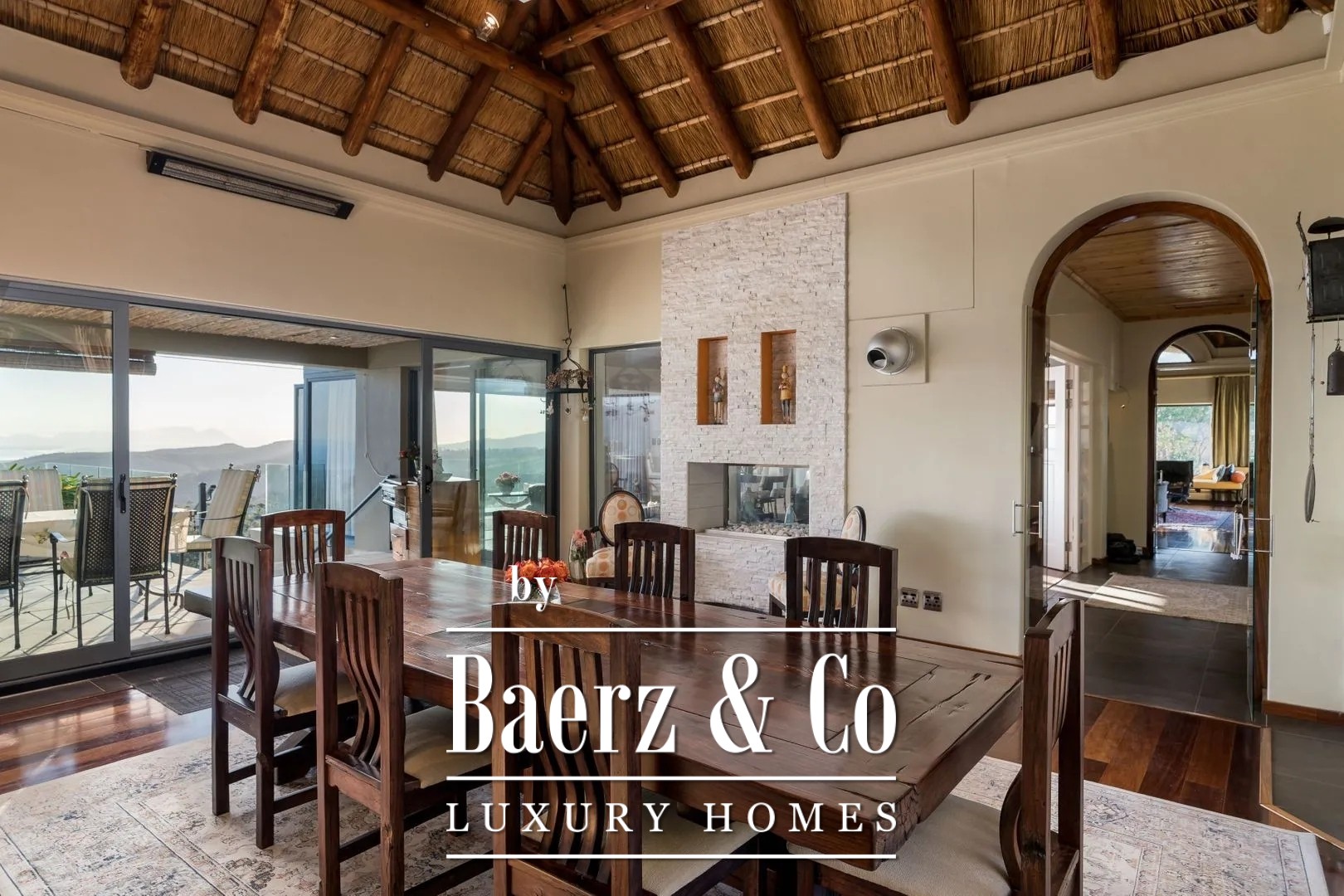 In 2006 the manor house and outbuilding were traditionally built with natural materials in the unique South African rondavel style. The structure consists of cavity brickwork walls with plastering, concrete floors, and an open wooden roof construction, nostalgically thatched with reed. The property is fitted with insulated glass in low-maintenance aluminium frames with sliding doors.