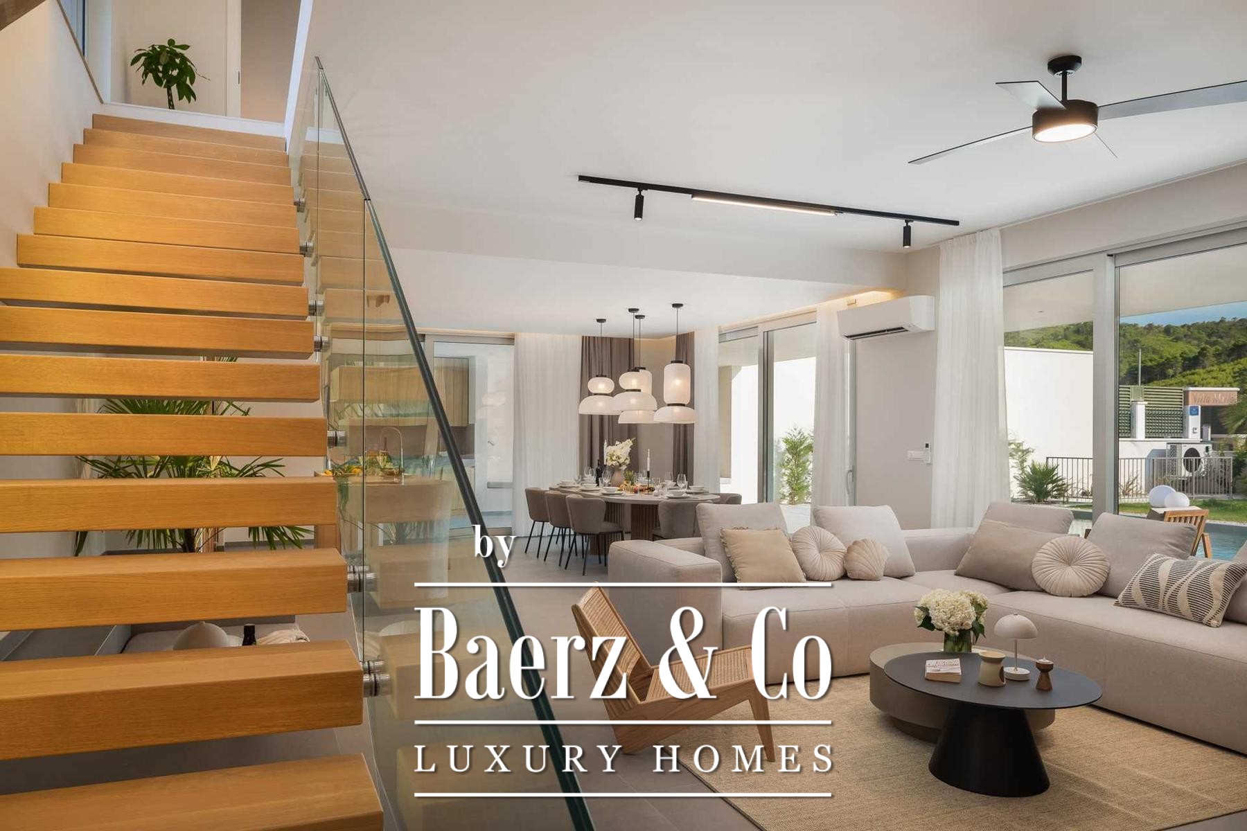 Villa Split Okolica offers a contemporary retreat on a generous 2,090 m² plot, distinguished by privacy and refined spatial planning. This villa’s 330 m² of living area unfolds over two levels, each crafted for balance between private sanctuary and versatile entertaining.