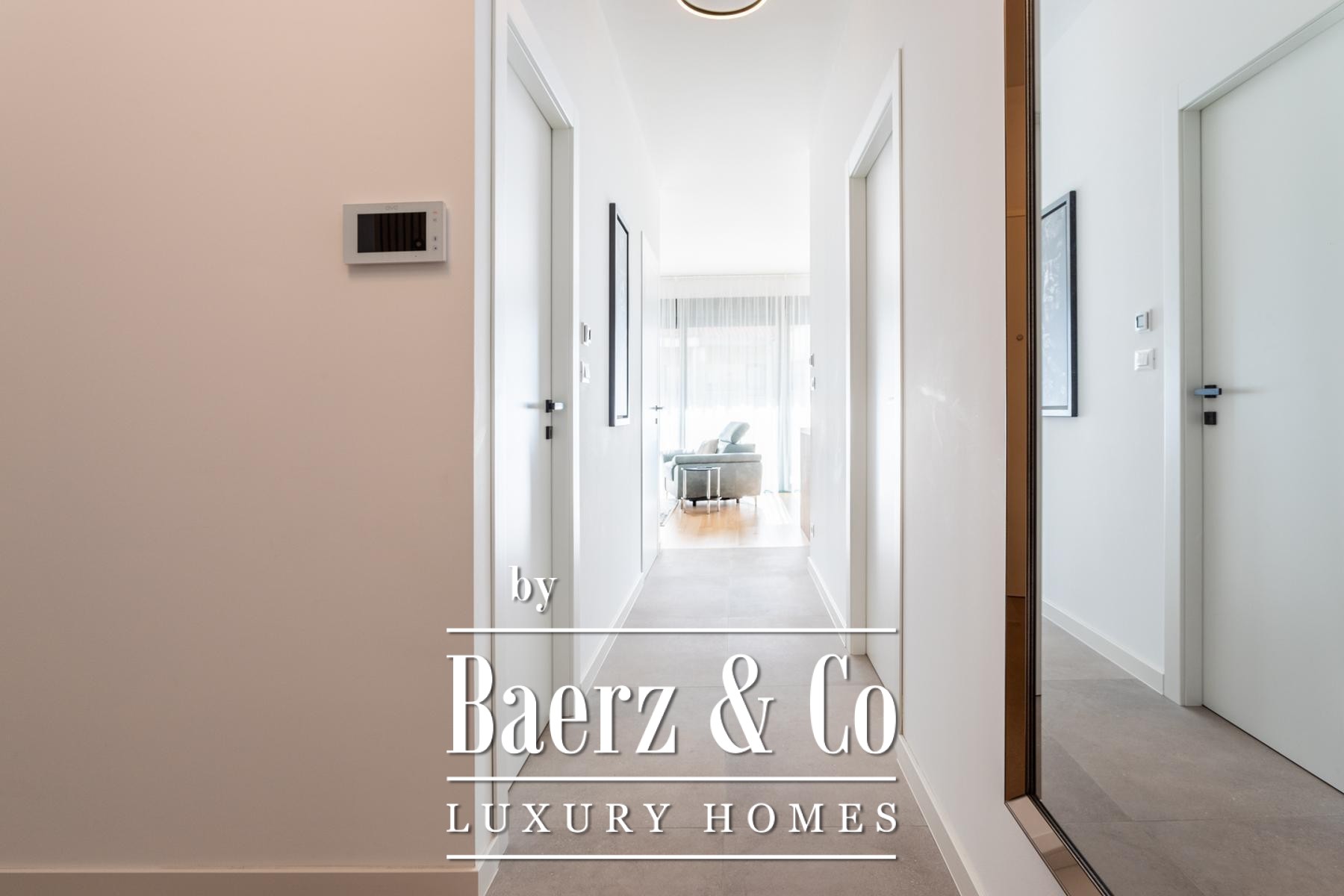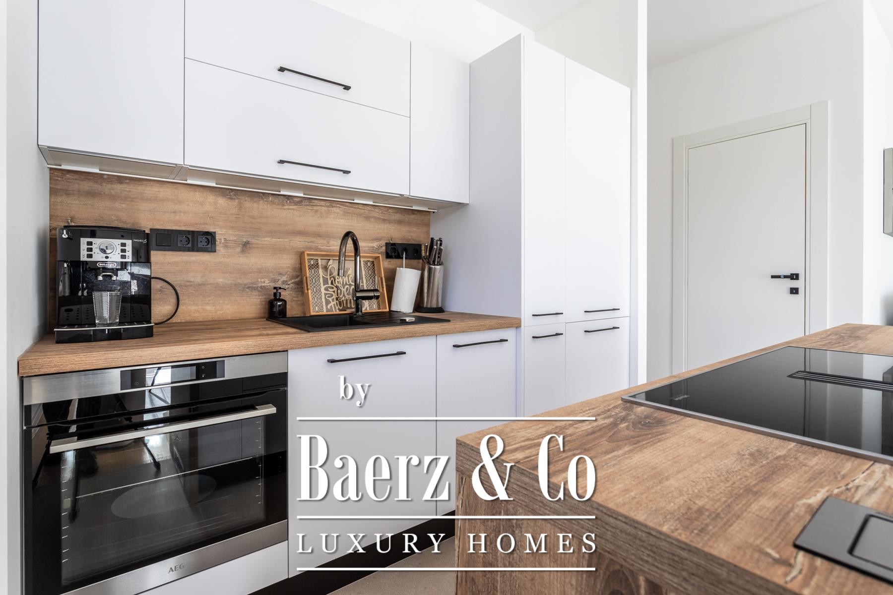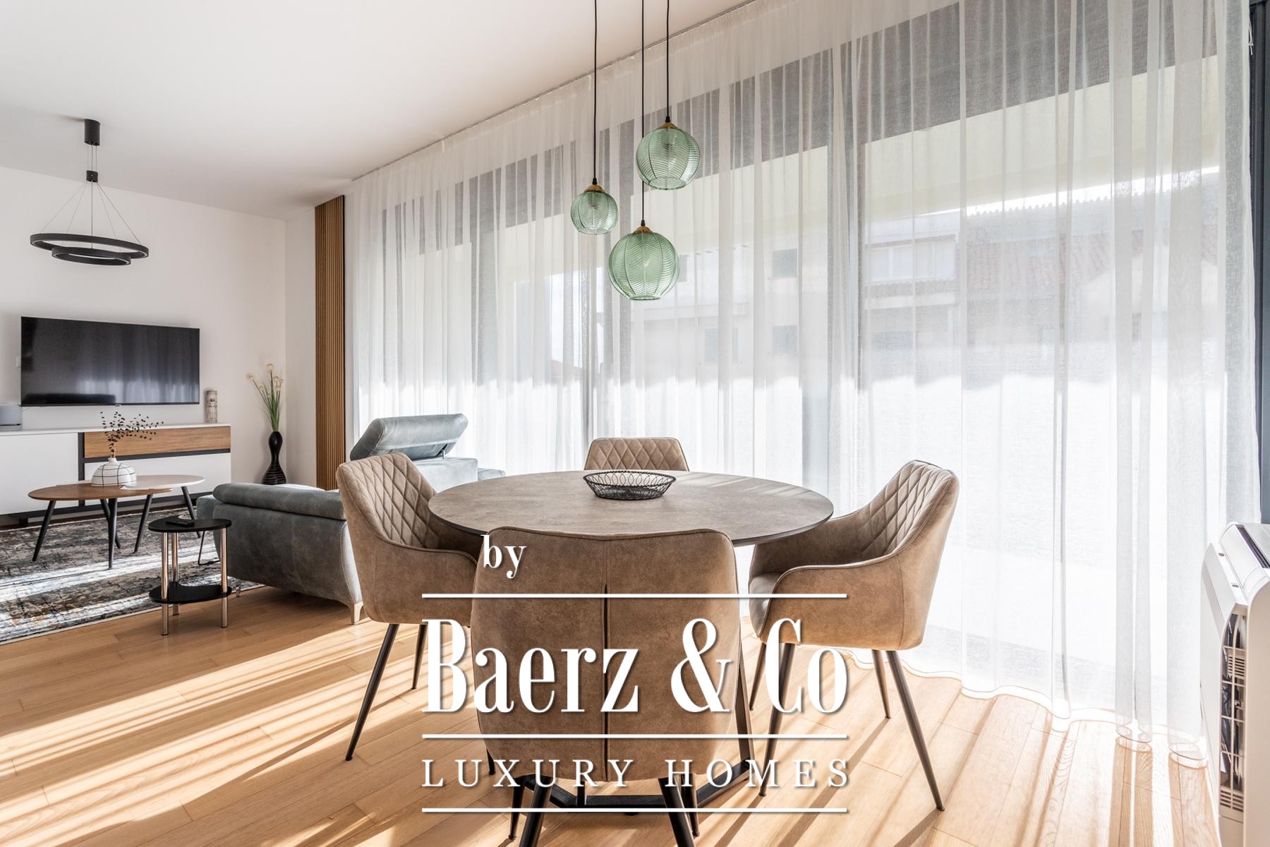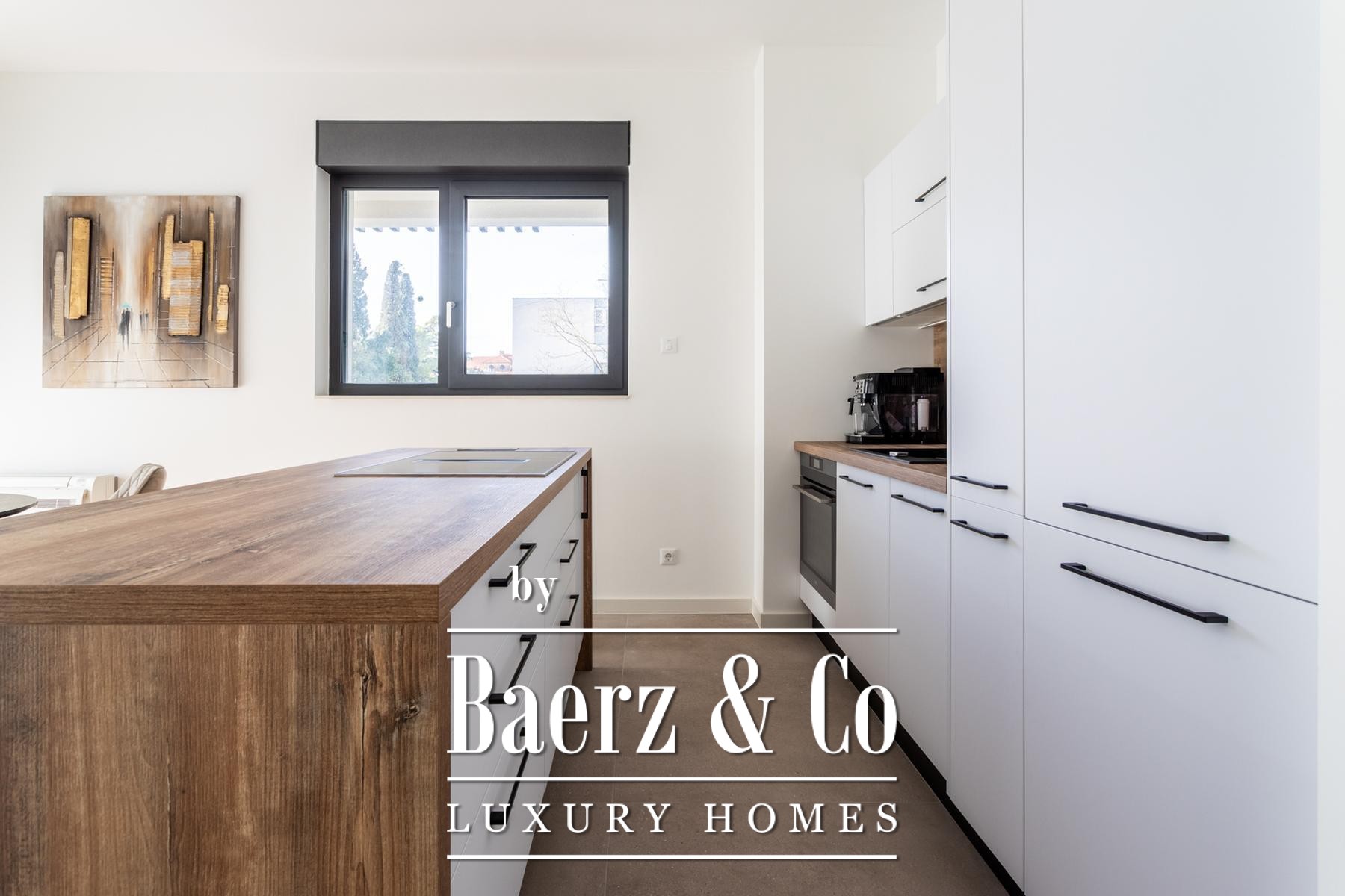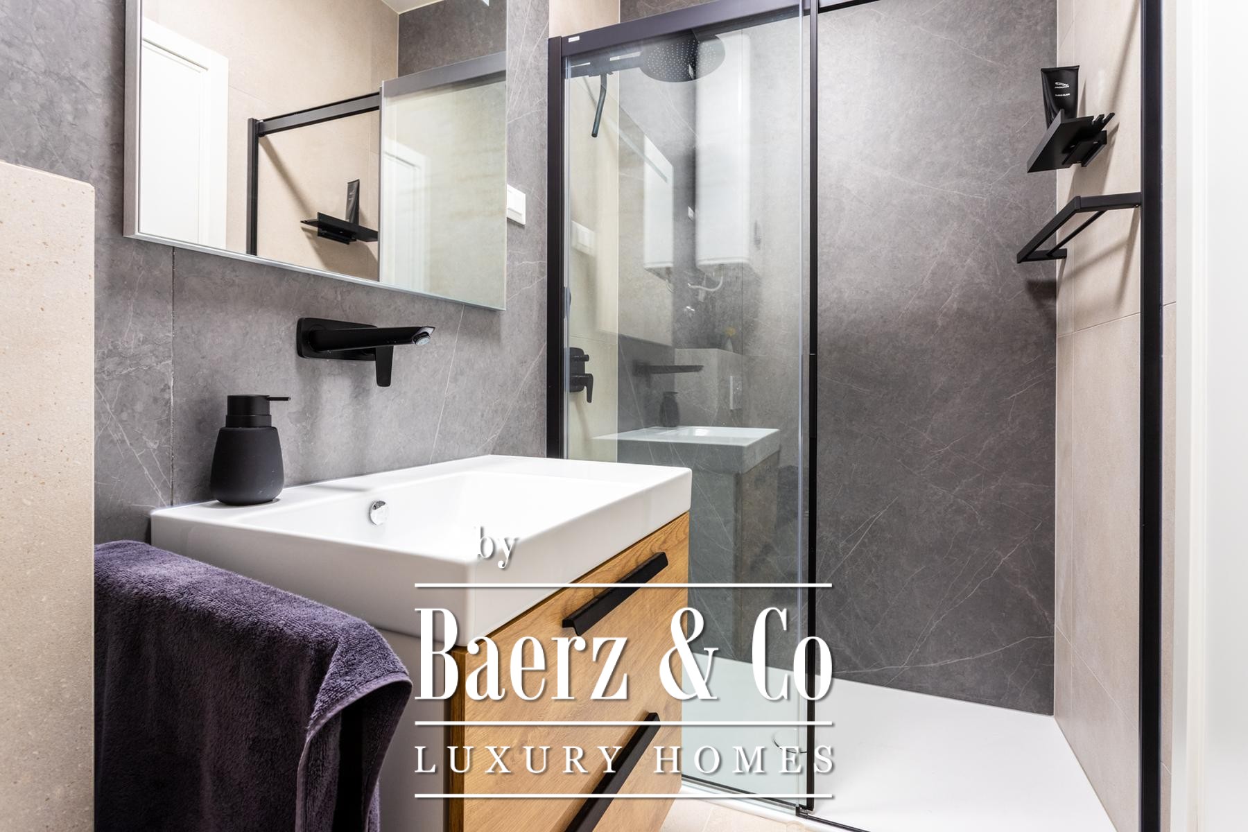 A spacious balcony extends the living space outdoors, while practical features such as two garage parking spaces and a storage room support both convenience and security. The apartment is fully and modernly furnished, with underfloor heating in bathrooms and kitchen, electric shutters, and a premium Daikin air-conditioning system, ensuring year-round comfort. Each bedroom enjoys its own wall-mounted unit, and the living areas are serviced by a floor-mounted system.