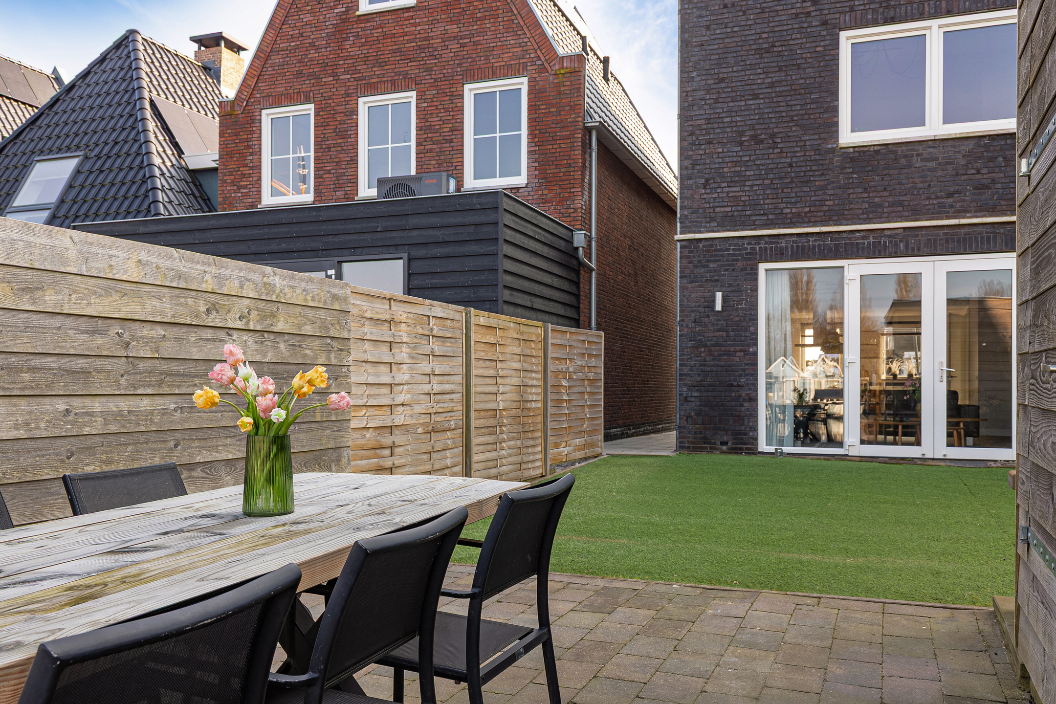 Outdoor living is centred around a northwest-facing garden with protected terrace, a wooden covered area with storage, and a shared jetty with swimming ladder—providing seamless access to Friesland’s extensive waterways and the IJsselmeer. The private mooring measures about 13 by 7 metres, ideal for a sailboat or motorboat. The property benefits from 27 solar panels, a heat pump with boiler, and full insulation for maximum efficiency.
