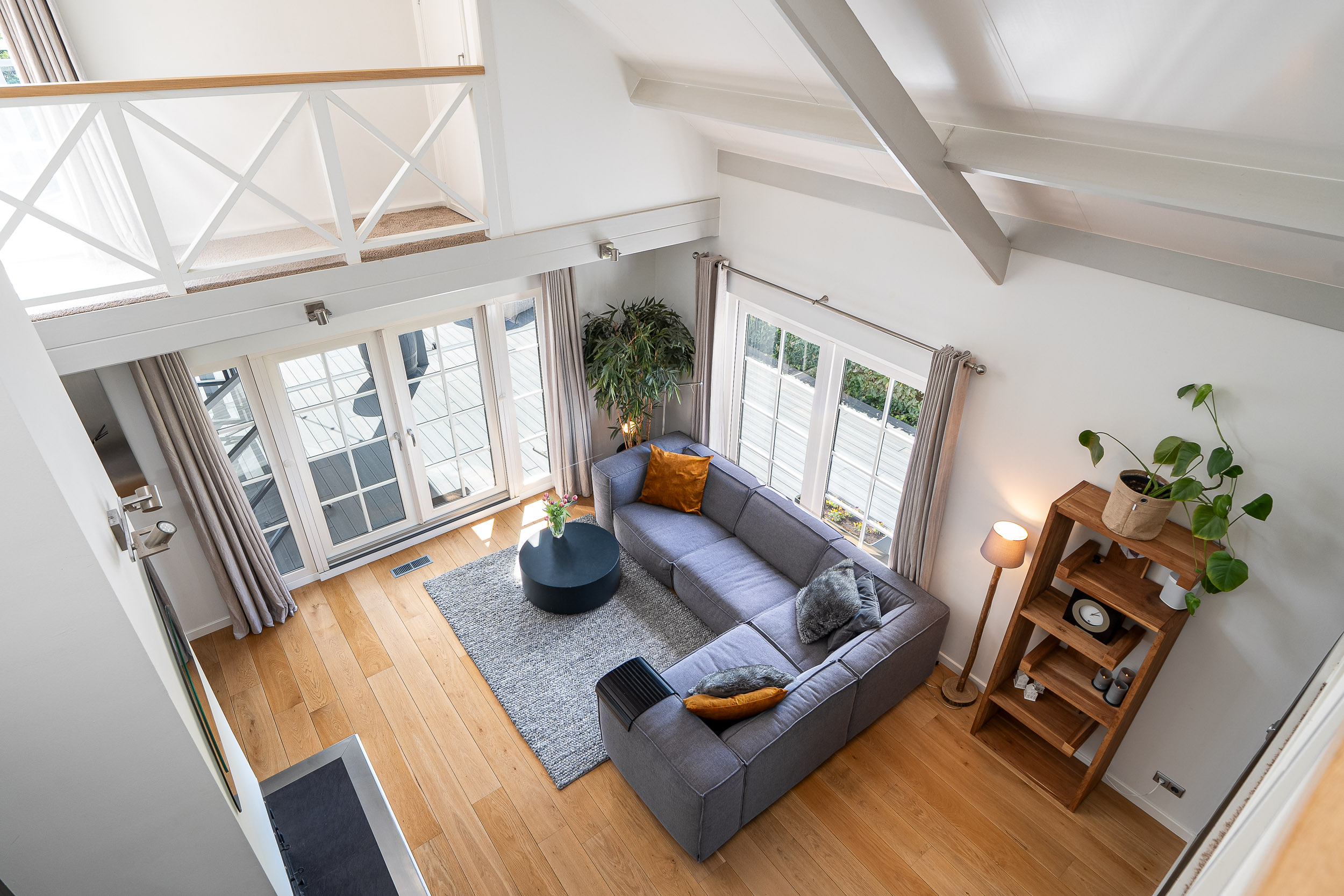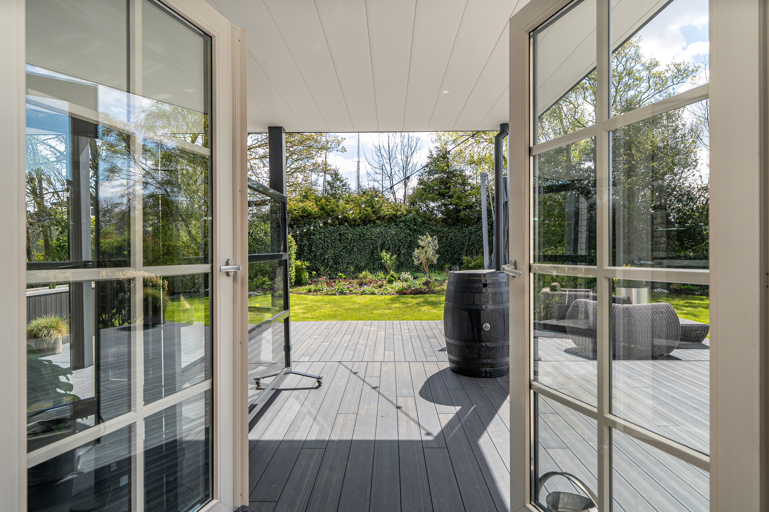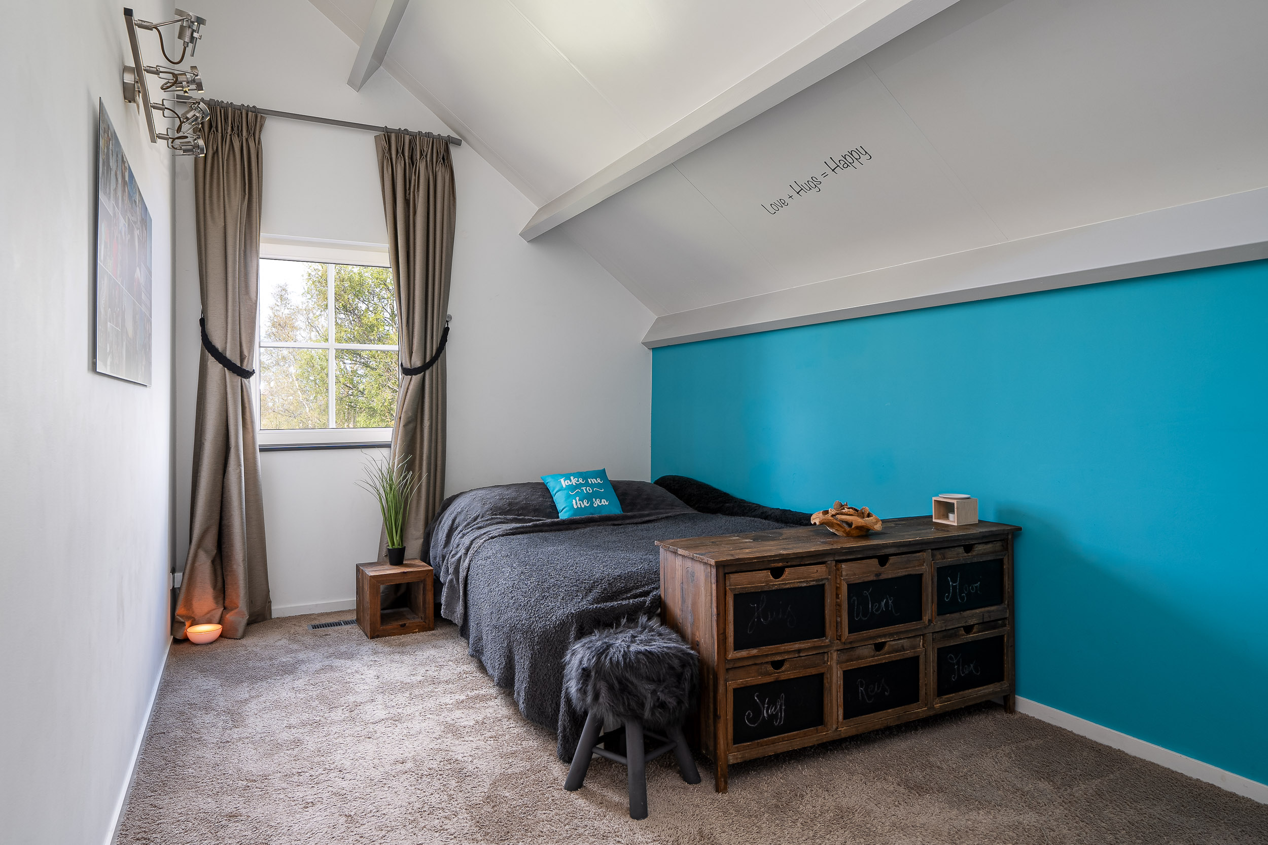 A recently built fully insulated guesthouse, studio, or home office is located in the garden. It includes a kitchenette and bathroom, making it suitable for multiple uses. The large southwest-facing windows offer inspiring panoramic views of nature toward the IJsselmeer, with its ever-changing Frisian skies.