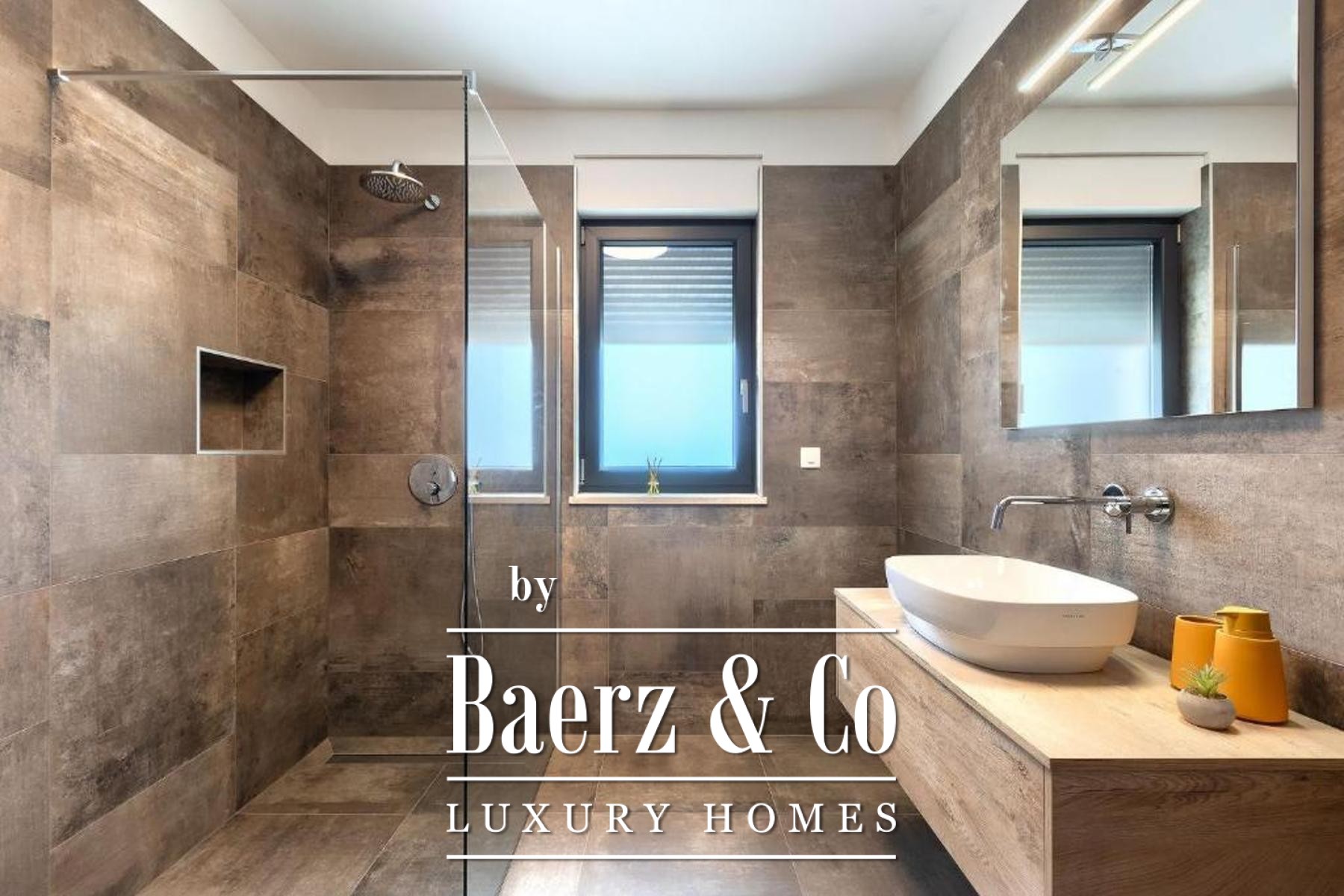 Outdoors, a fully fenced garden invites relaxation, its centrepiece a 50 m² heated pool finished in ceramic tiling and bordered by a tranquil sunbathing area. Modern heating and cooling systems throughout the villa underscore year-round comfort, whether for permanent residence, holiday retreat, or as a luxury villa for sale in Svetvinčenat. The environment, both natural and architectural, reflects an investment in privacy, quality, and the unhurried elegance of Istrian life.