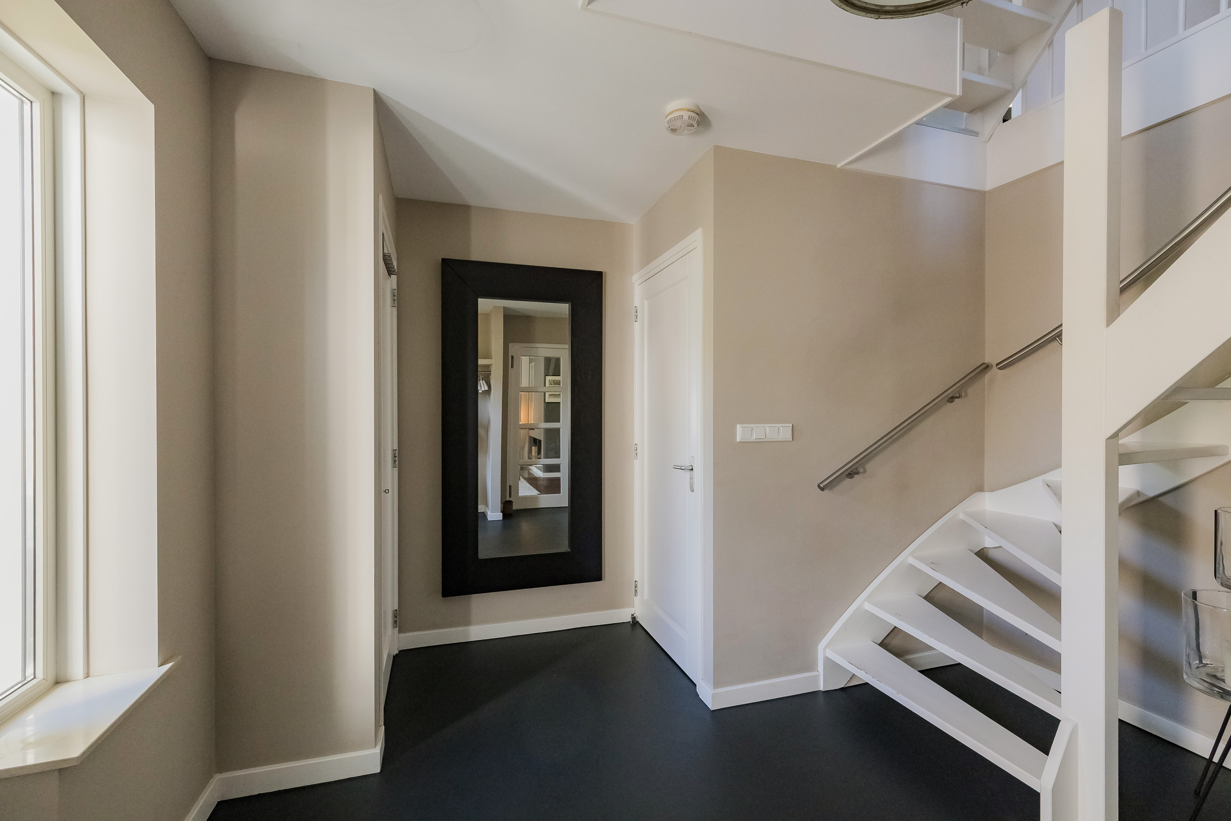 You enter a beautiful hall with a loft, which immediately gives a feeling of space. Here you will find the cloakroom, toilet, stairs, and access to the living room.