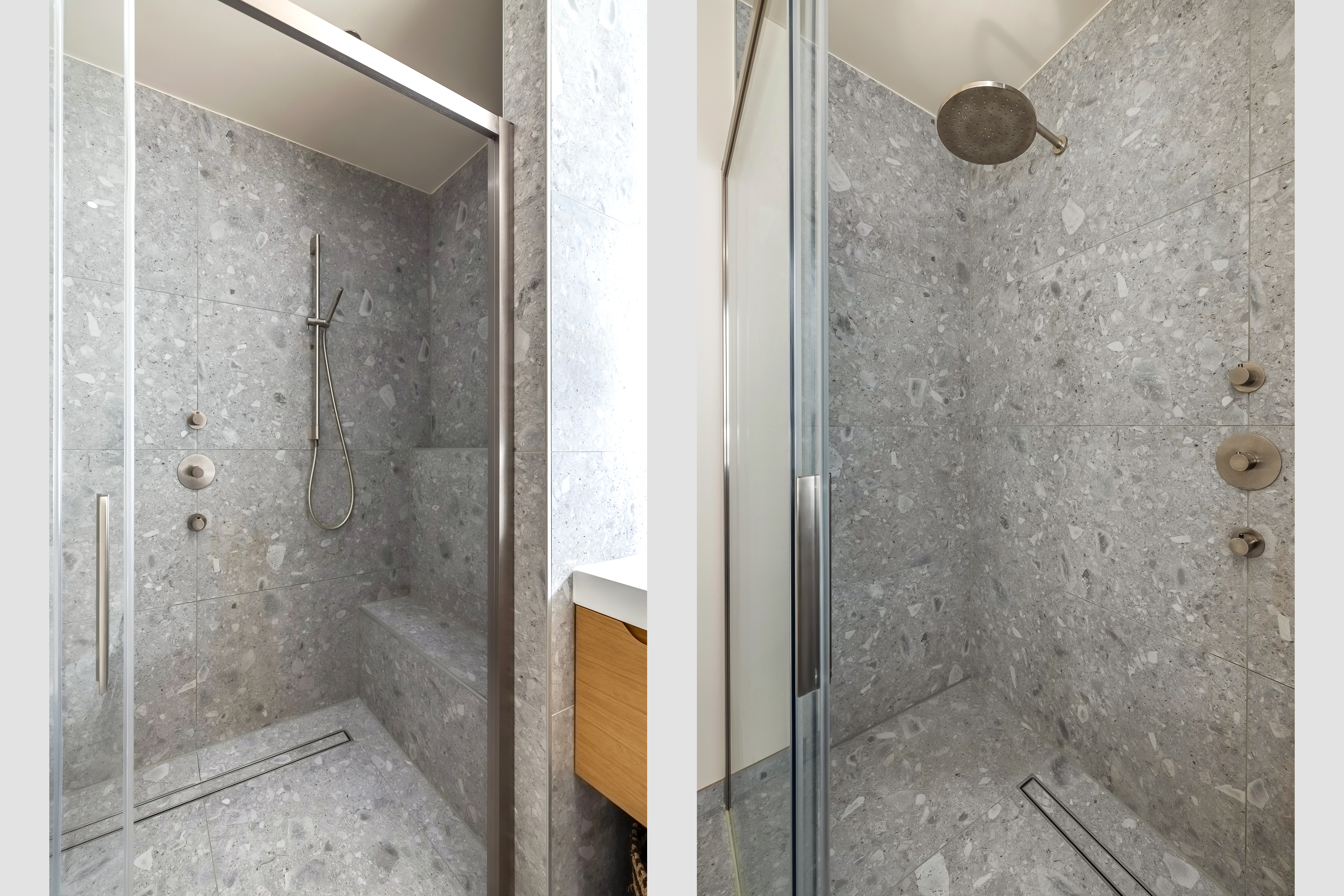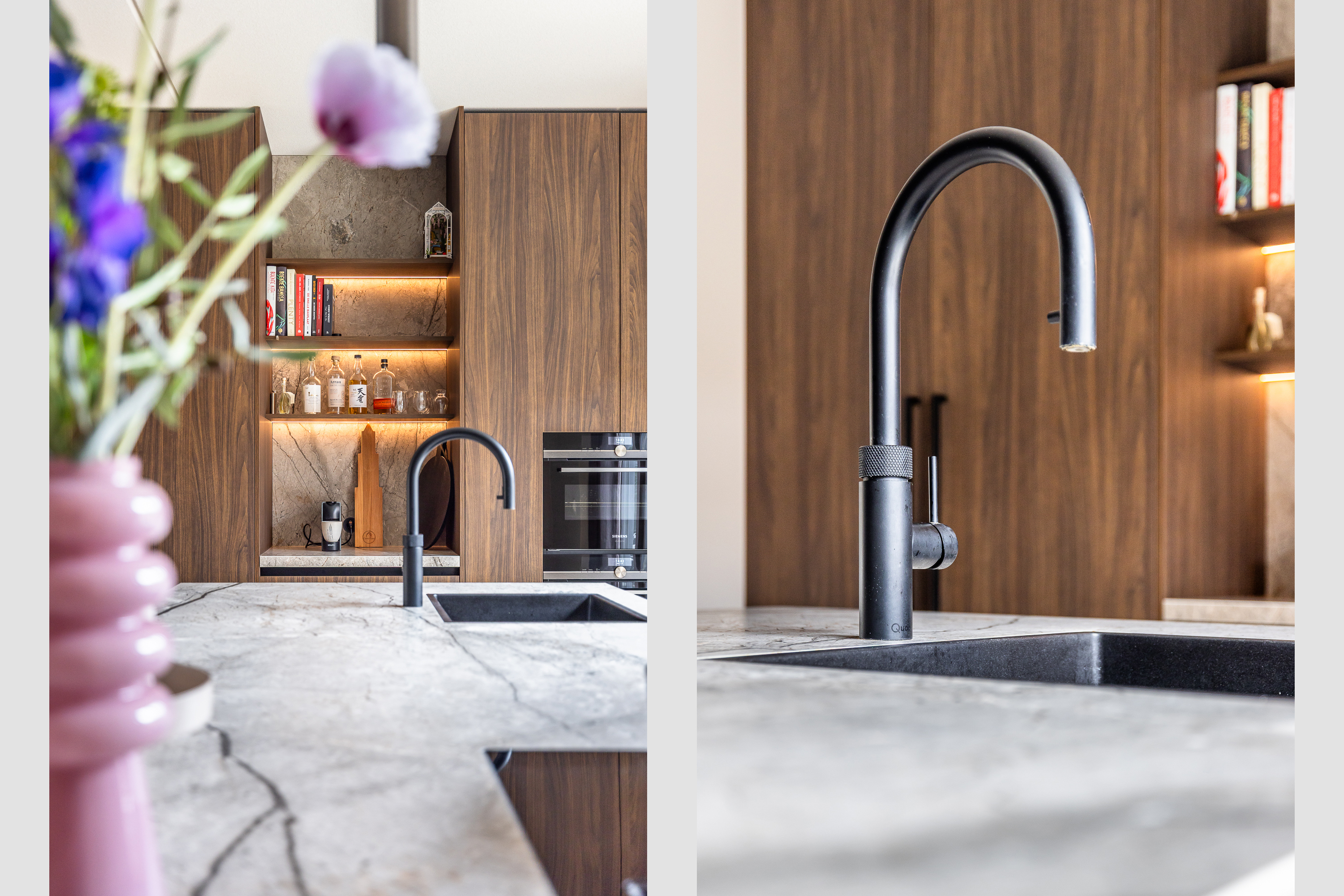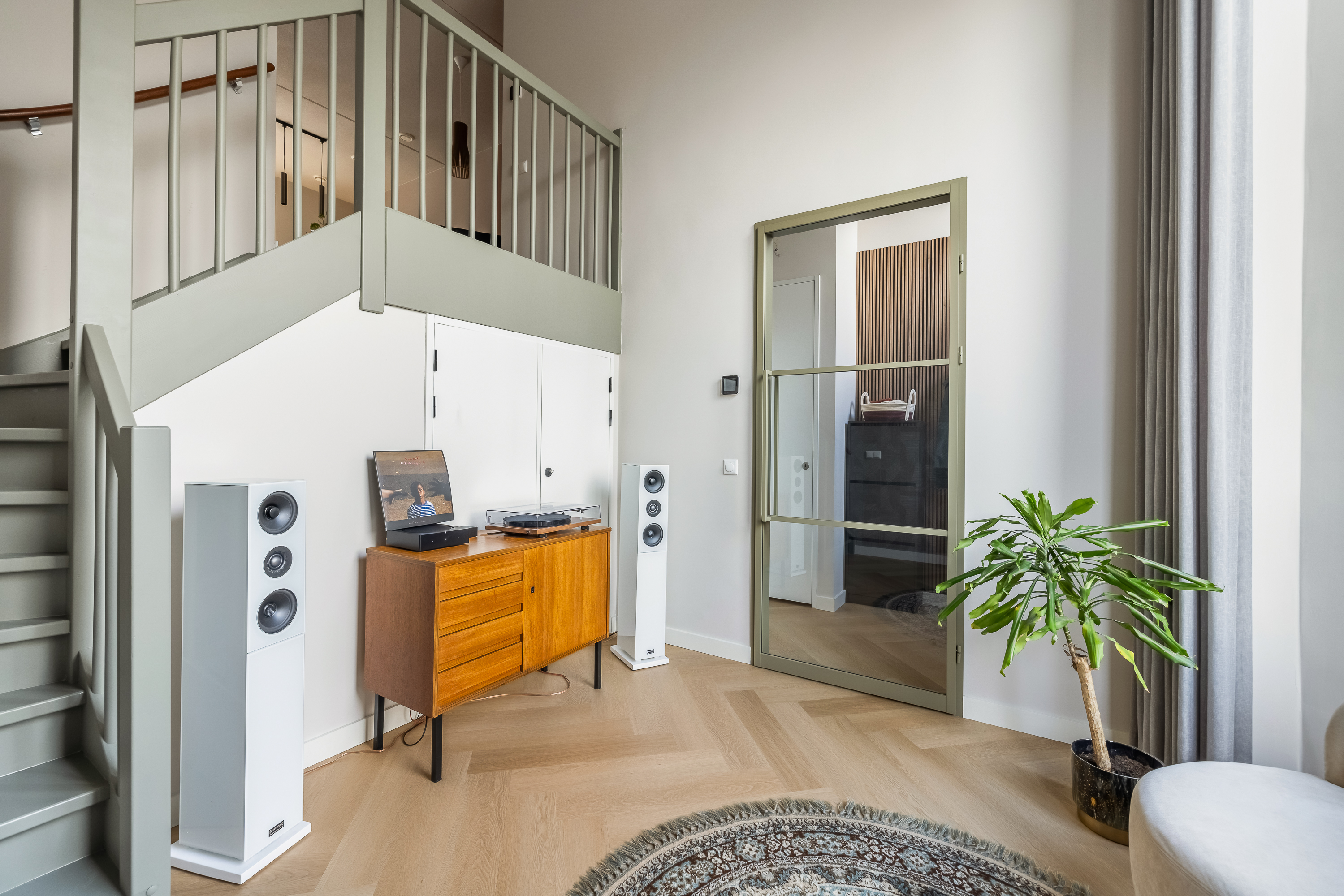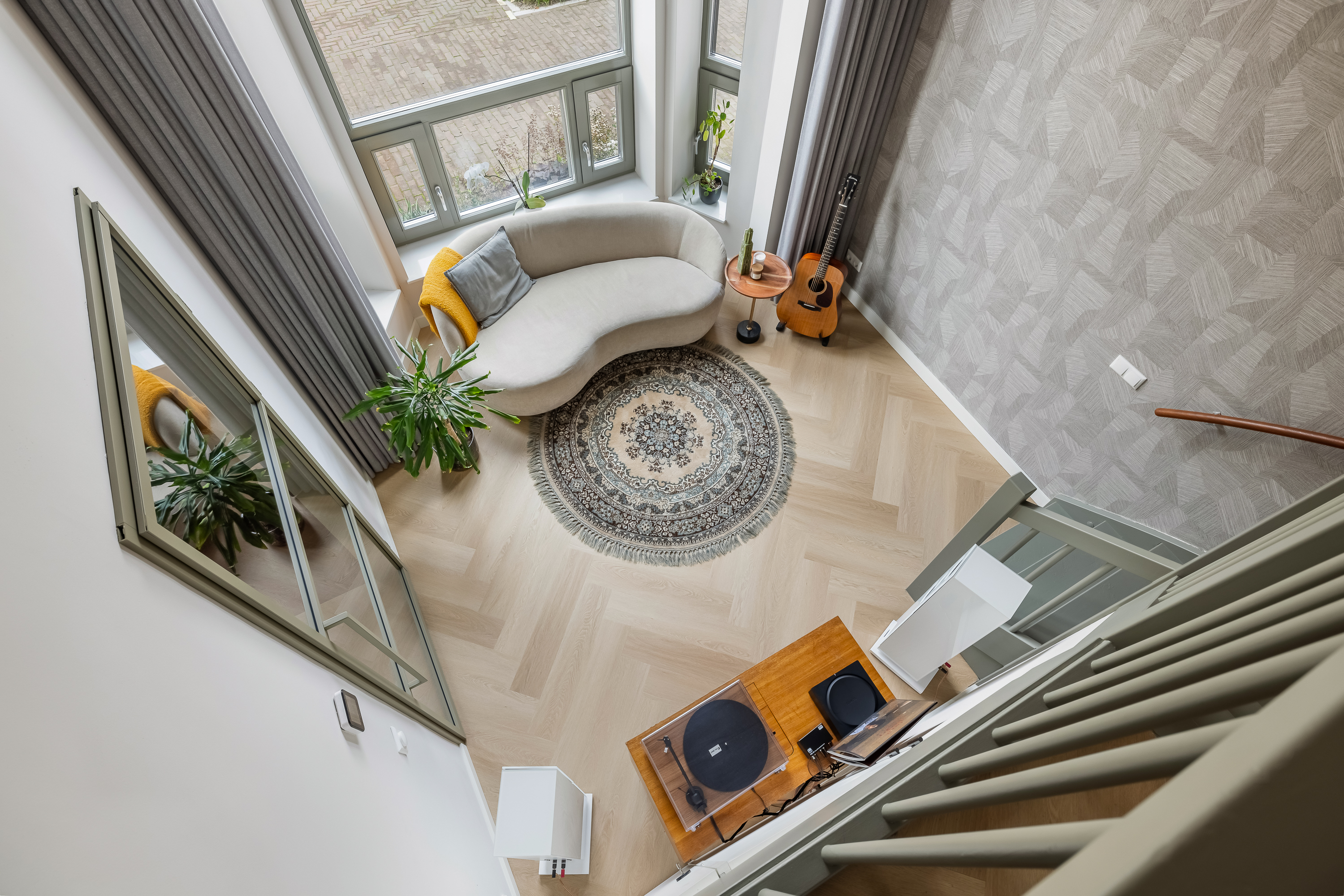 De woning is tot in detail ontworpen. Warm, luxe en eigentijds, zonder koel of afstandelijk te worden. De maatwerkkeuken is een echte leefkeuken. Kasten tot aan het plafond, mooie materialen en goede inbouwapparatuur die met wifi te bedienen is. Je zet de oven alvast aan onderweg naar huis, laat de broodjes bakken voordat je beneden komt en schuift daarna meteen aan om samen te eten. Alles is strak uitgelijnd, nergens standaard, alles klopt. Dit is een huis voor mensen die oog hebben voor detail.