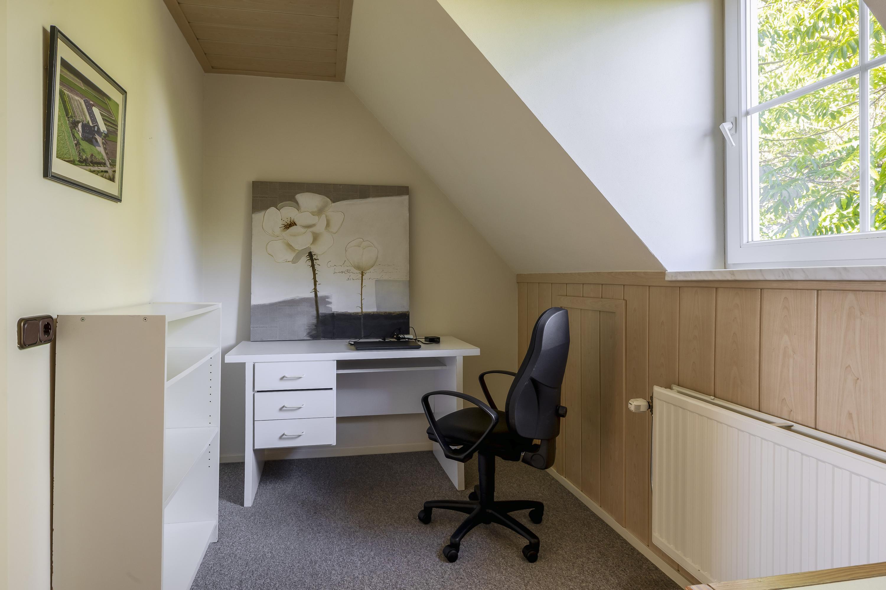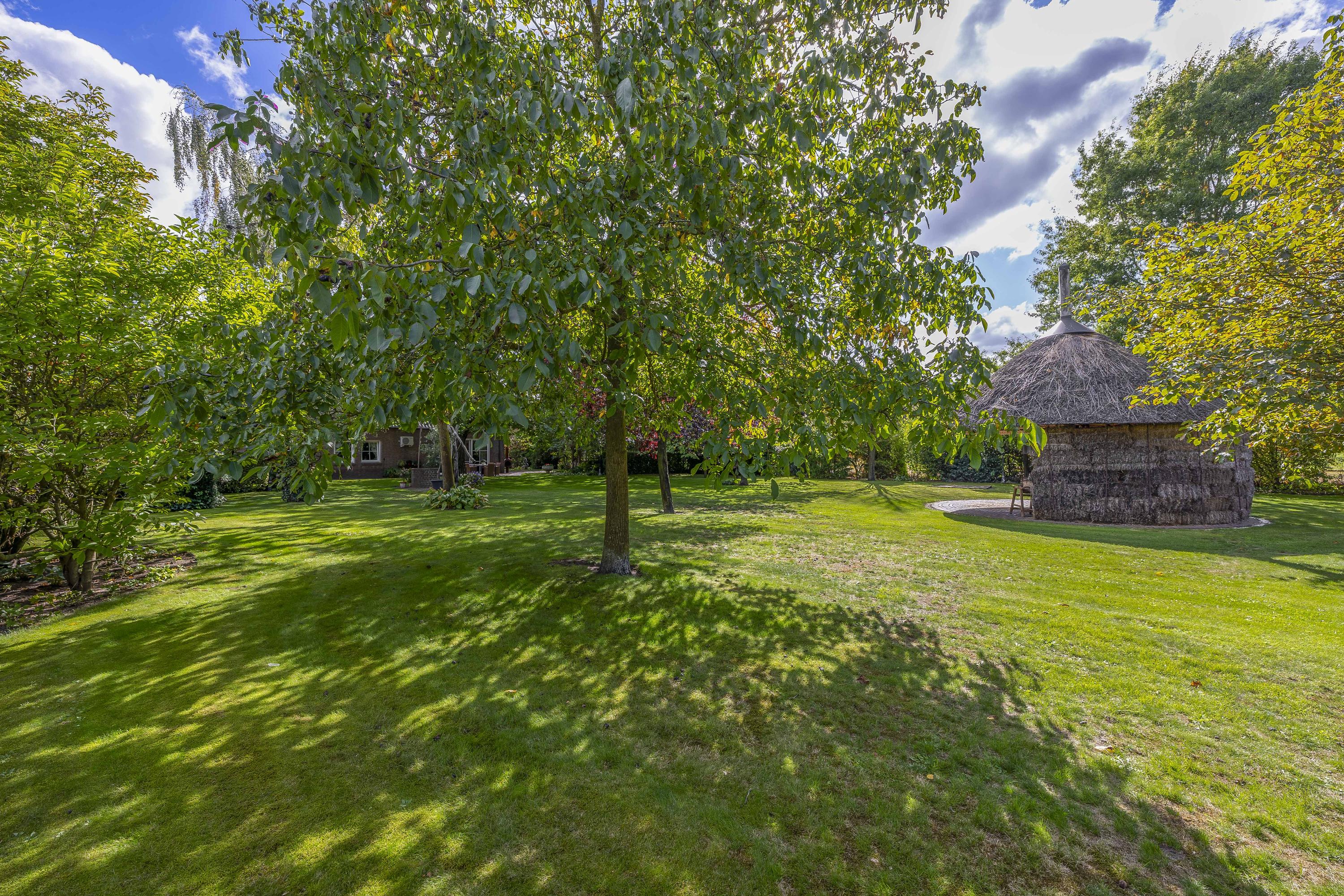 This detached house offers plenty of living space and possibilities. The ground floor features a living room, a kitchen and a bedroom with en-suite bathroom. There is also an indoor garage. Outside you will find a spacious, well-maintained garden with a large lawn, mature trees, natural hedges and two terraces. In addition, the outbuilding and greenhouse offer extra possibilities, while the adjacent meadow and barn are ideal for