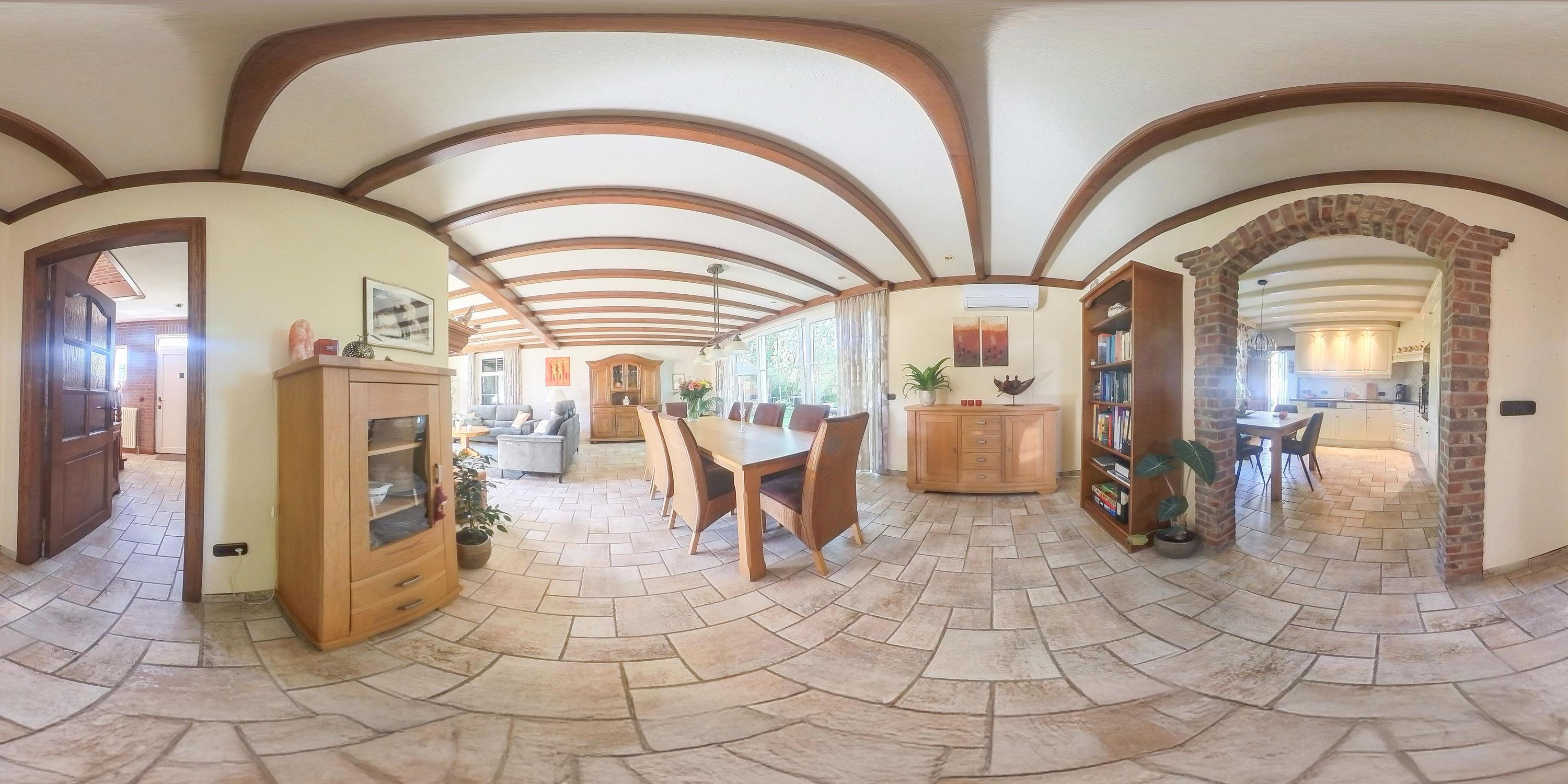 en-suite bathroom. There is also a practical utility room and an indoor garage. Outside, a spacious, well-maintained garden awaits you, featuring a large lawn, mature trees that add character, natural hedges, a terrace at the rear and a covered terrace. The detached barn and adjacent greenhouse offer plenty of opportunities for establishing an (agricultural) business. In addition, the adjacent plot of cultivated land can also be used for commercial purposes, but it is of course also ideal for keeping horses as a hobby.