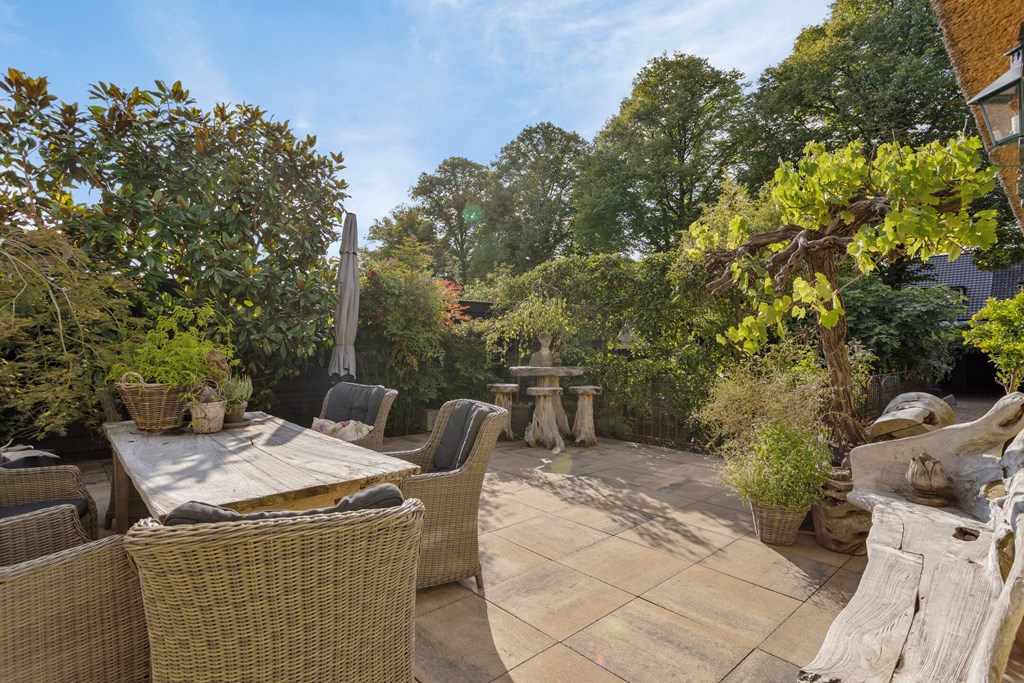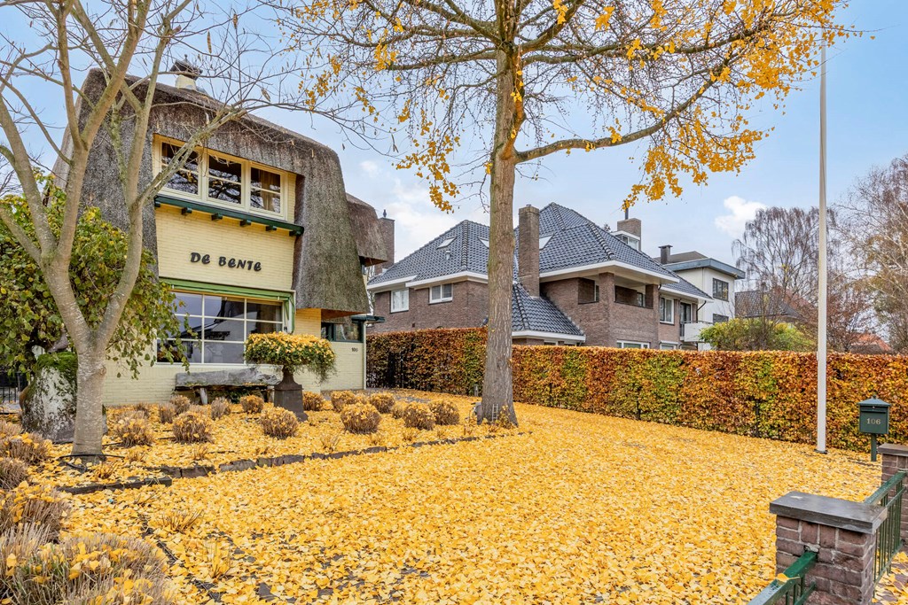 In this stately 1920s villa you immediately experience how authentic charm and contemporary luxury can reinforce one another. The home offers 211 m² of living space and provides generous living areas, an atmospheric living room with multiple seating areas, a beautiful live-in kitchen, four bedrooms, two bathrooms and a spacious garden that feels like an extension of the living comfort. The thatched roof and the warm colour scheme of the façade give the villa its distinctive, almost romantic appearance, while inside everything has been modernised with an eye for quality and ambiance. From the ground-floor bedroom to the large roof terrace and the large detached garage at the rear of the garden: every space tells the same story. This is a home that has been lived in with care and lovingly maintained and improved over the years. A house that feels grand without being distant, inviting you to truly make it your home.