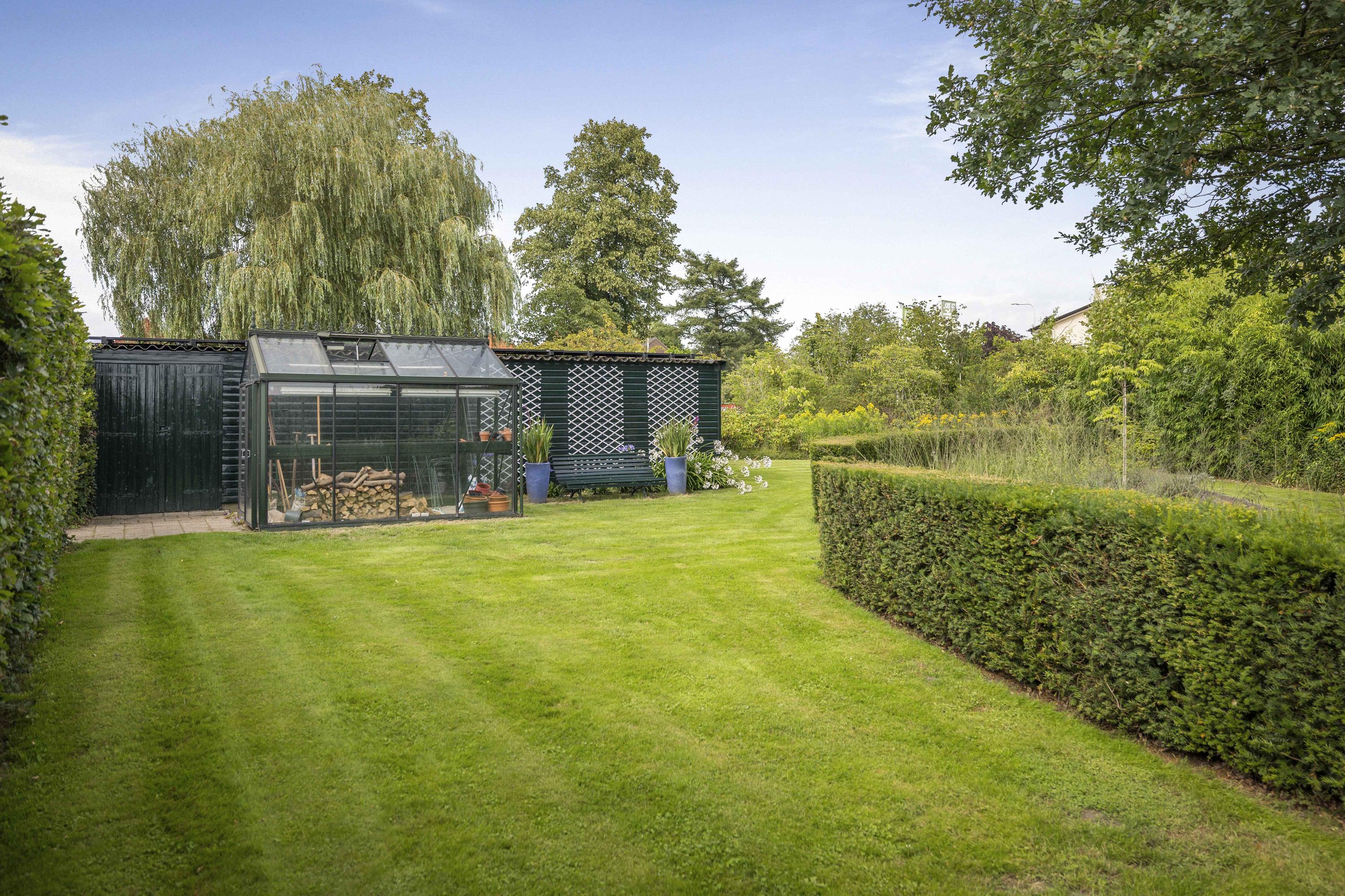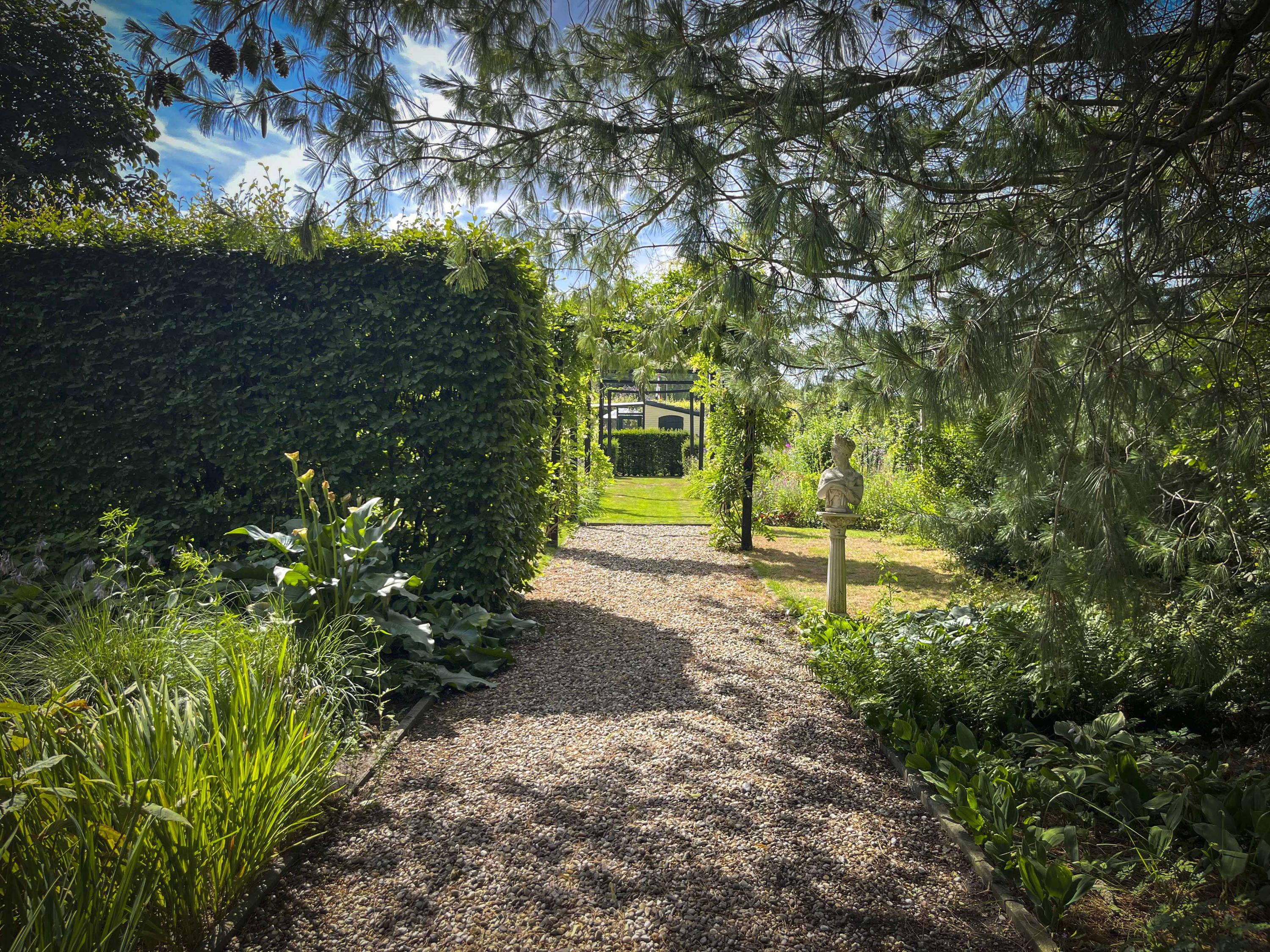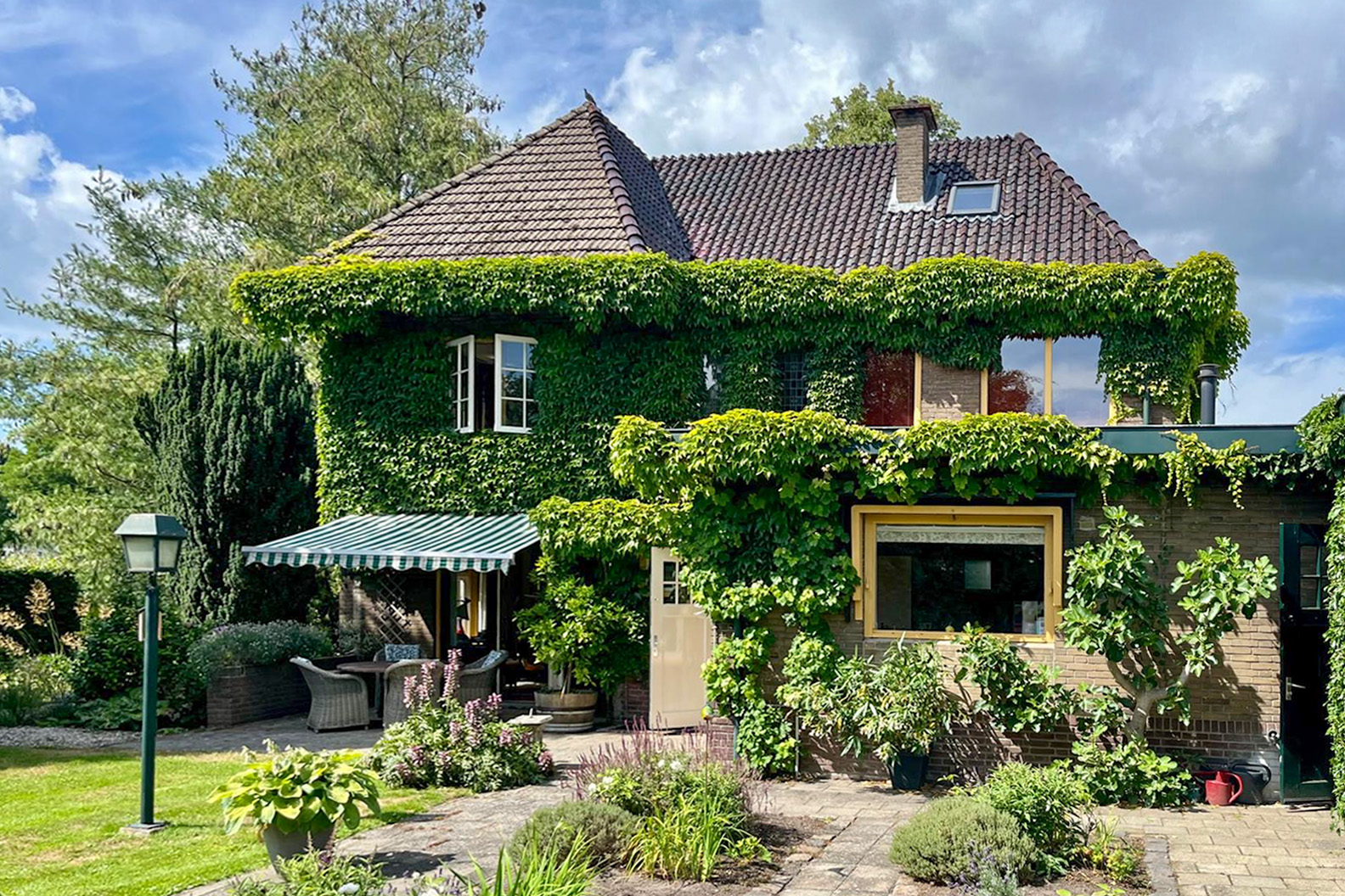 The house is surrounded by a beautiful garden. There is a wooden garage with an adjoining carport, providing space for two cars to be parked in the dry. Garden equipment can also be stored here neatly and sheltered. Due to the orientation of the house, there is a lovely sun terrace behind the property. There are cosy seating areas scattered throughout the garden. The plants are diverse, colourful and carefully chosen, making it a real treat for the senses. There are beautiful sightlines, a small flock of chickens in a cosy run and the dahlias can quietly awaken from their hibernation in the greenhouse. There are two water features and you will enjoy a great deal of privacy here thanks to the secluded location, the man-sized hedges and the mature trees.