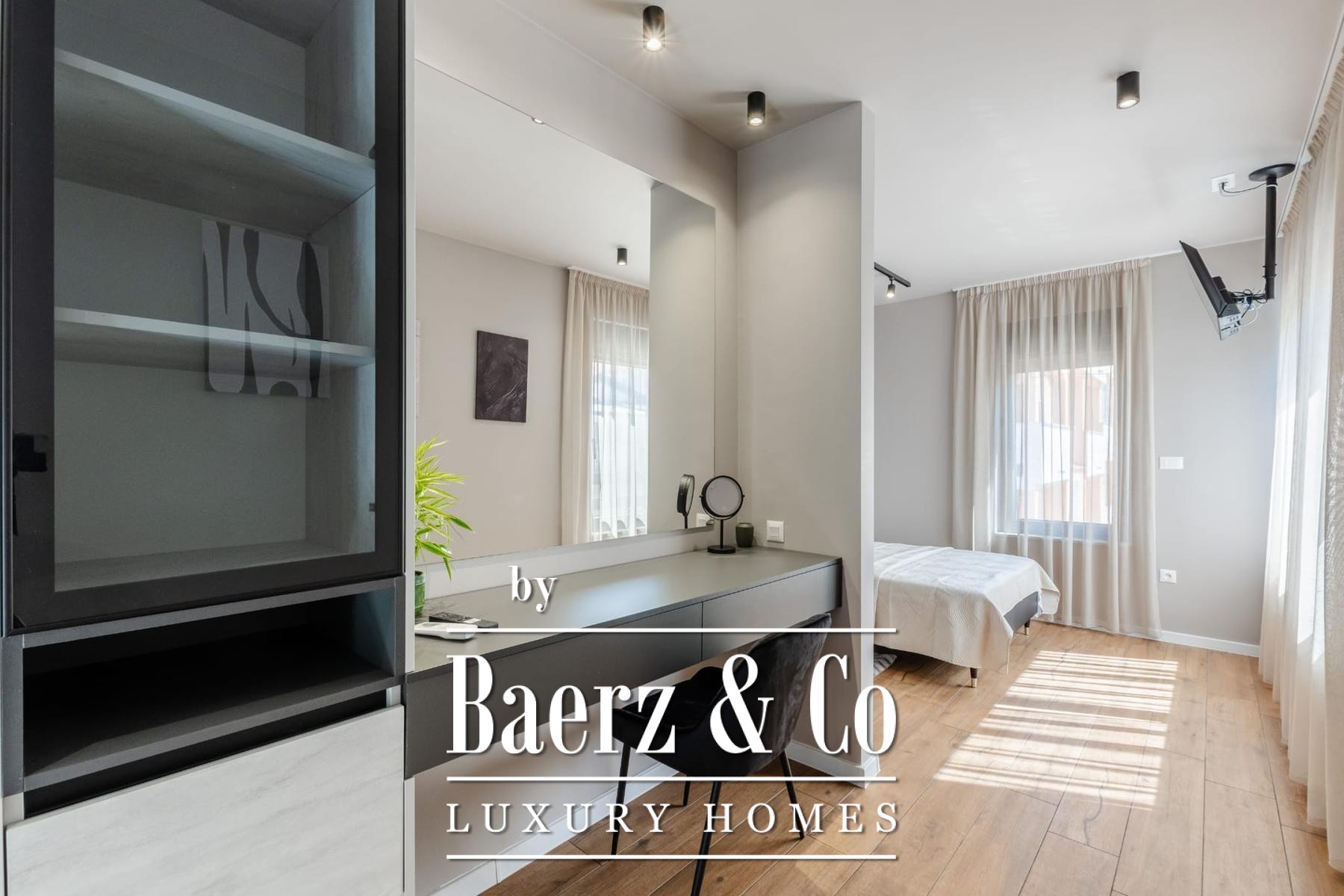 The ground floor unfolds over 92.40m² with an open kitchen, inviting dining area, tranquil living room, and a considered bathroom, balanced around the rhythm of daily gathering and retreat. A graceful staircase leads to the first floor, where 96.5m² host three en suite bedrooms, including a master suite, and access to a balcony of 13.9m², ushering in light and distant sea air. A signature feature, the 72.80m² roof terrace, presents a jacuzzi, summer kitchen, and immersive sea view, shaping a sanctuary above the landscape.