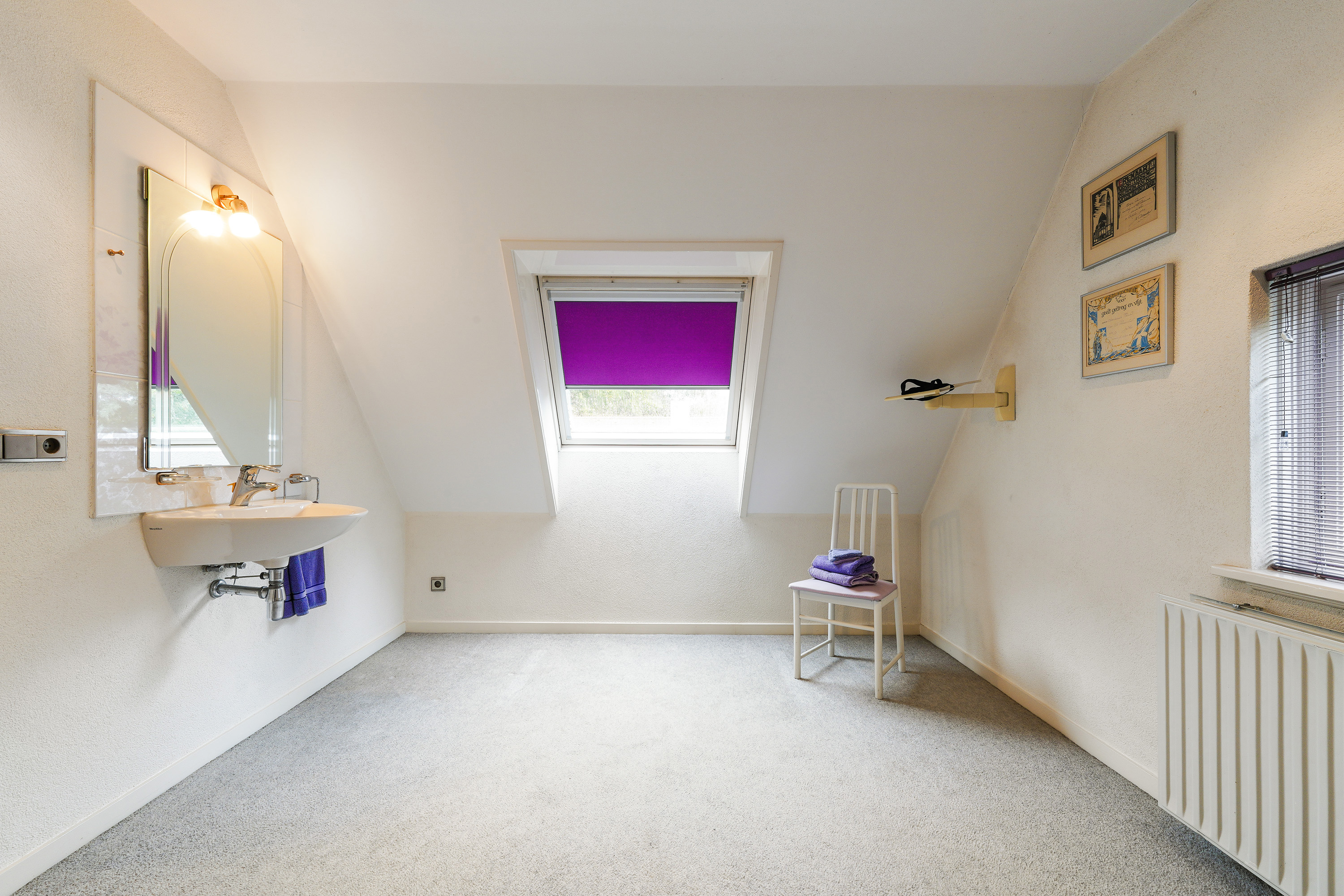 The second floor provides two additional spacious bedrooms, both with extra roof windows that allow plenty of natural light. The rear bedroom also has its own washbasin. Additional storage space under the sloping ceilings ensures this floor is efficiently utilised.