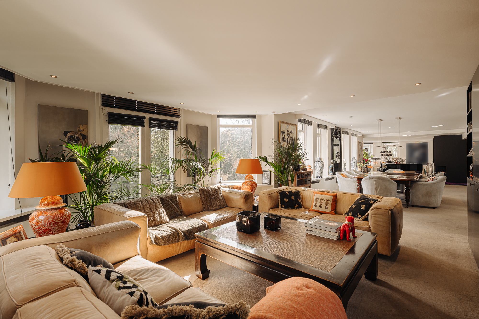 Beautifully situated 4-room penthouse (approx. 265 m² living space) with large balconies on the third floor of a small apartment complex on the Rust en Vreugd Estate. Originally two apartments, it was completely renovated and redesigned in 2009. You will find high-quality materials and luxurious details, including a custom-made interior and air conditioning. There are also two parking spaces and a storage unit in the basement.