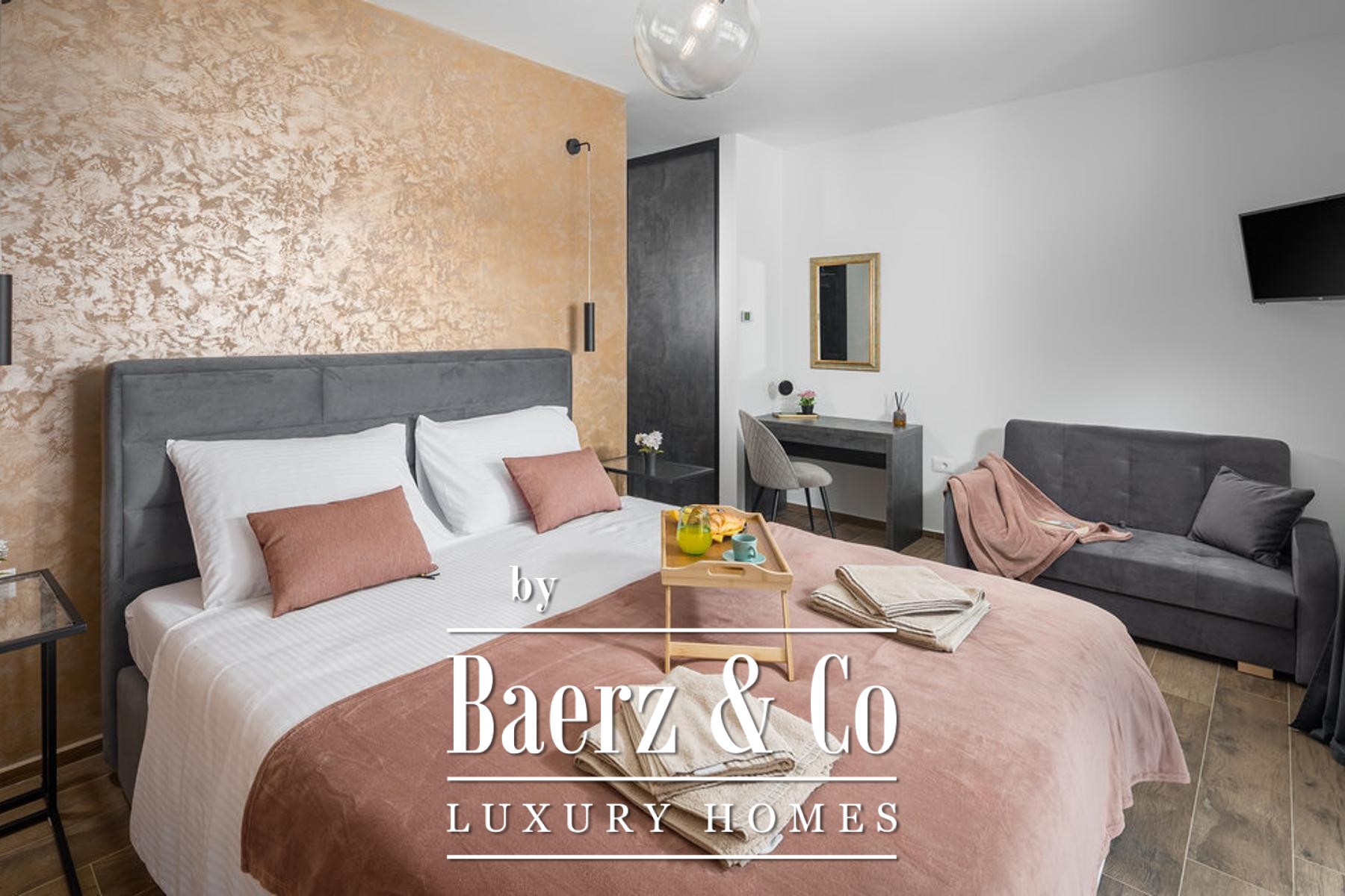 bathroom, and each room has direct access to its own terrace with a beautiful view of nature.On the plot there is a sunbathing area, a heated pool with a heat pump with a total size of 38.50 m2, and a covered area with a barbecue and a place to dine with your loved ones.The best materials and equipment were used for this property, high quality construction, aluminum joinery, underfloor heating system through a heat pump. All rooms are air-conditioned. First-class parquet and ceramics, all furniture is designer and of well-known brands.A first-class property that deserves attention.For more information or to arrange a viewing, please feel free to contact us.