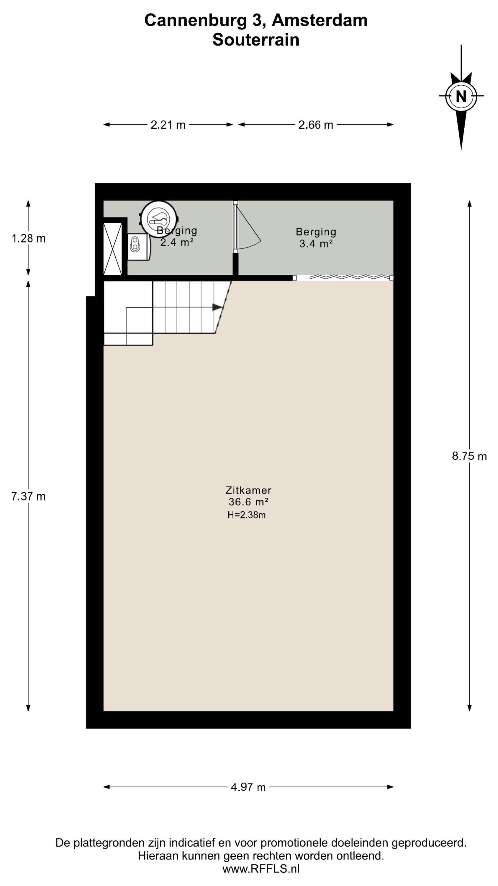 - Souterrain van ca. 37 m²