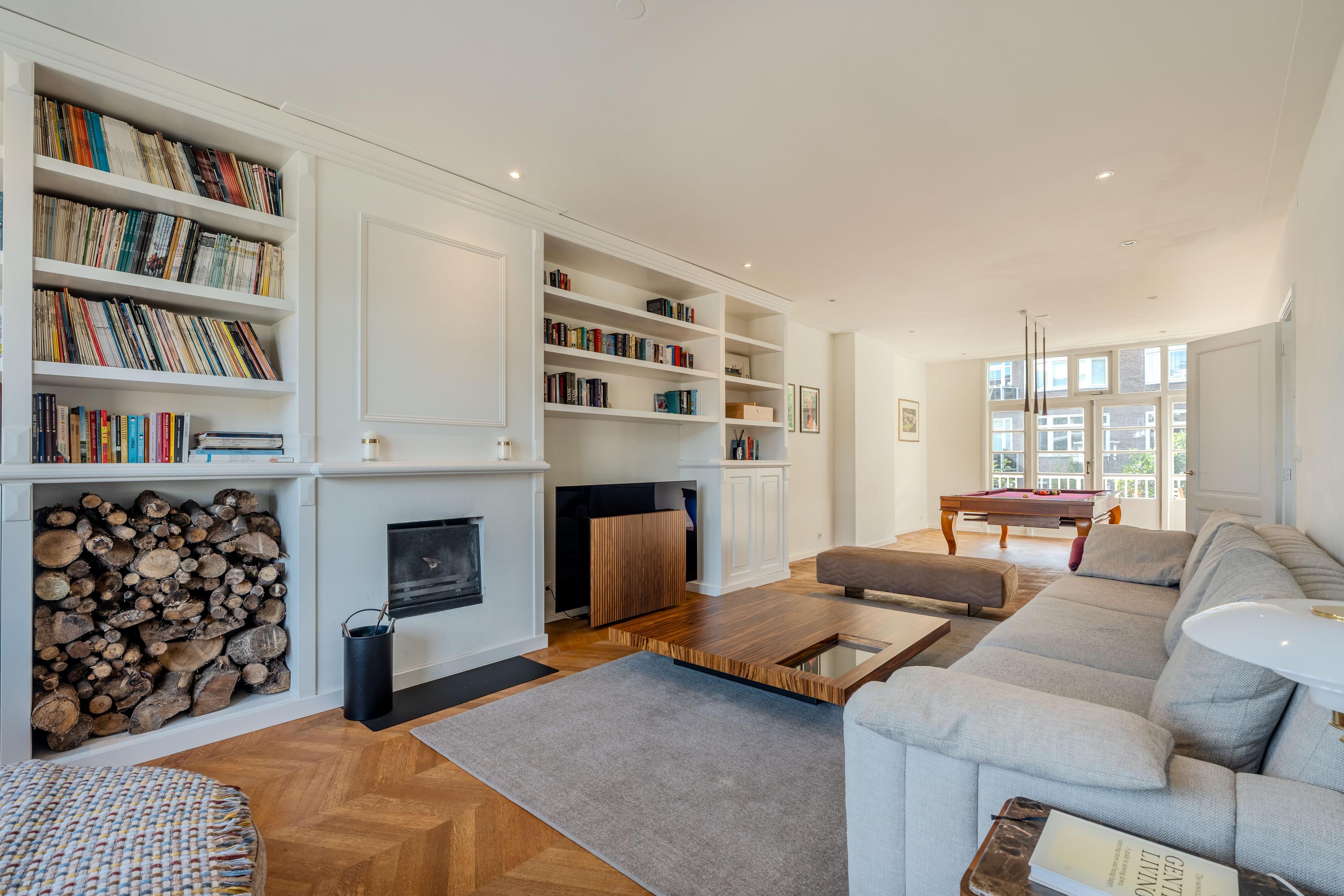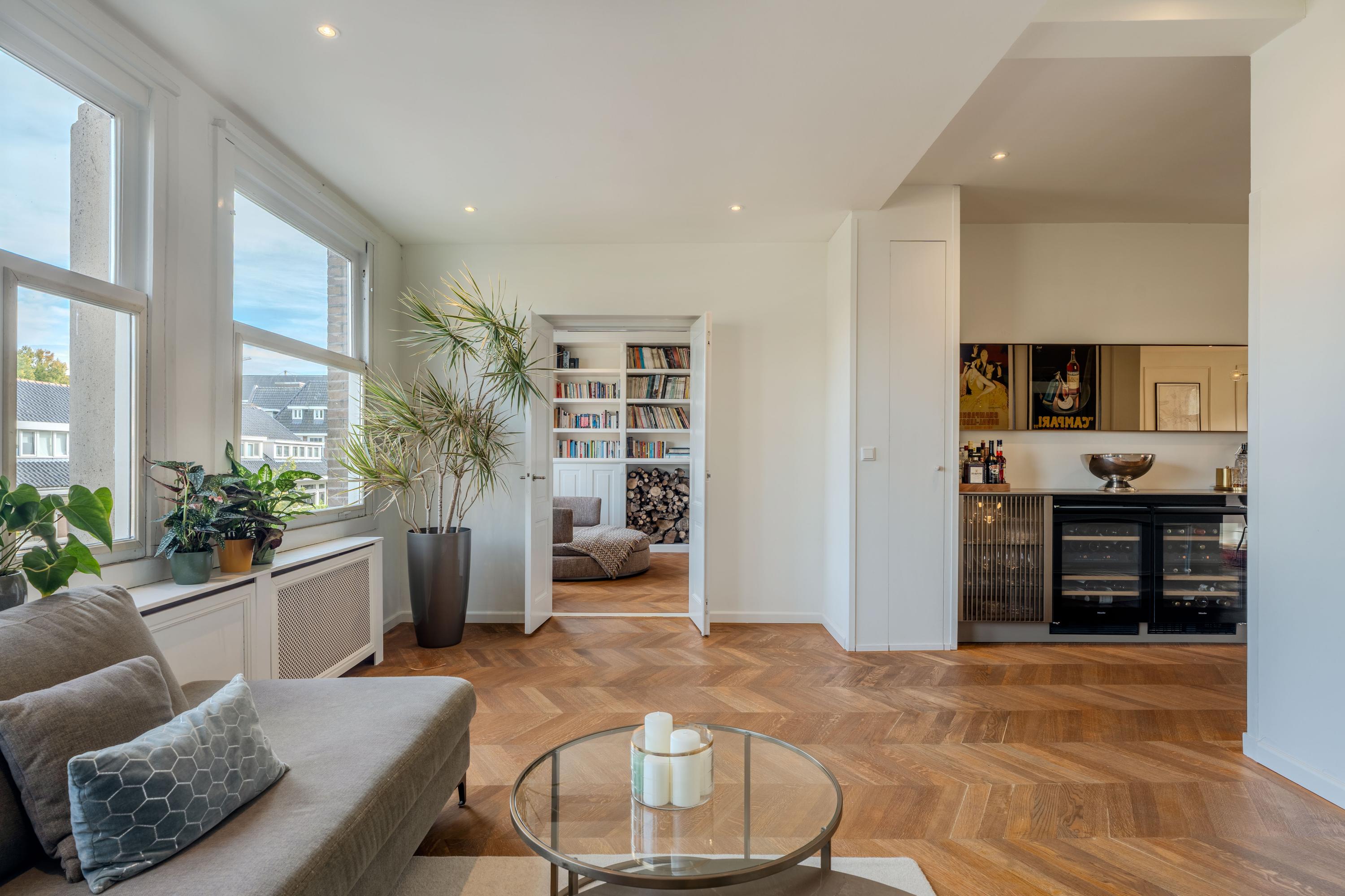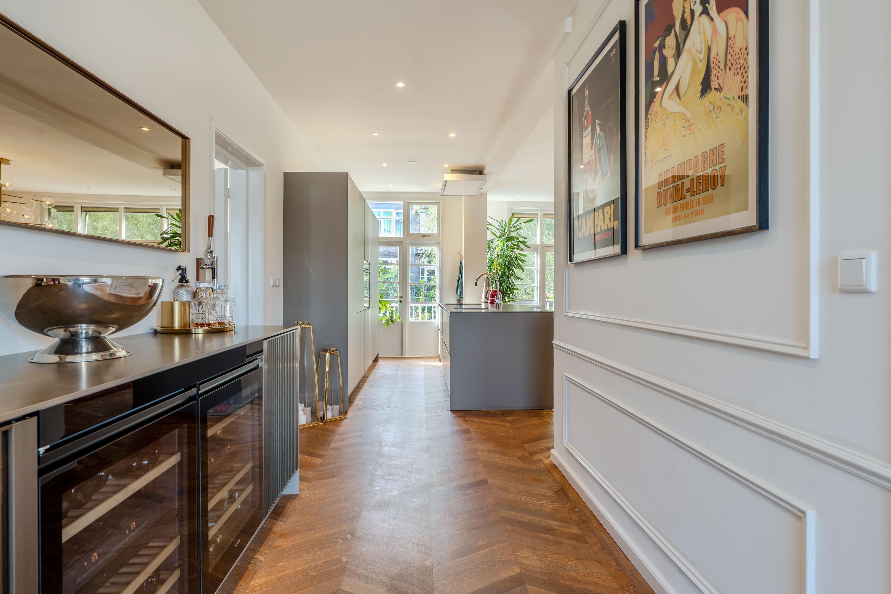 De royale woonverdieping combineert charme met hedendaags comfort. Aan de voorzijde bevindt zich de sfeervolle living met erker, ingebouwde kasten en een gezellige open haard. Aangrenzend ligt de royale woonkeuken met ruimte voor een grote eettafel, voorzien van een eiland, spoelbak, inductiekookplaat, vaatwasser, combi-oven, koelkast en vriezer. Tussen de keuken en de tweede woonkamer is een stijlvolle bar gecreëerd, uitgerust met twee klimaatkasten. Aan de achterzijde biedt de keuken toegang tot het balkon. Tevens bevindt zich op deze verdieping een separaat toilet.