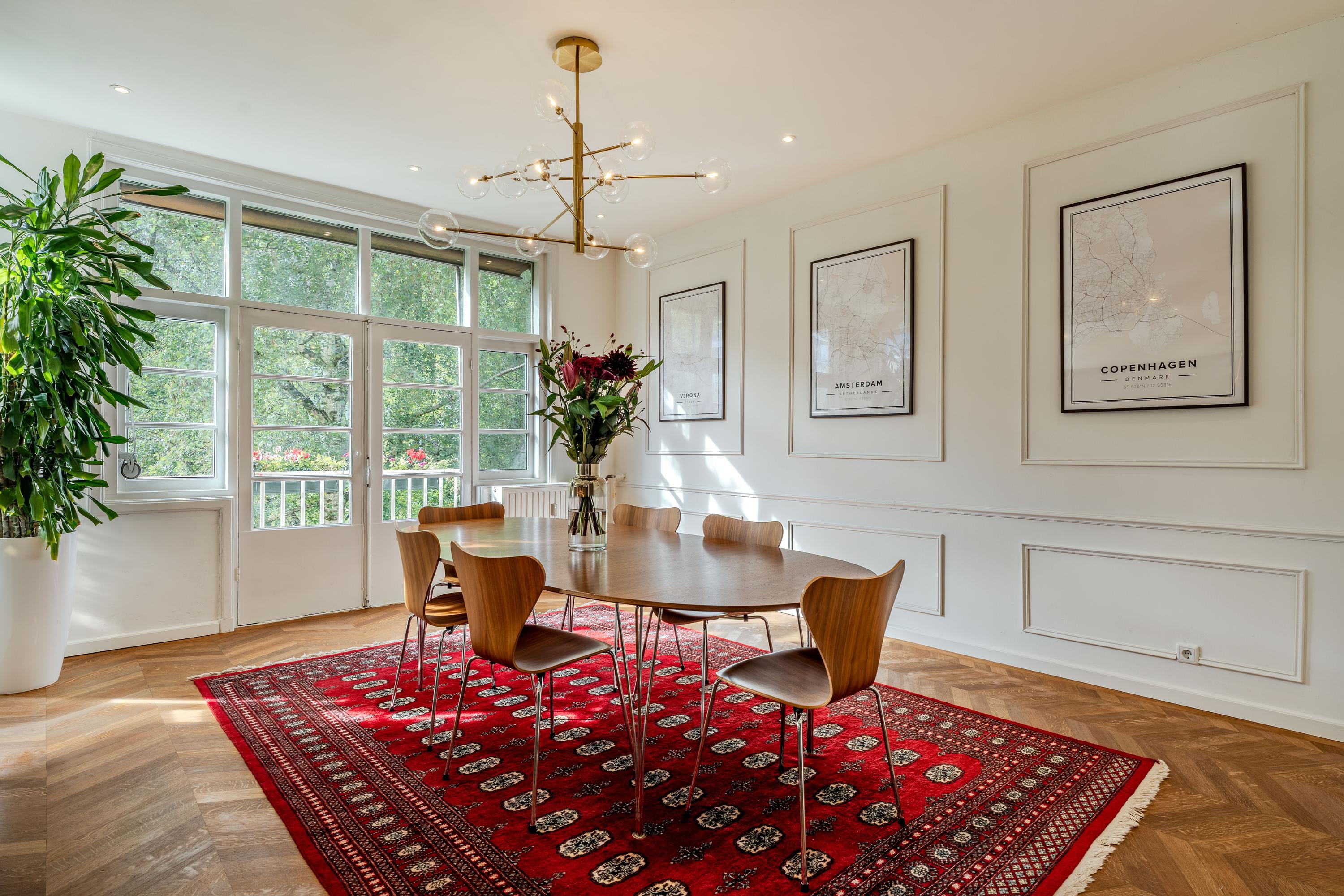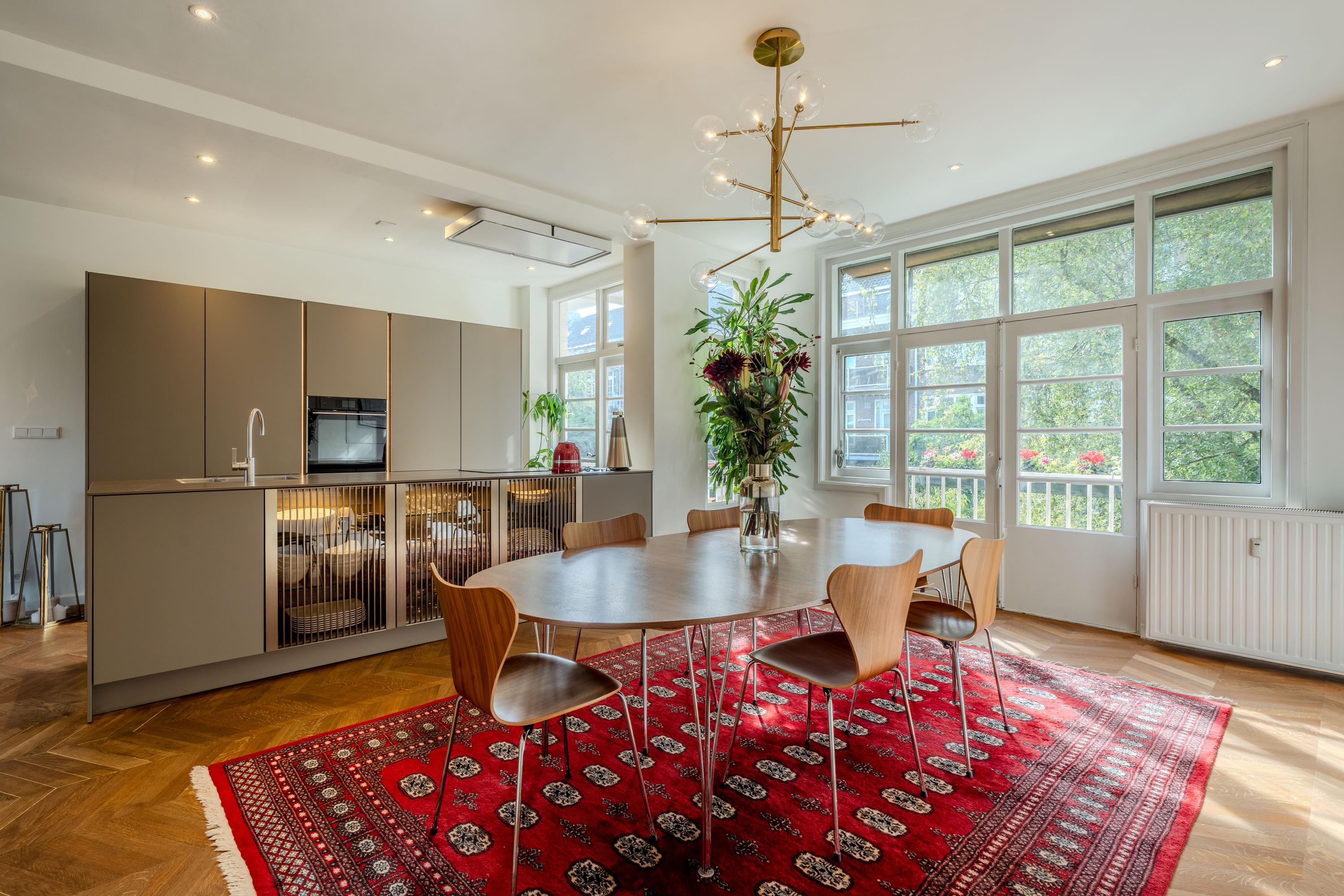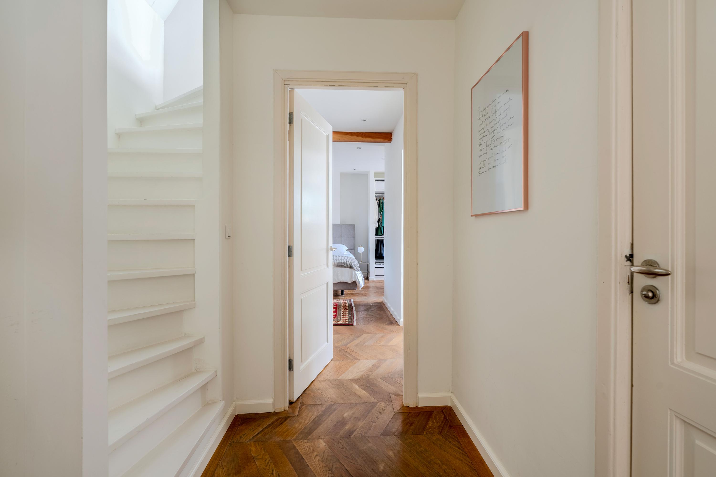 De royale woonverdieping combineert charme met hedendaags comfort. Aan de voorzijde bevindt zich de sfeervolle living met erker, ingebouwde kasten en een gezellige open haard. Aangrenzend ligt de royale woonkeuken met ruimte voor een grote eettafel, voorzien van een eiland, spoelbak, inductiekookplaat, vaatwasser, combi-oven, koelkast en vriezer. Tussen de keuken en de tweede woonkamer is een stijlvolle bar gecreëerd, uitgerust met twee klimaatkasten. Aan de achterzijde biedt de keuken toegang tot het balkon. Tevens bevindt zich op deze verdieping een separaat toilet.