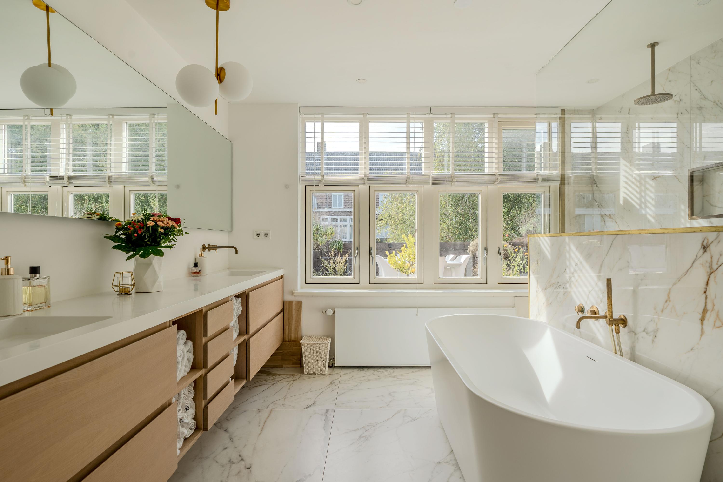 Op deze verdieping bevindt zich de riante hoofdslaapkamer aan de voorzijde, die is voorzien van een grote walk-in closet en een moderne en-suite badkamer met ligbad, inloopdouche en dubbele wastafel met meubel. Ook de tweede slaapkamer is aan de voorzijde gesitueerd. Daarnaast is er nog een tweede badkamer met douche, toilet en wastafel met meubel. Vanuit de overloop is er toegang tot het royale dakterras van maar liefst 43m²!