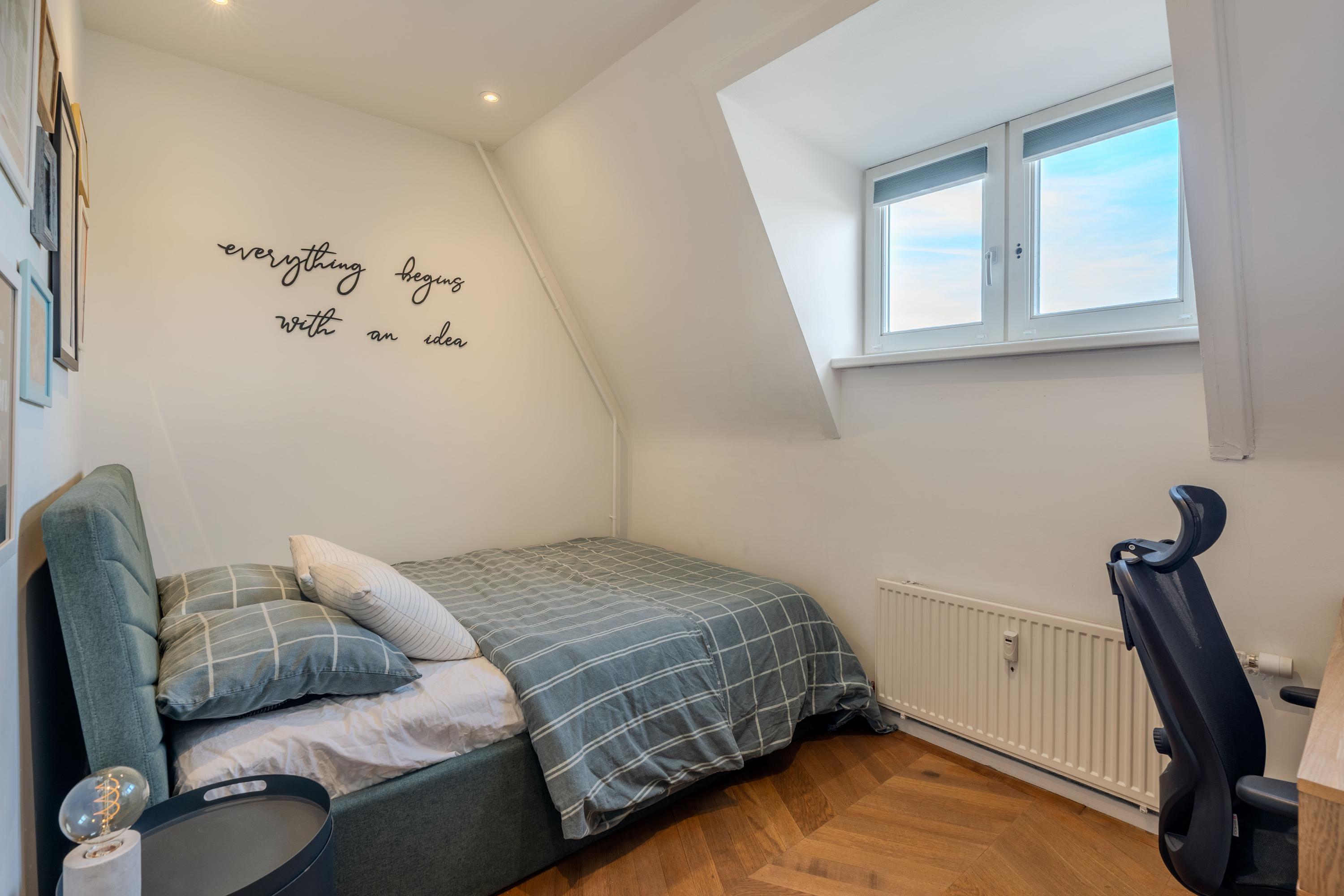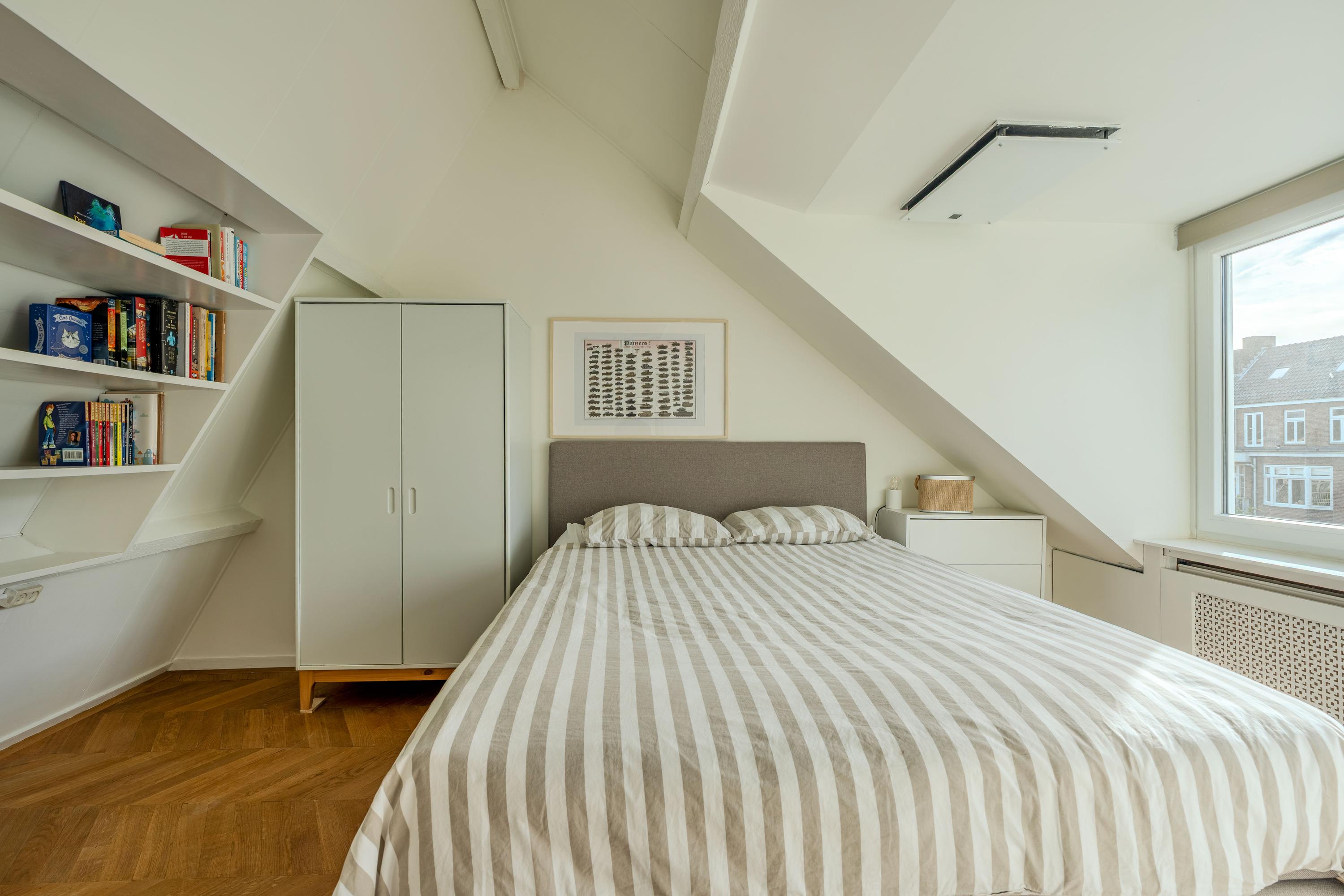 De bovenste verdieping biedt een derde slaapkamer en een ruime badkamer met douche, wastafel en toilet. De centrale open ruimte kan uitstekend worden gebruikt als slaapkamer of hobbyruimte en geeft de verdieping een multifunctioneel karakter. Deze verdieping is in 2023 gerenoveerd waarbij er een nieuwe dakkapel is geplaatst.