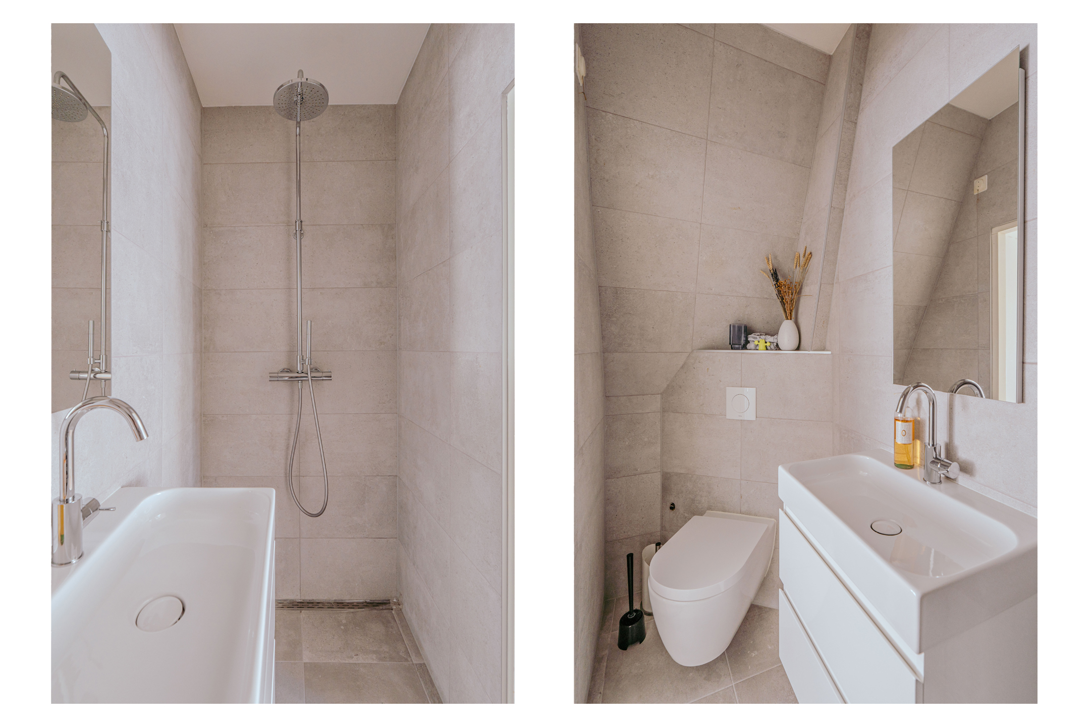 Via de tweede trap loopt u direct naar de woonkamer op de derde verdieping, voorzien van een kitchenette, twee ruime bergingen, airco en een extra badkamer. Deze badkamer is voorzien van een wastafel met meubel, een douche en een toilet. Aan de voorzijde van deze verdieping treft u nog een vierde goed bemeten slaapkamer, met aangrenzend een fijne kantoorruimte en voorzien van een airco-installatie. Beide vertrekken zijn te bereiken middels het centrale trappenhuis aan de rechterzijde van de woning. Vanuit de woonkamer loopt u naar boven naar het zonovergoten dakterras, waar u tot in de late uren heerlijk kunt genieten van de zon. Het dakterras heeft een oppervlakte van meer dan 23m2, uitzonderlijk in de stad!